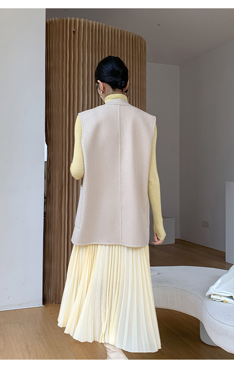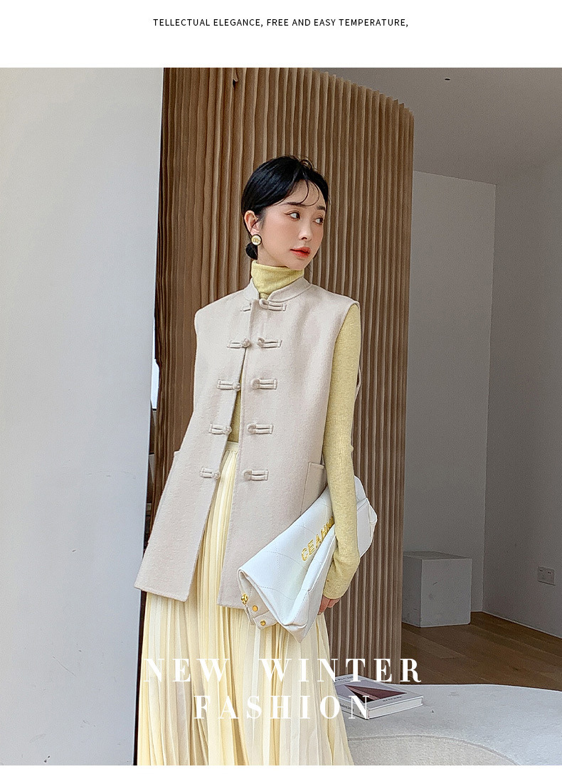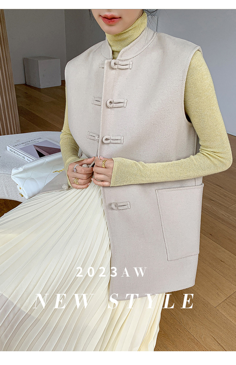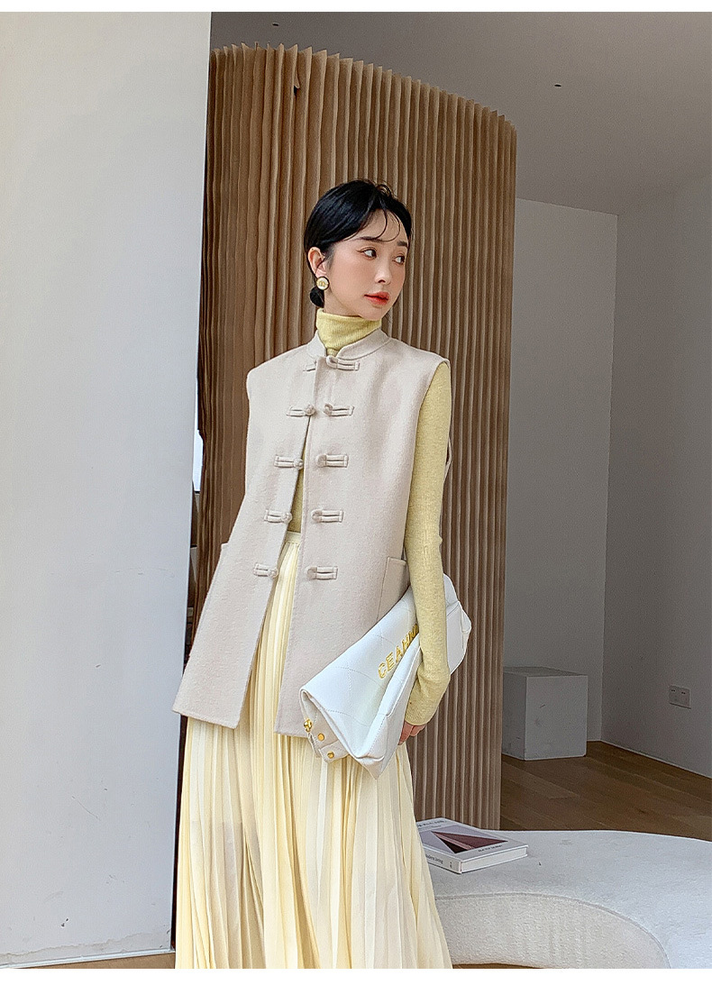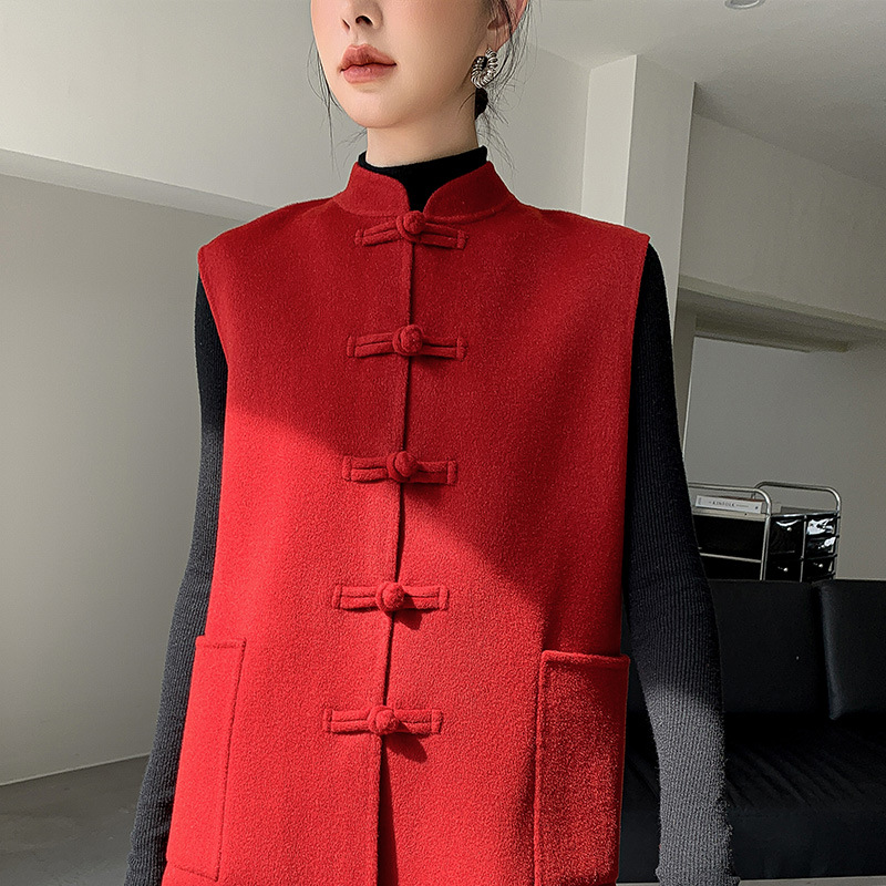 신중국풍 단추 장식 여성 조끼 양면 울 조끼 민족풍 레트로 스타일 슬림핏 상의