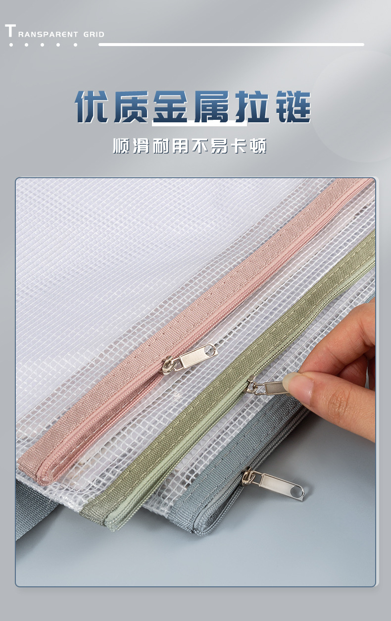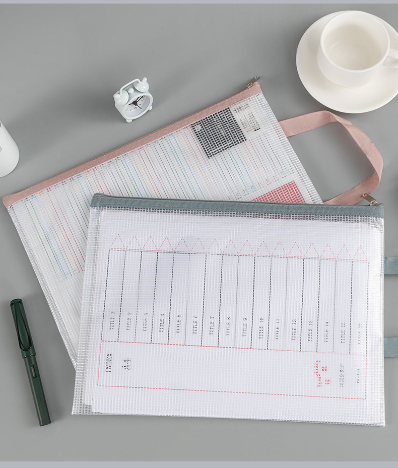 A4 휴대용 그리드 지퍼 가방 학생 시험지 보관 가방 방수 재료 분류 가방 투명 문서 가방 인쇄 가능