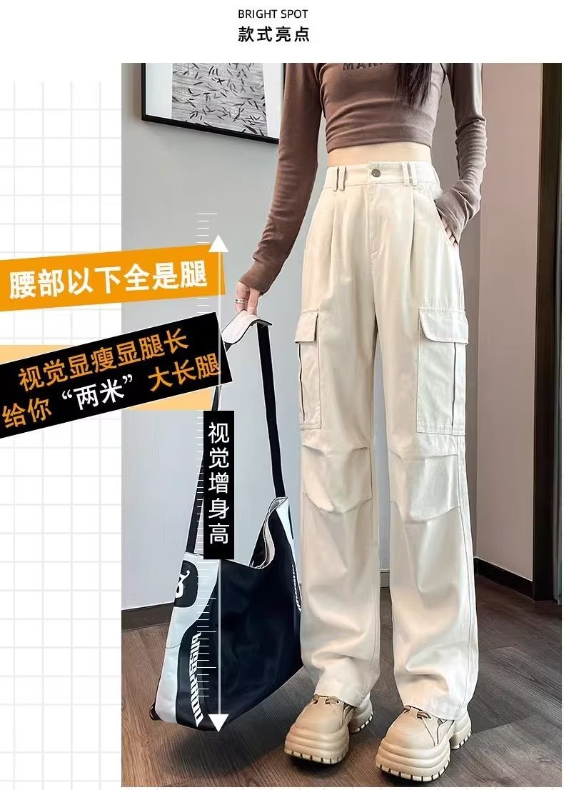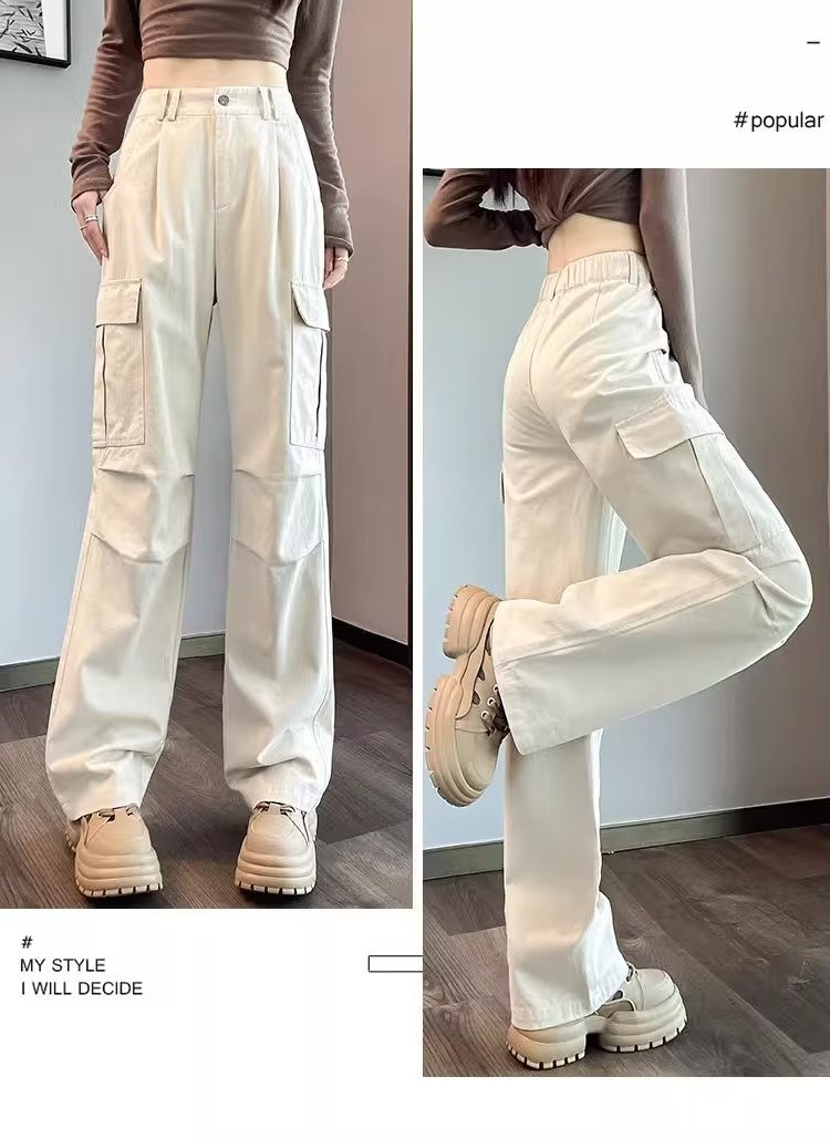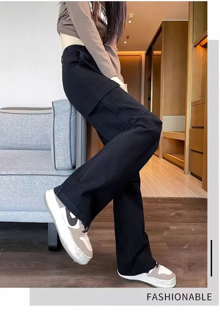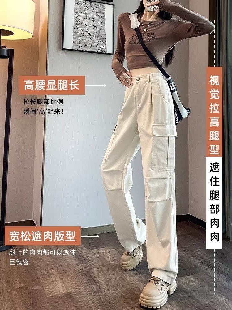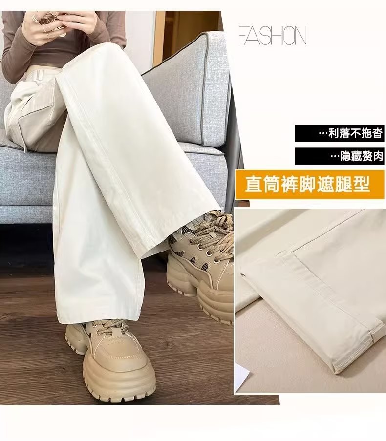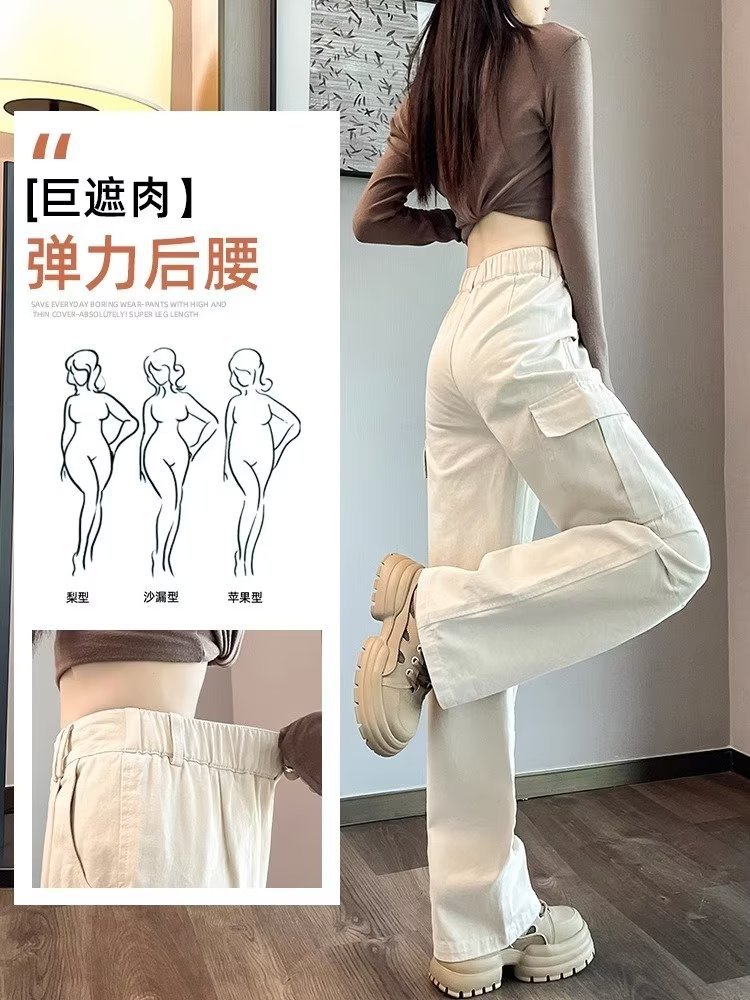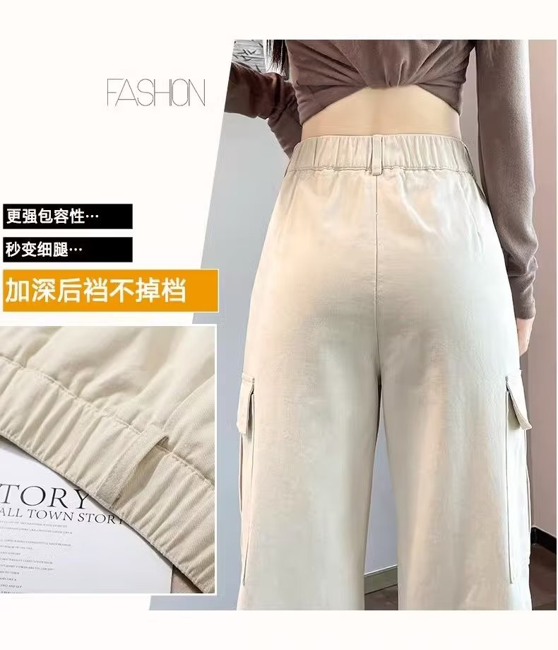 하이 웨이스트 드로스트링 아메리칸 스타일 크록 팬츠 여성의 가을 새로운 스타일 작은 캐주얼 등산 와이드 레그 양방향 스포츠 바지스토어 가기