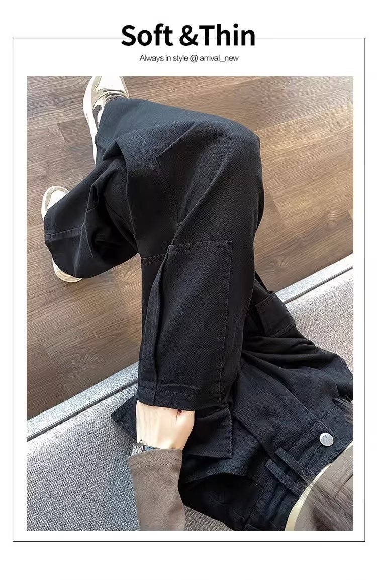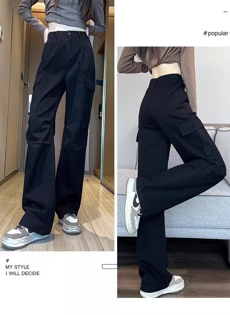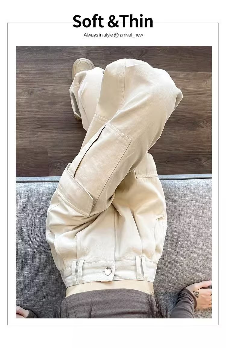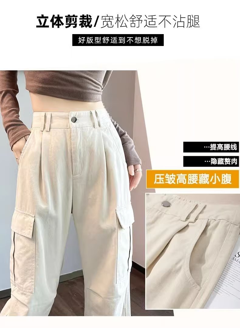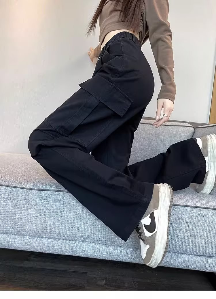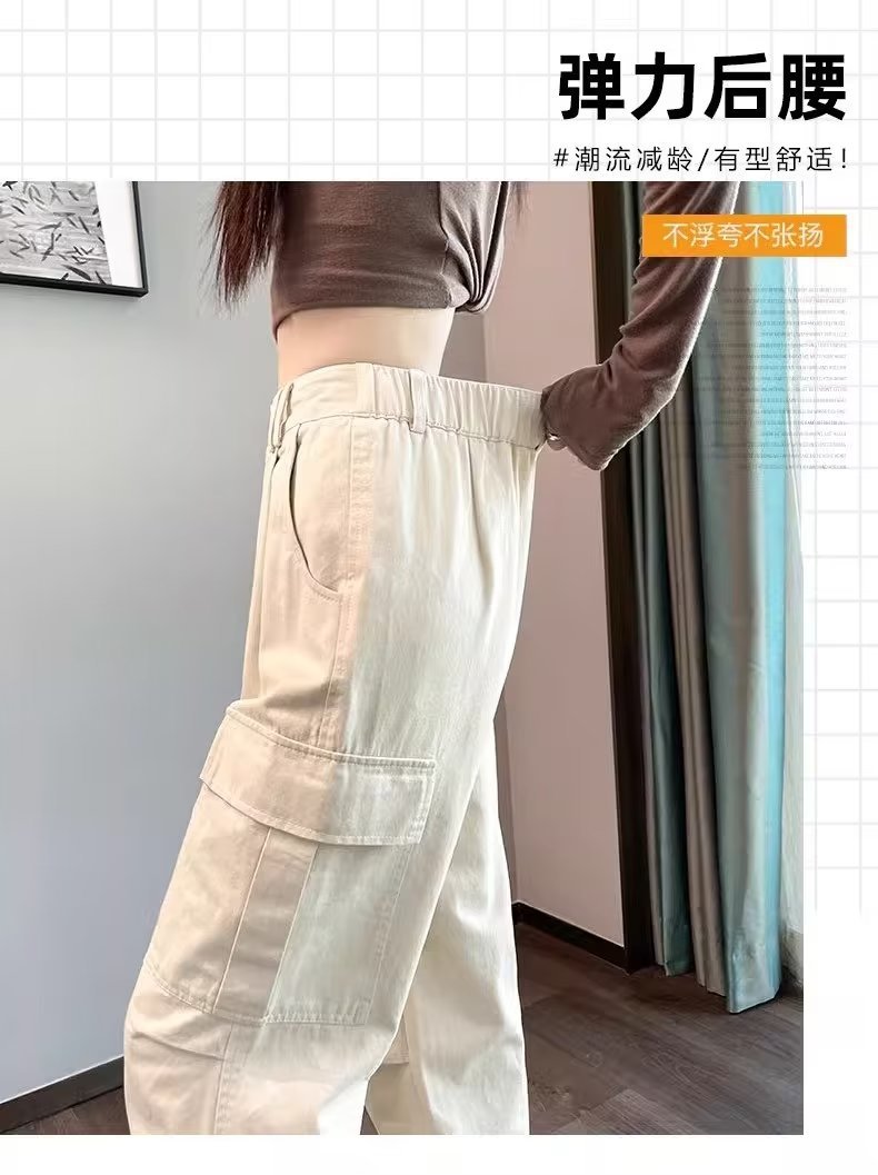하이 웨이스트 드로스트링 아메리칸 스타일 크록 팬츠 여성의 가을 새로운 스타일 작은 캐주얼 등산 와이드 레그 양방향 스포츠 바지스토어 가기