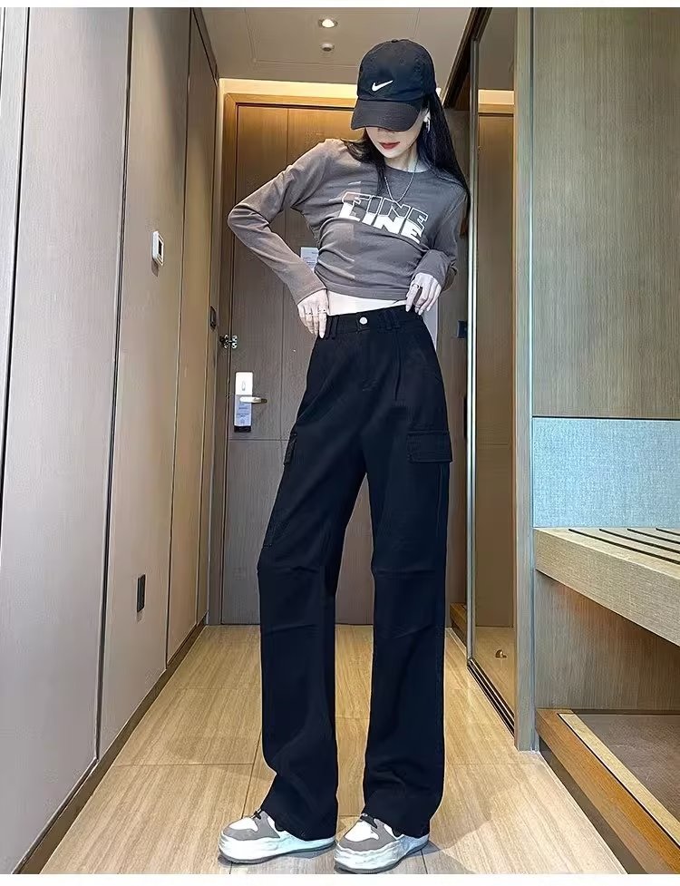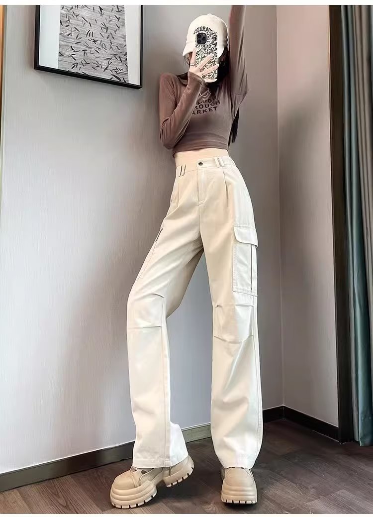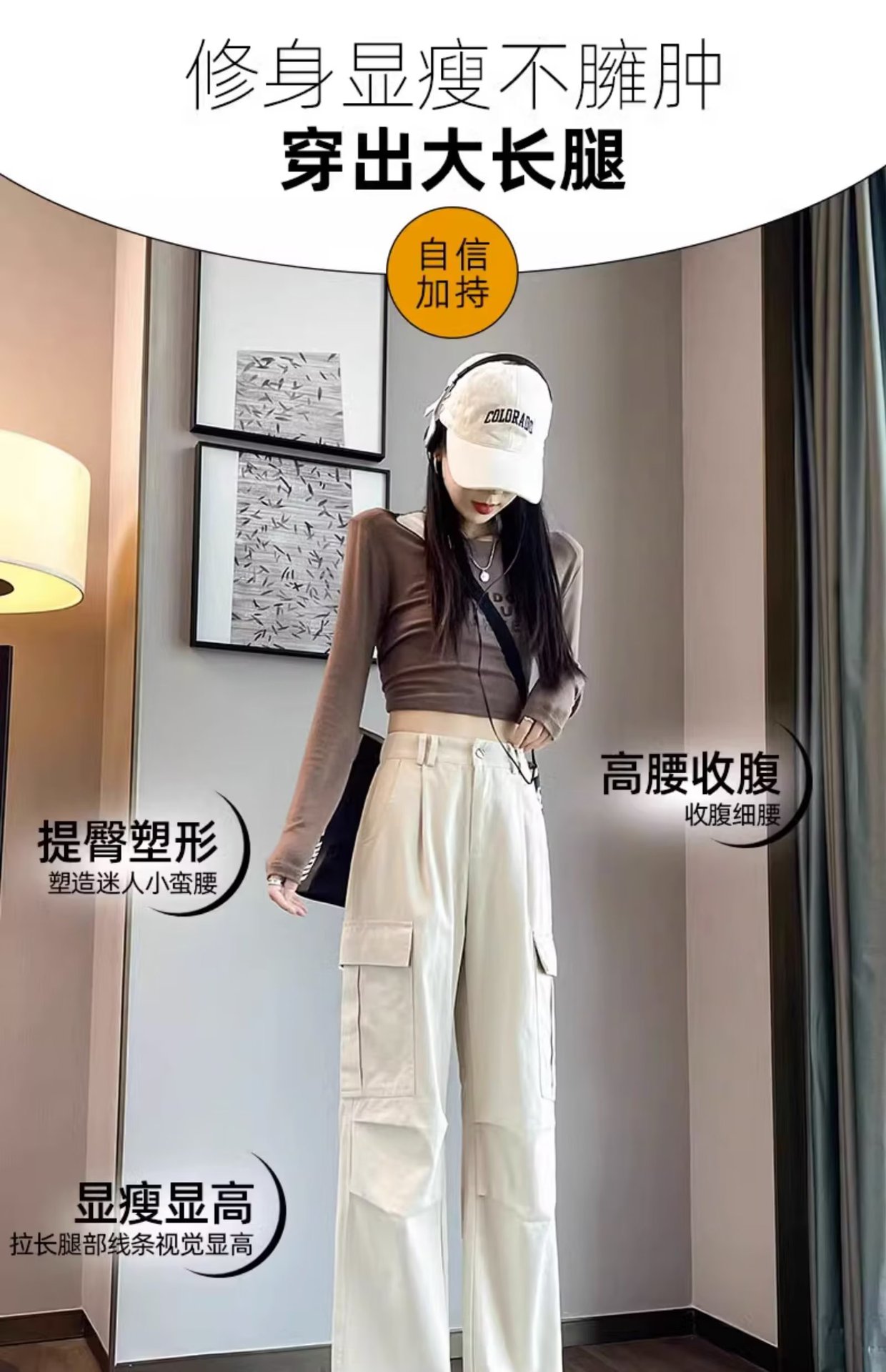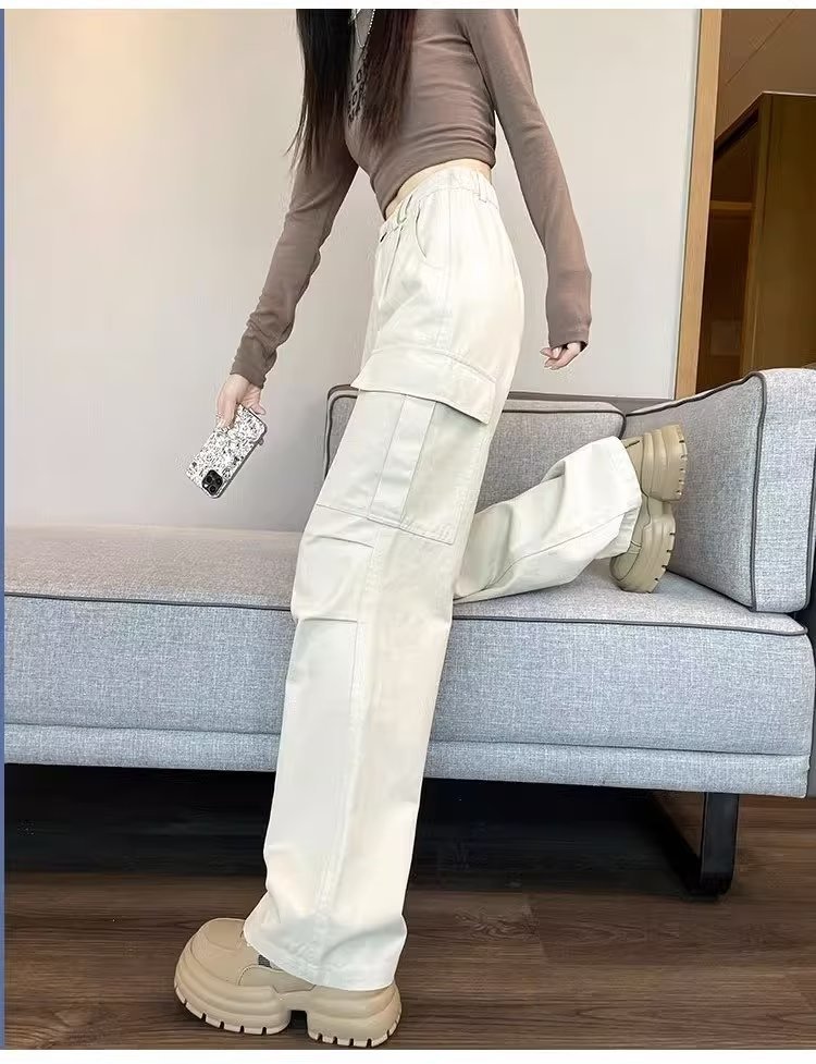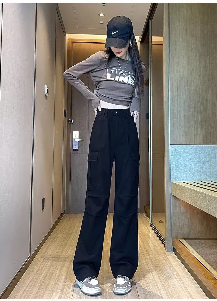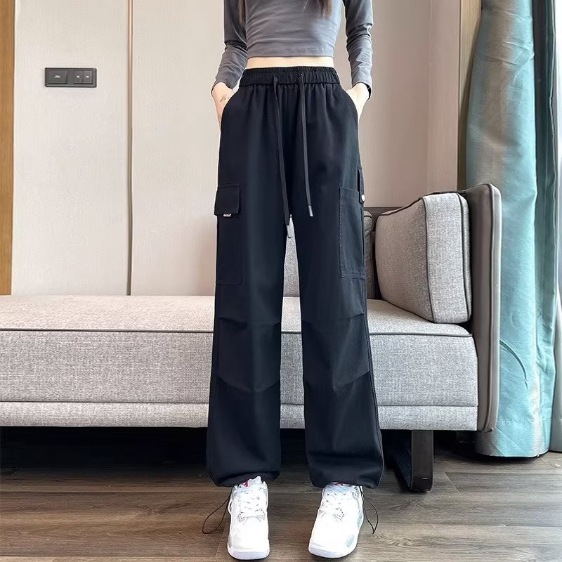 하이 웨이스트 드로스트링 아메리칸 스타일 크록 팬츠 여성의 가을 새로운 스타일 작은 캐주얼 등산 와이드 레그 양방향 스포츠 바지