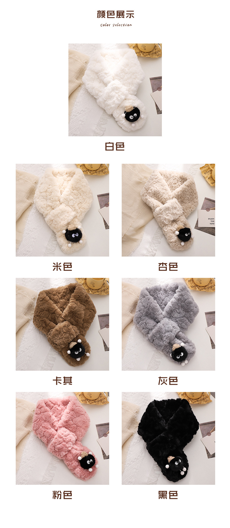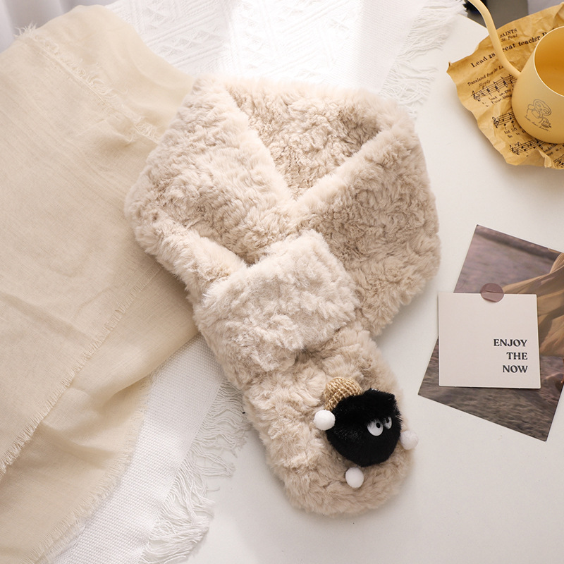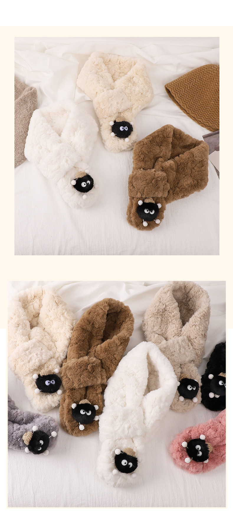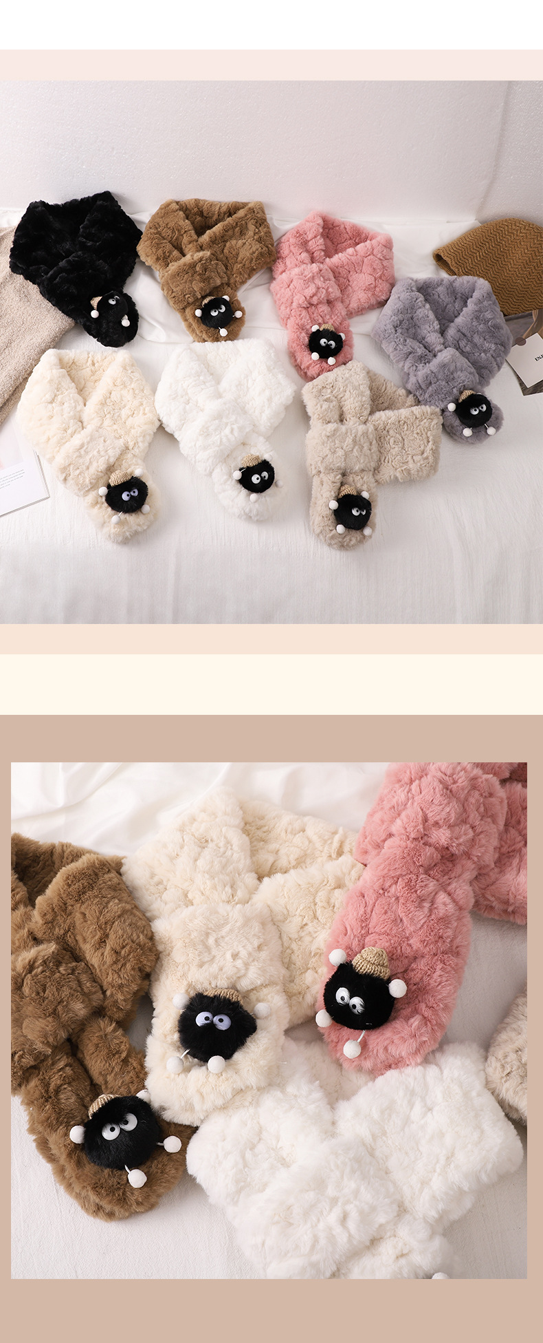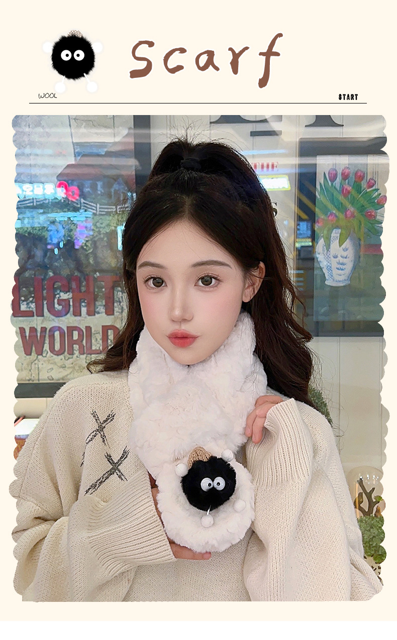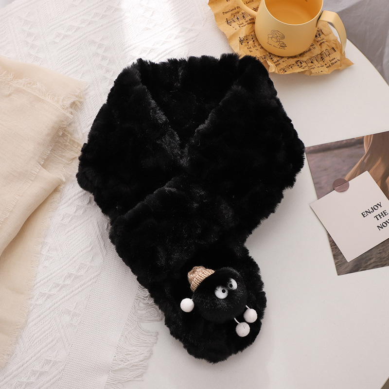 가을과 겨울의 플러시 따뜻하고 편안한 통기성 모든 매치 스카프 한국식 블랙 석탄 공 지니 만화 귀여운 목 보호 스카프스토어 가기