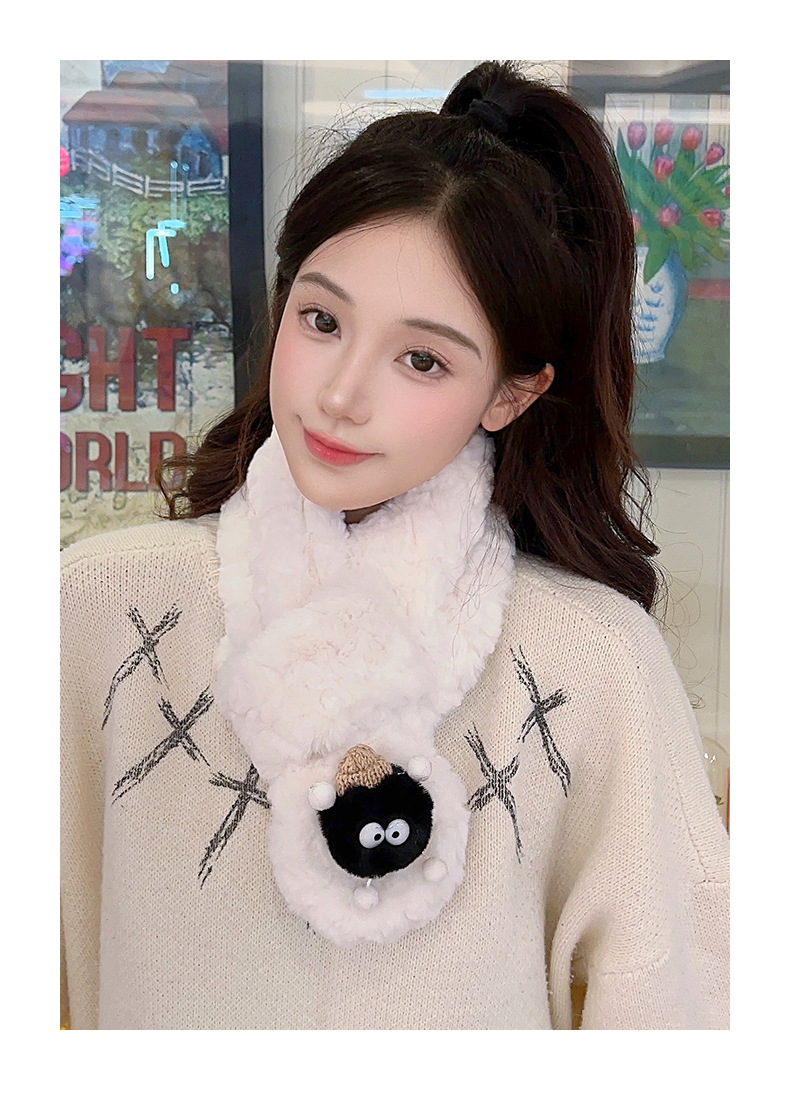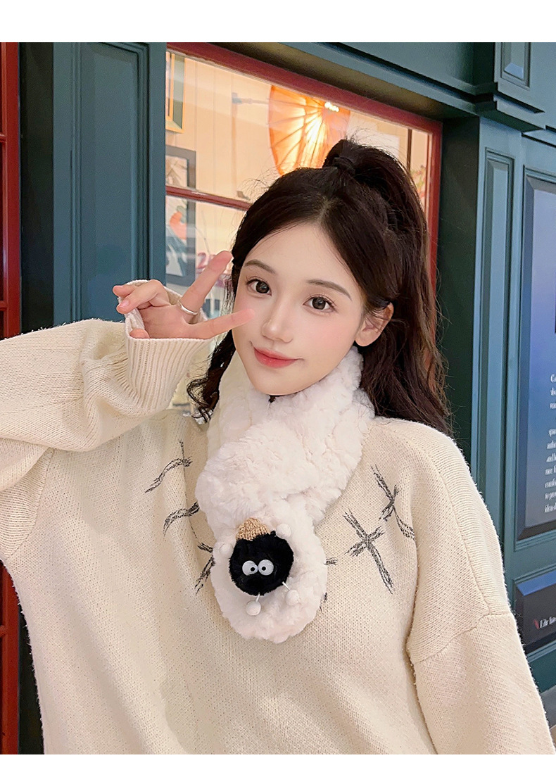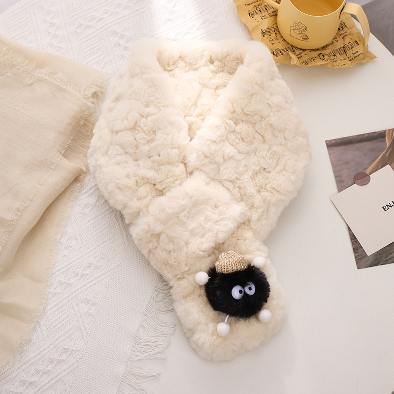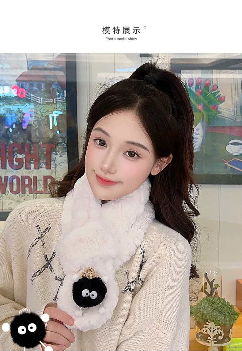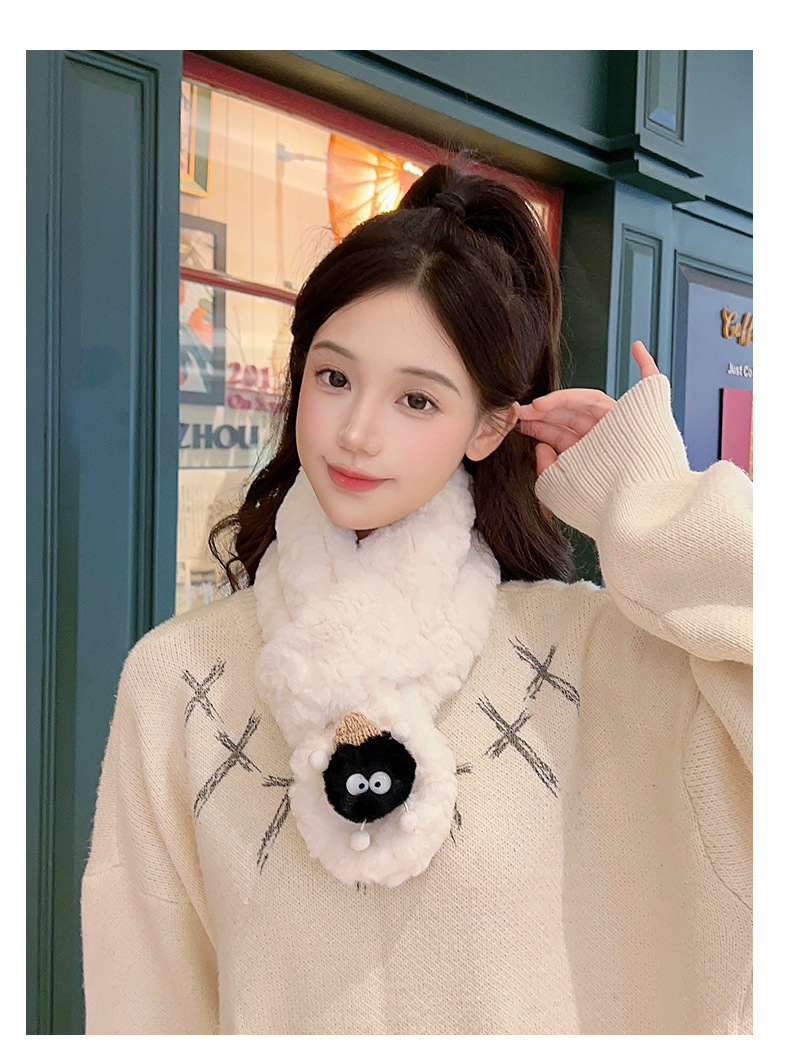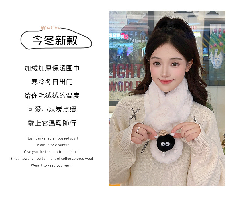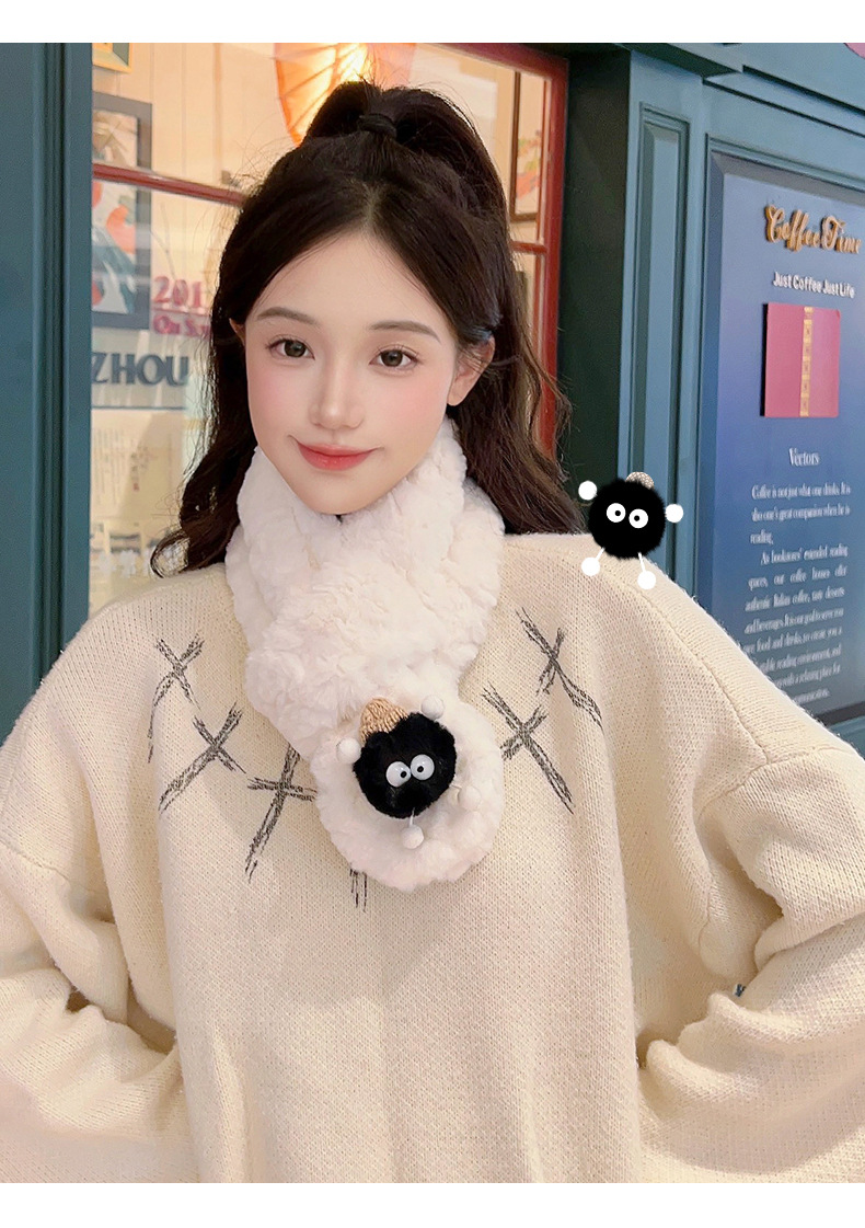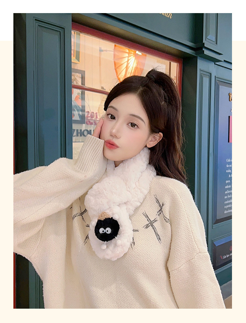 가을과 겨울의 플러시 따뜻하고 편안한 통기성 모든 매치 스카프 한국식 블랙 석탄 공 지니 만화 귀여운 목 보호 스카프스토어 가기