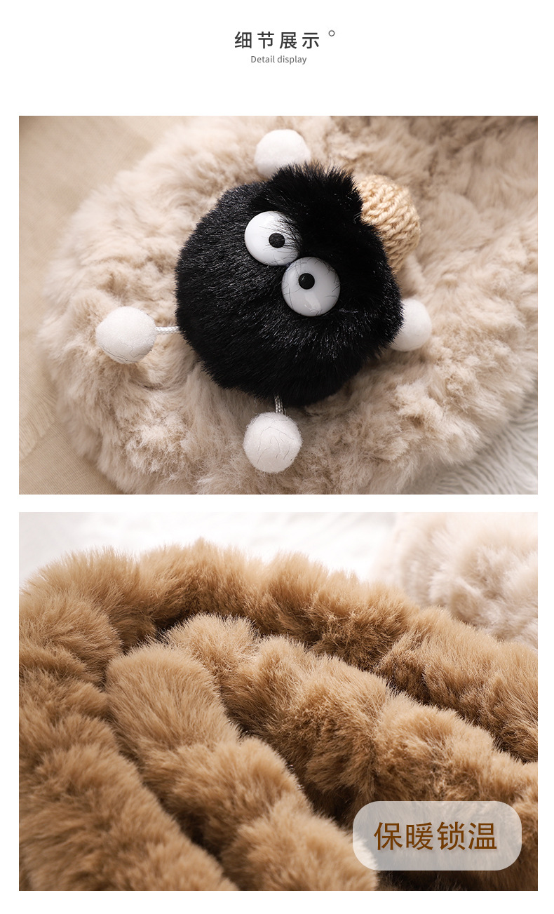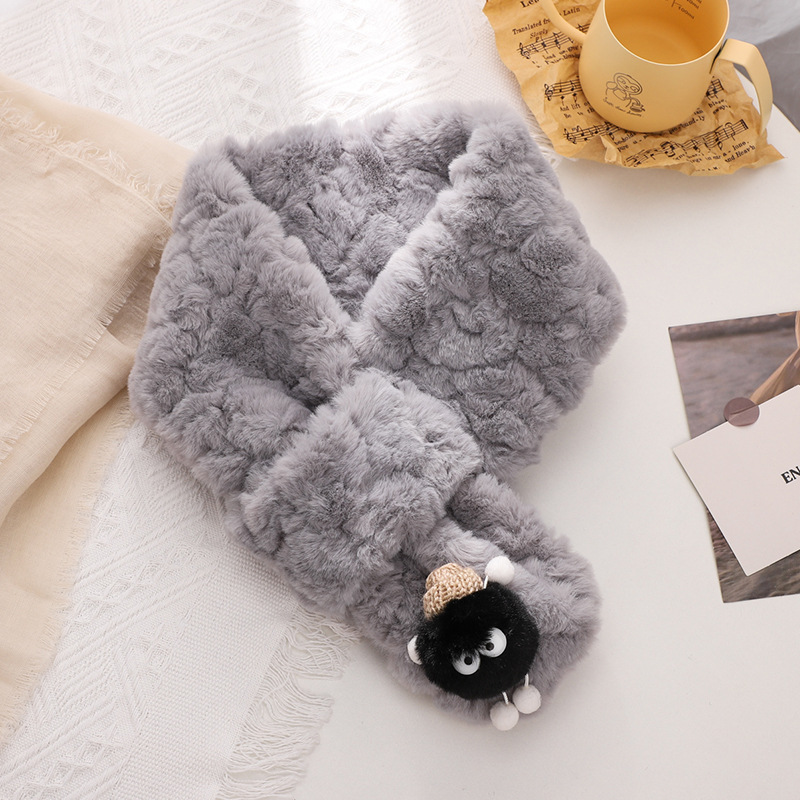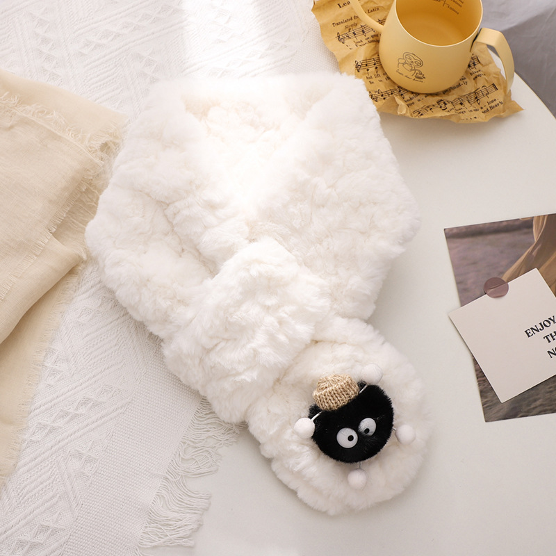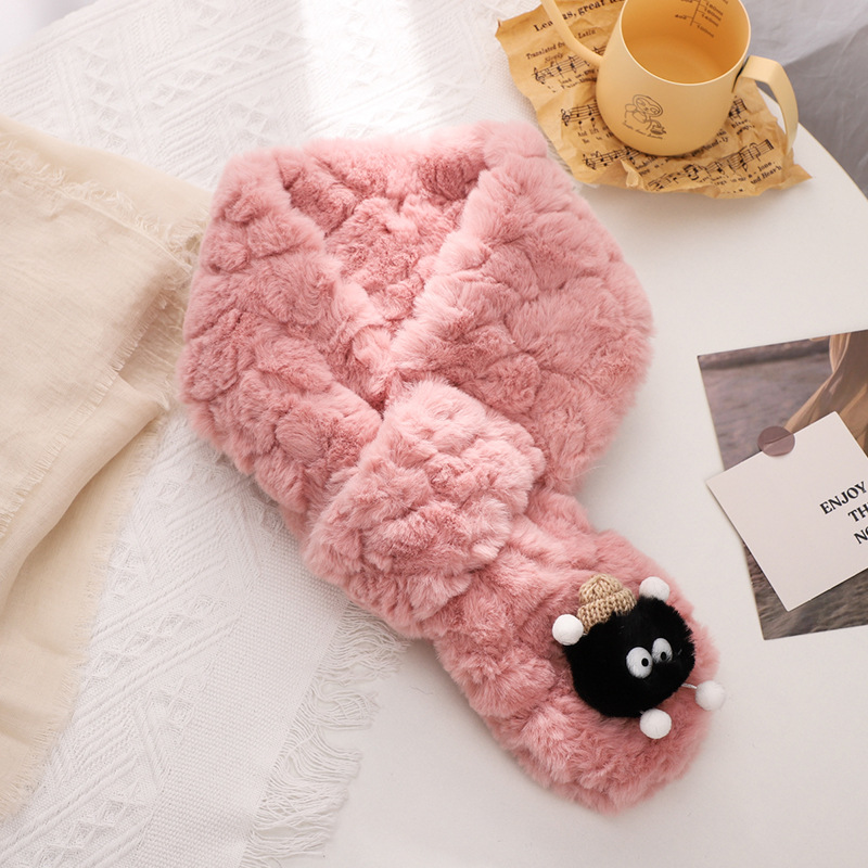 가을과 겨울의 플러시 따뜻하고 편안한 통기성 모든 매치 스카프 한국식 블랙 석탄 공 지니 만화 귀여운 목 보호 스카프