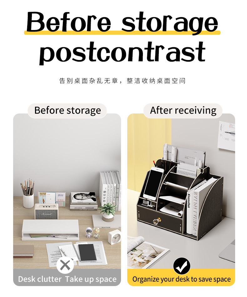 국경을 넘는 인기 상품 사무실 책상 펜 홀더 잡화 수납함 나무 문구 정리함 DIY 다기능 수납 선반스토어 가기