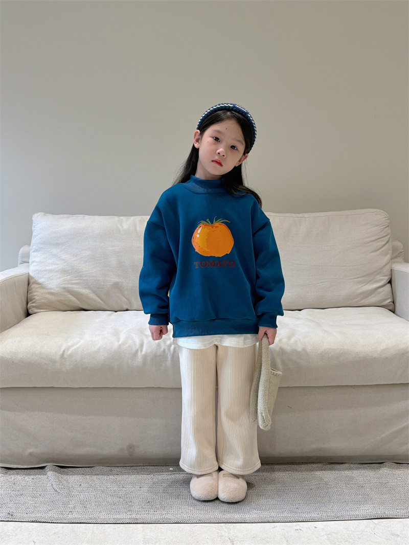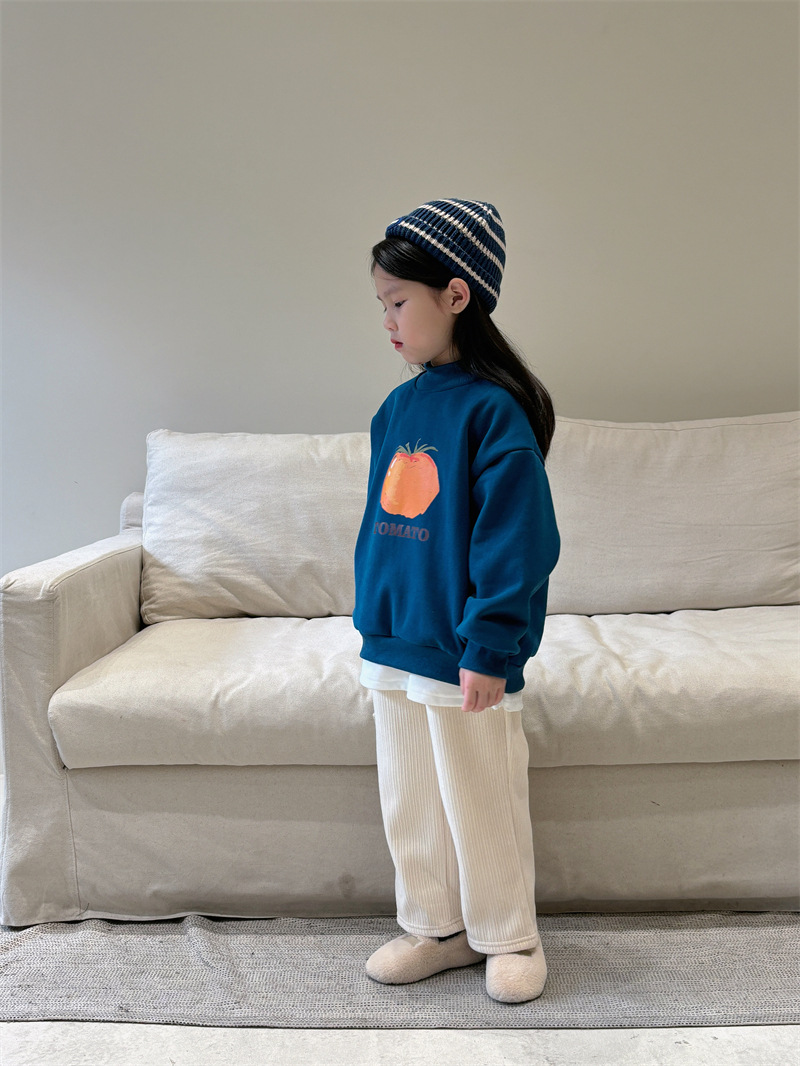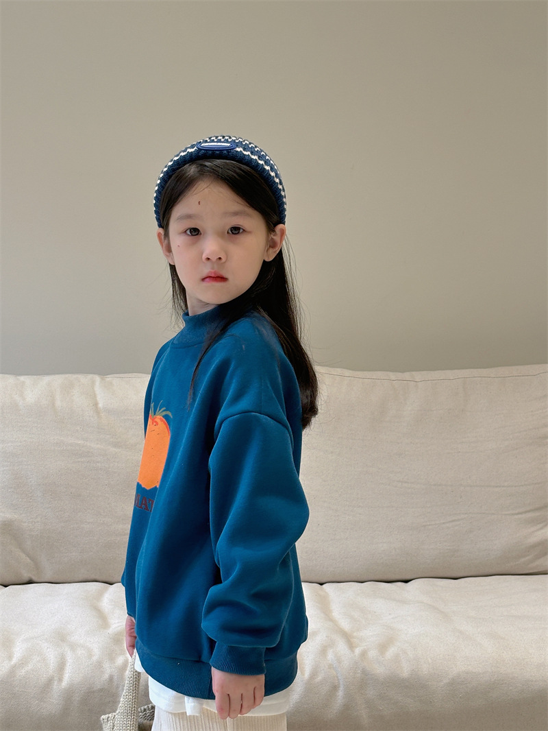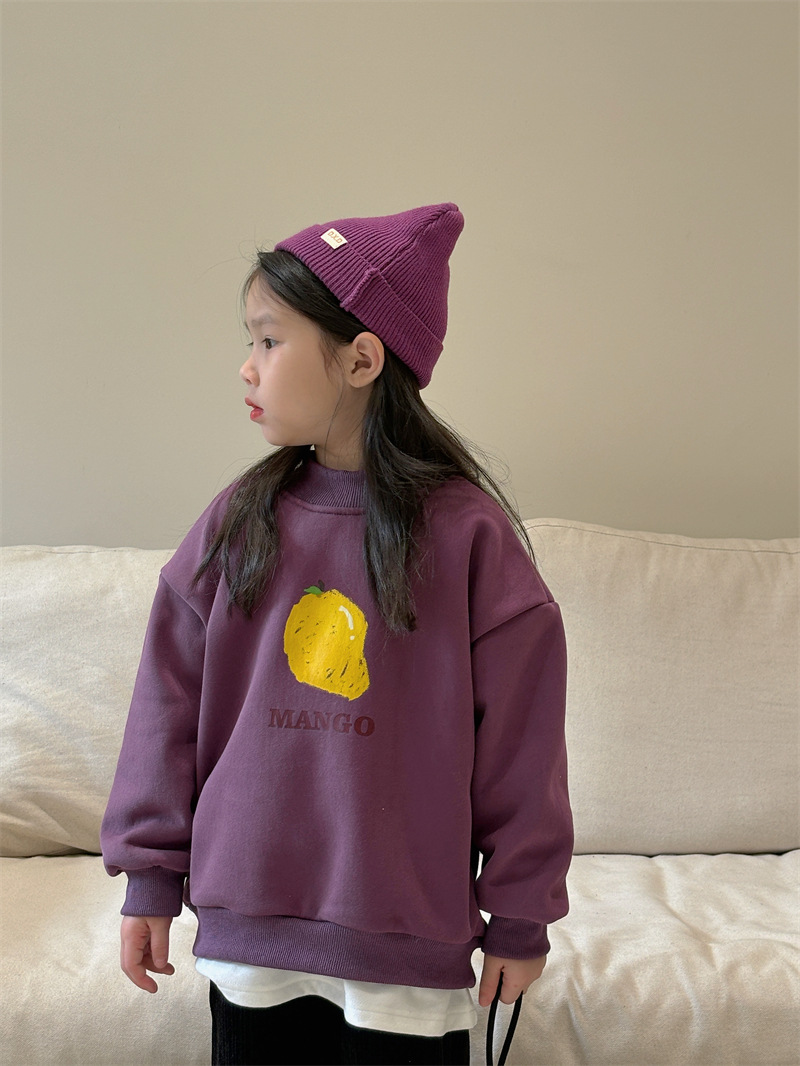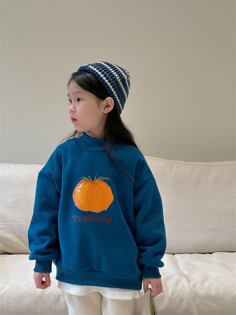 소년과 소녀 세련된 기모 스웨터 아기 겨울 새로운 어린이 과일 인쇄 캐주얼 크루넥 탑 A460