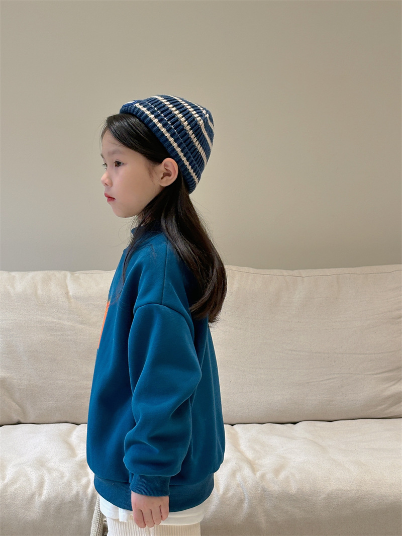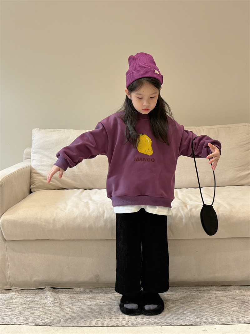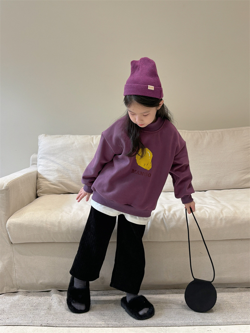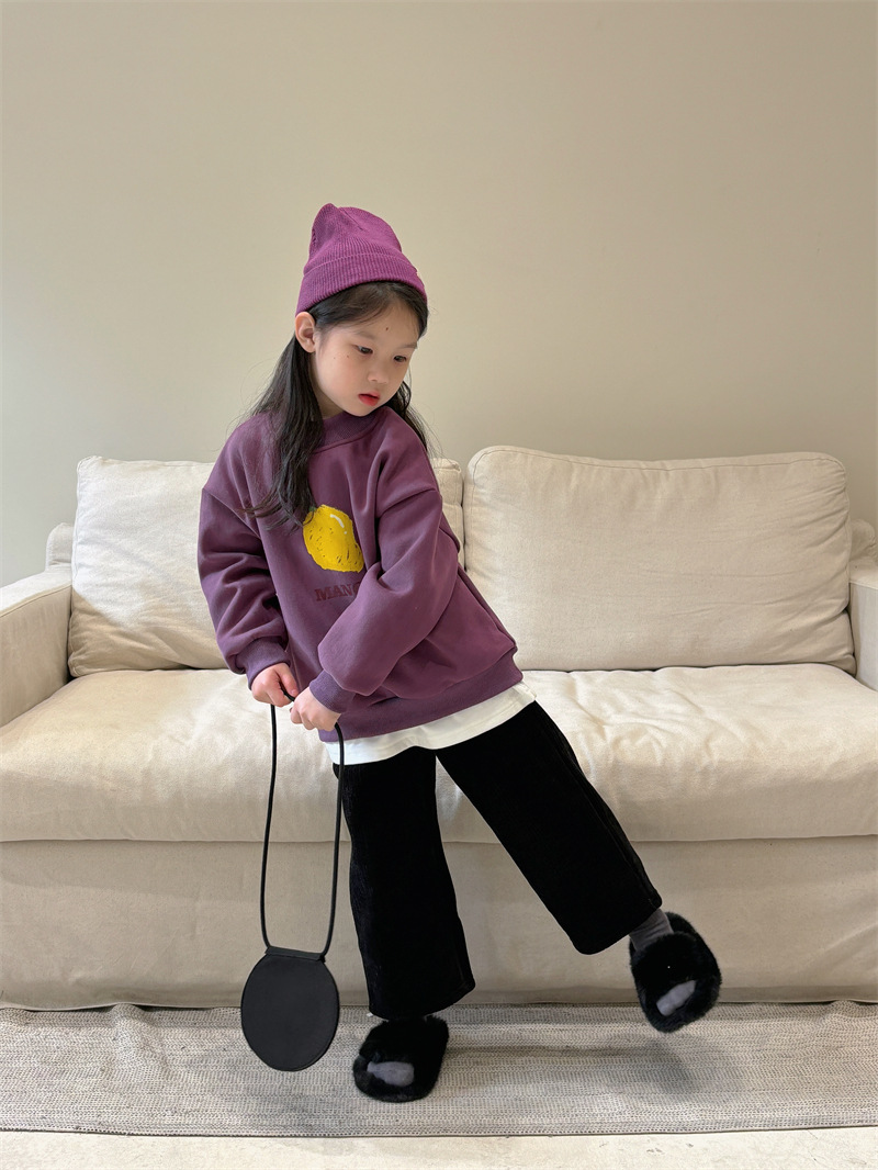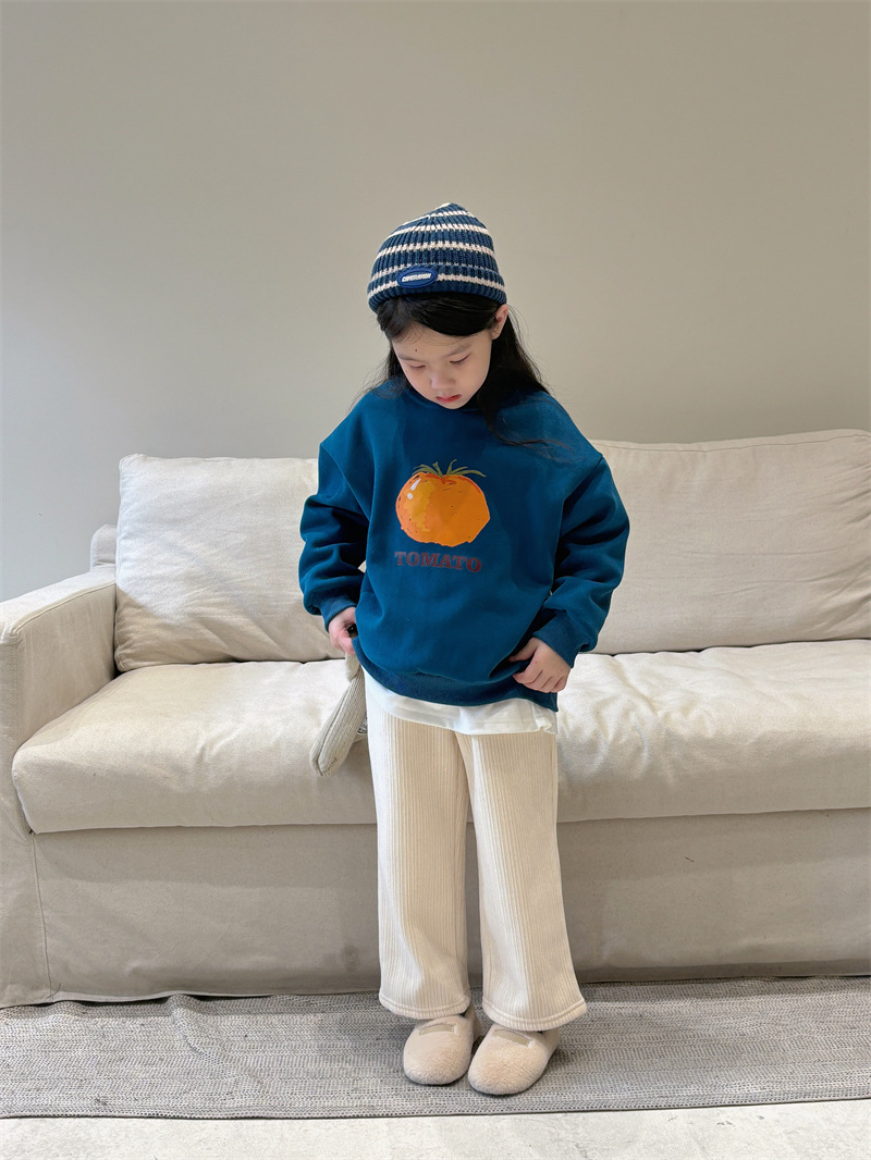 소년과 소녀 세련된 기모 스웨터 아기 겨울 새로운 어린이 과일 인쇄 캐주얼 크루넥 탑 A460