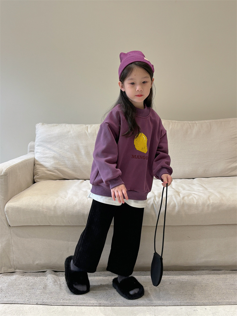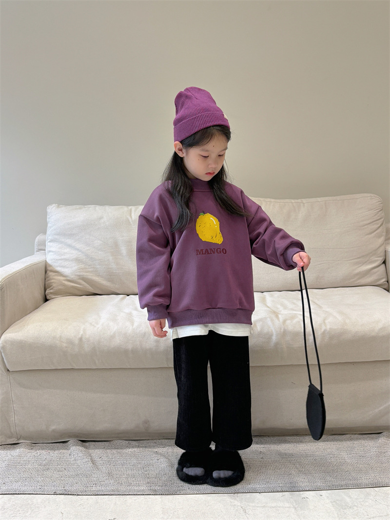 소년과 소녀 세련된 기모 스웨터 아기 겨울 새로운 어린이 과일 인쇄 캐주얼 크루넥 탑 A460스토어 가기