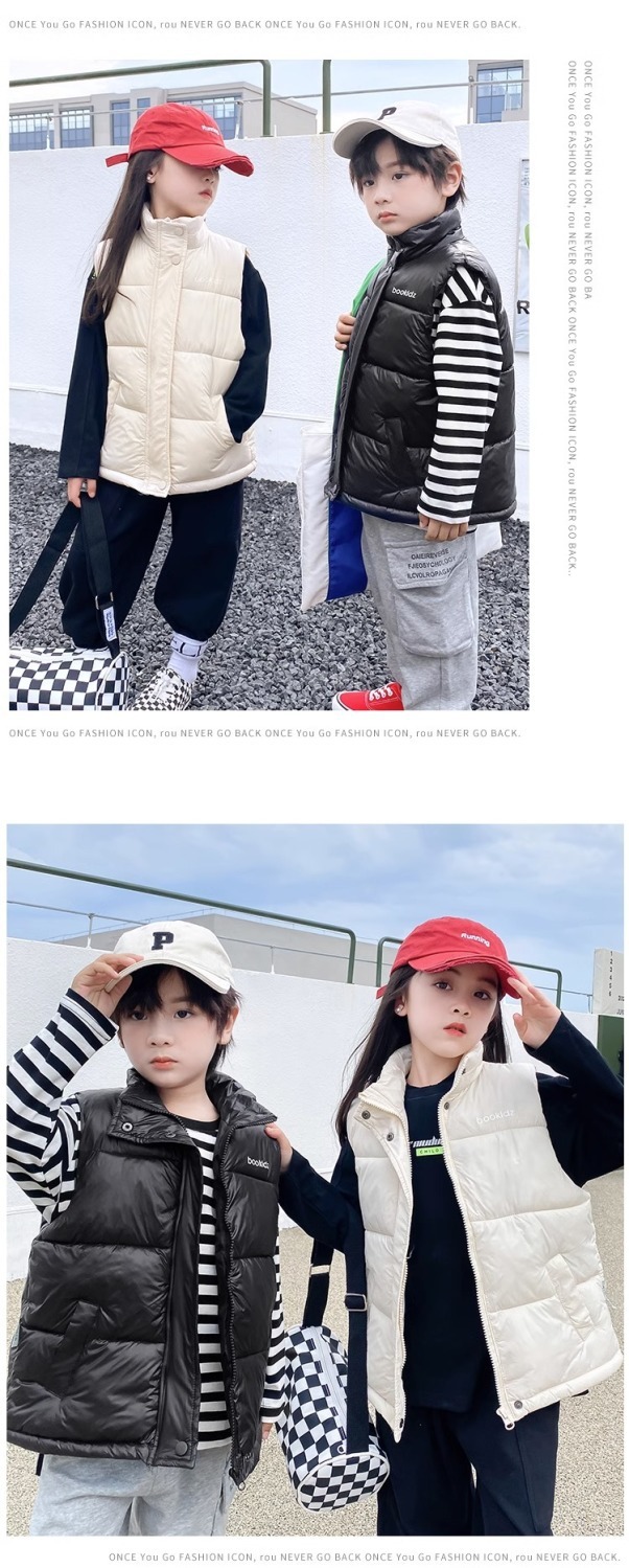 한국 스타일 2023 겨울 소년 소녀 용 세로 칼라가있는 두꺼운 다운 코튼 조끼스토어 가기