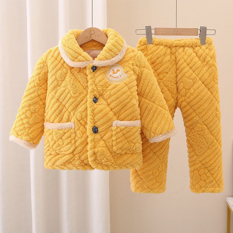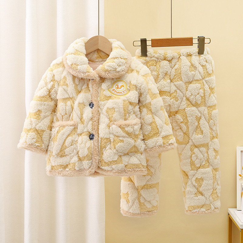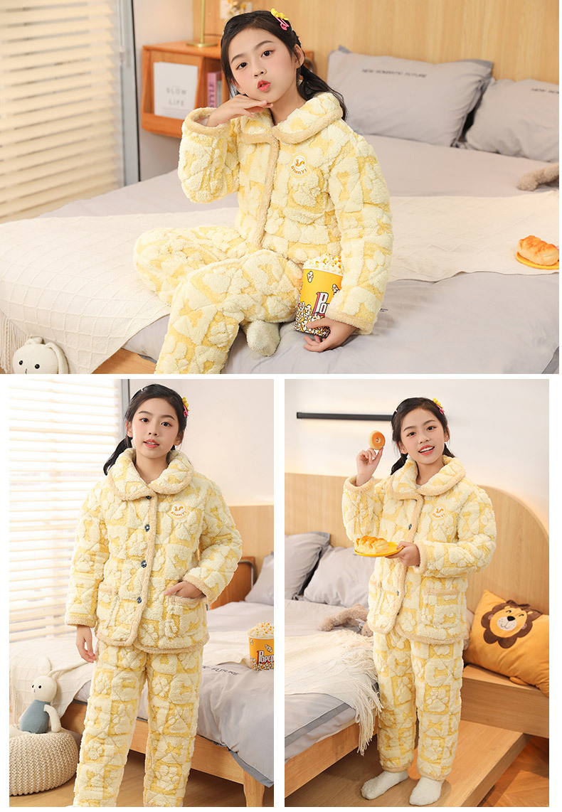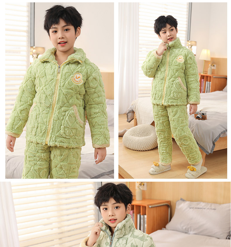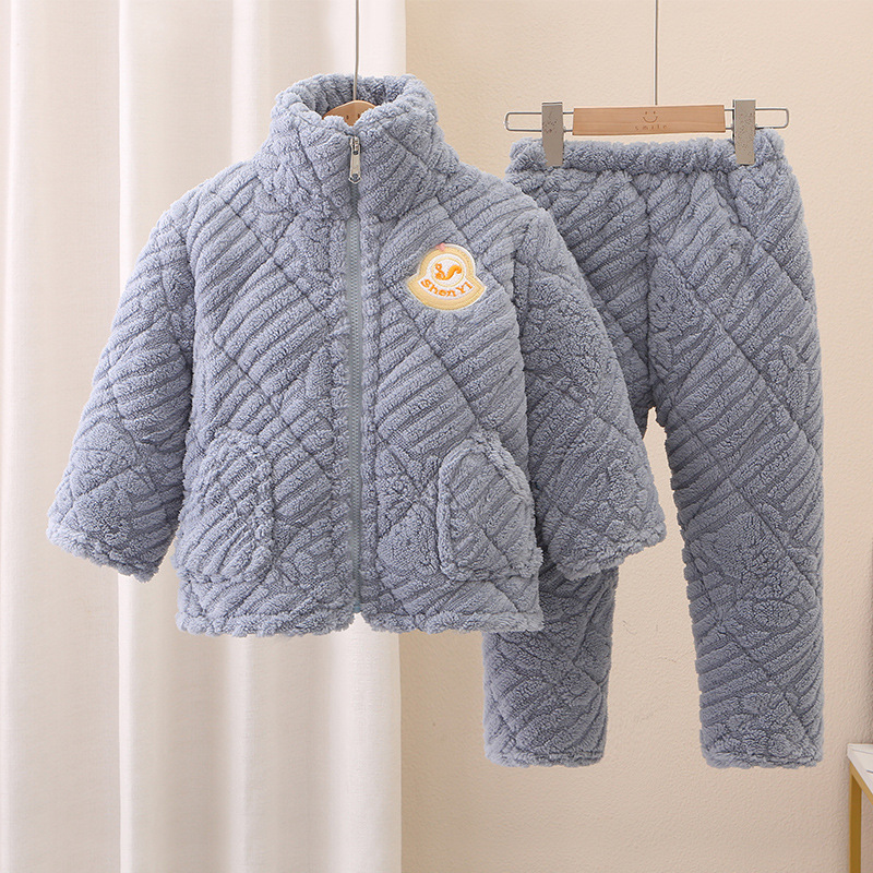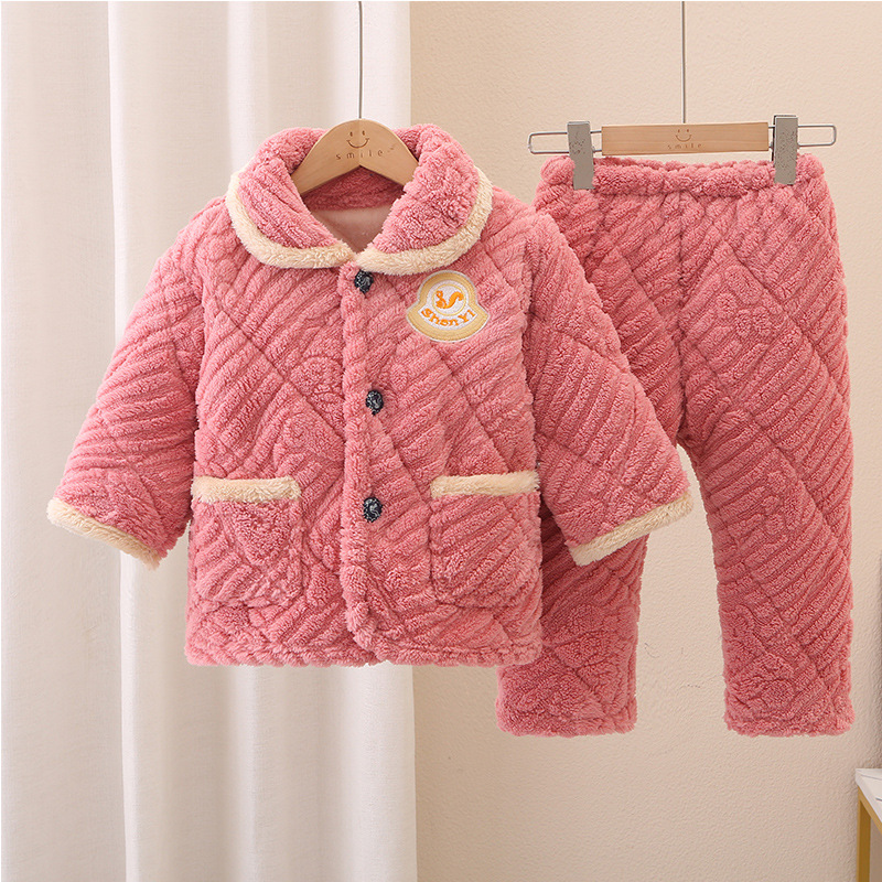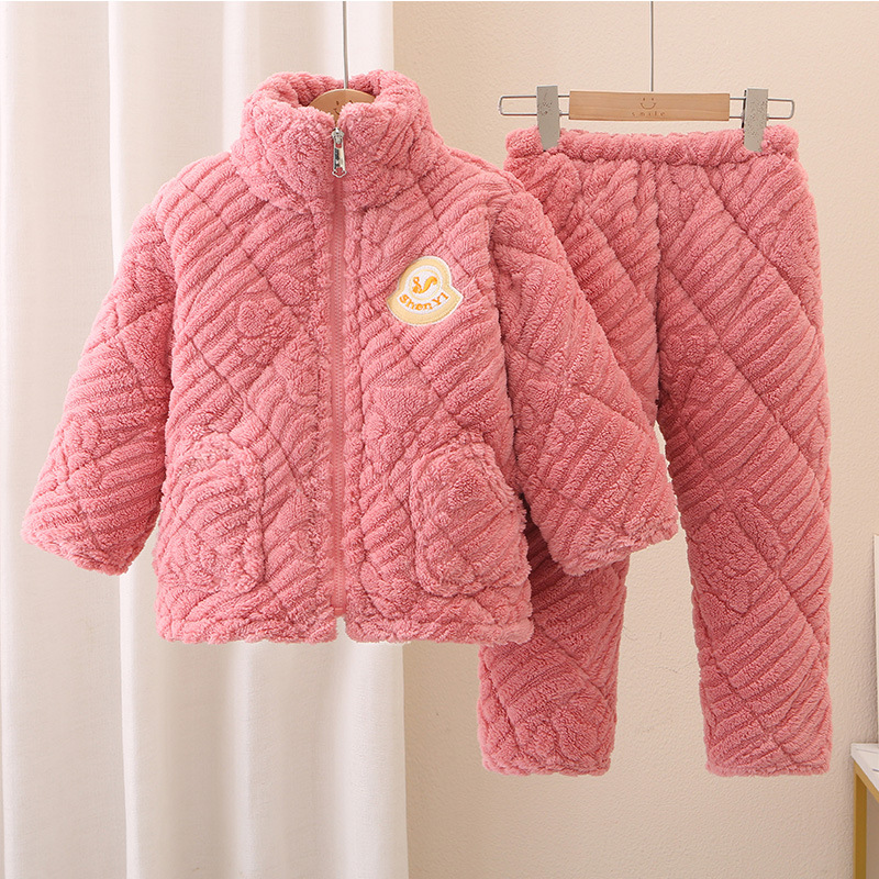 어린이 잠옷 소년 '겨울 3 층 퀼트 기모 두꺼운 산호 양털 귀여운 소녀 큰 어린이 세트 가정 옷스토어 가기