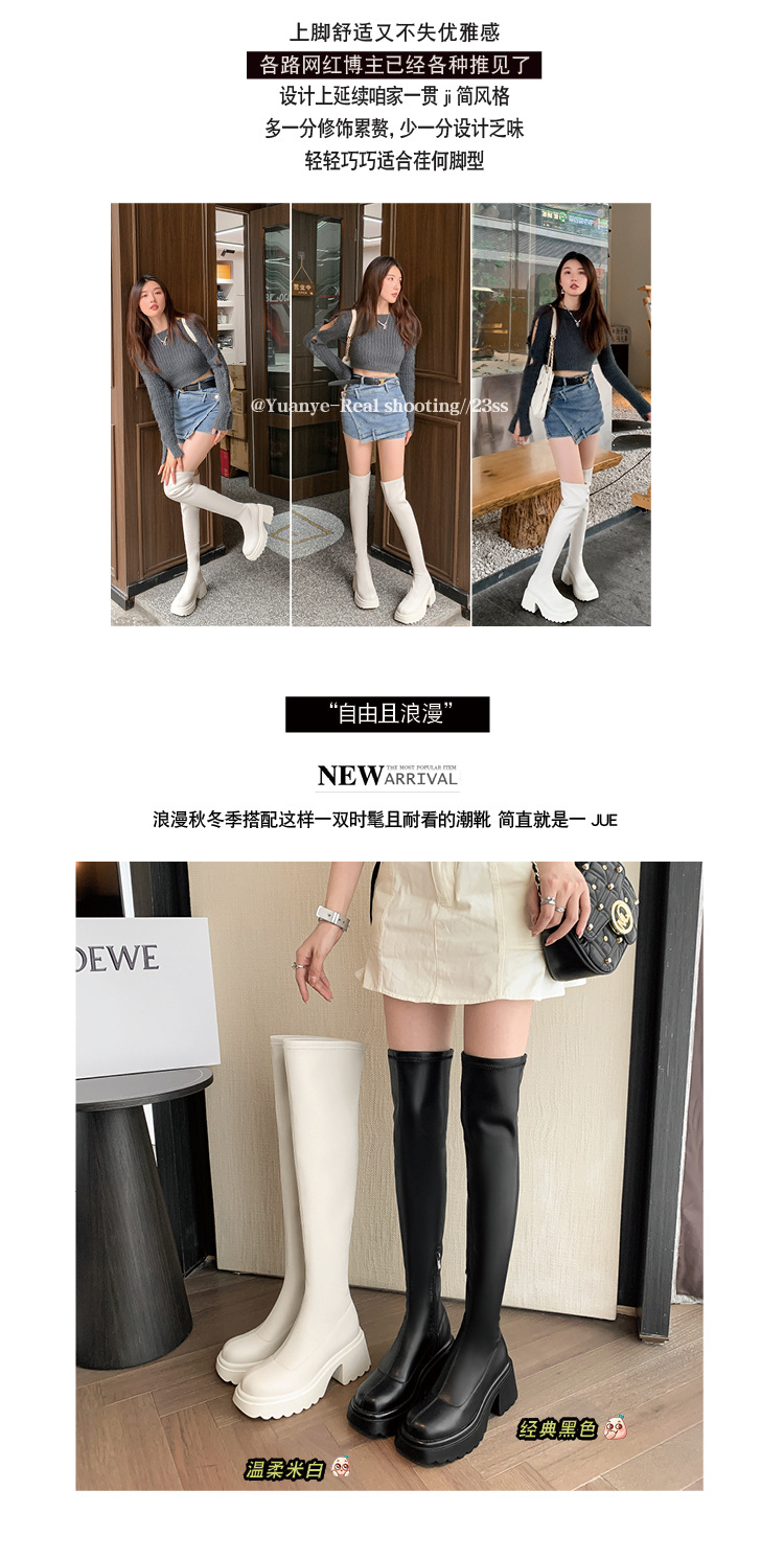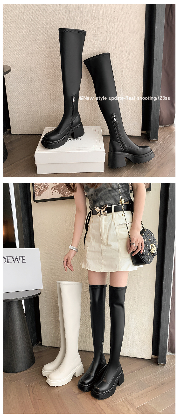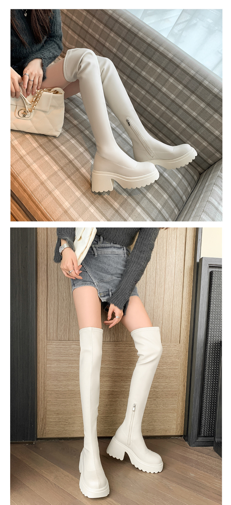 통통녀 두꺼운 다리 슬리밍 슈가 오버 더 니 부츠 여성용 라운드 토 두꺼운 밑창 머핀 나이트 스트레치 부츠 두꺼운 하이힐 하이 부츠