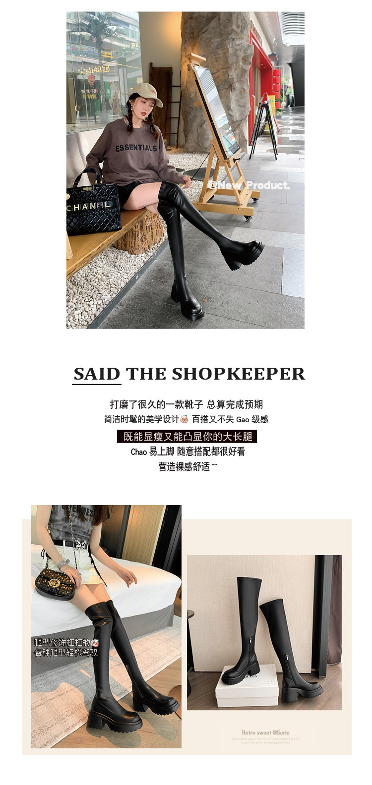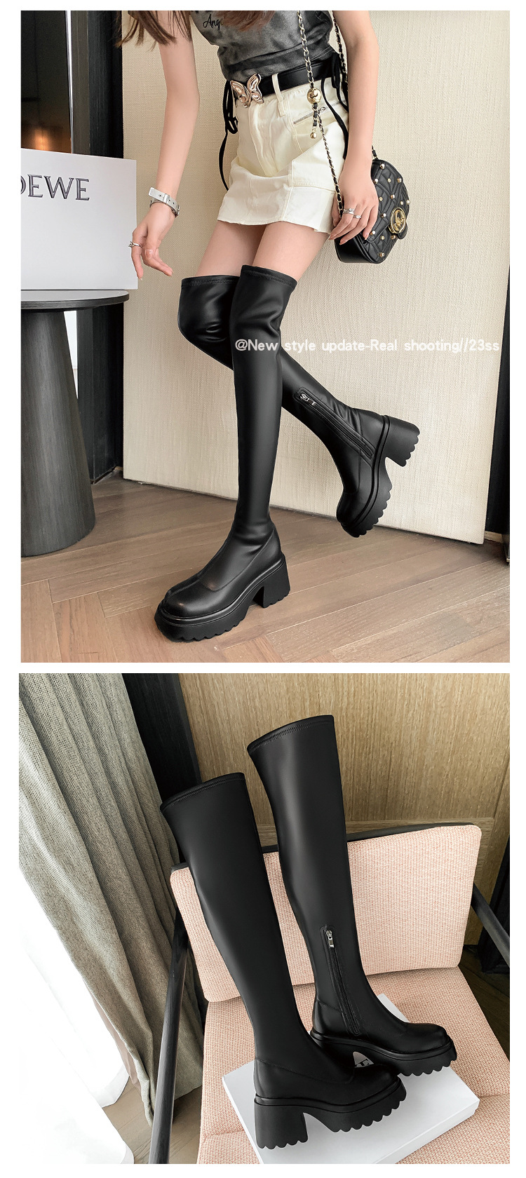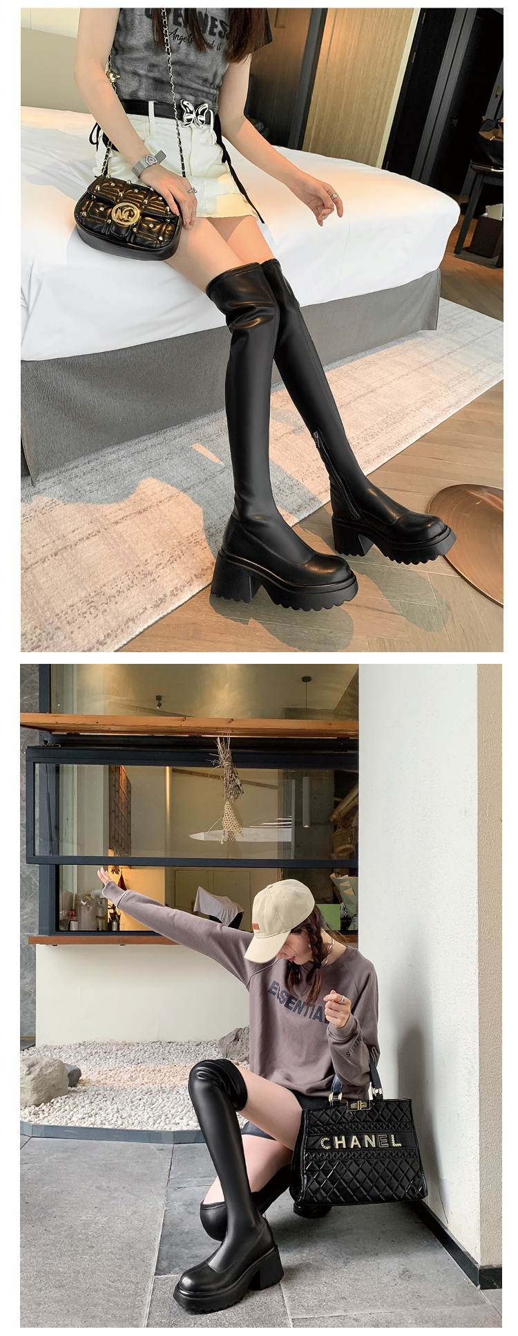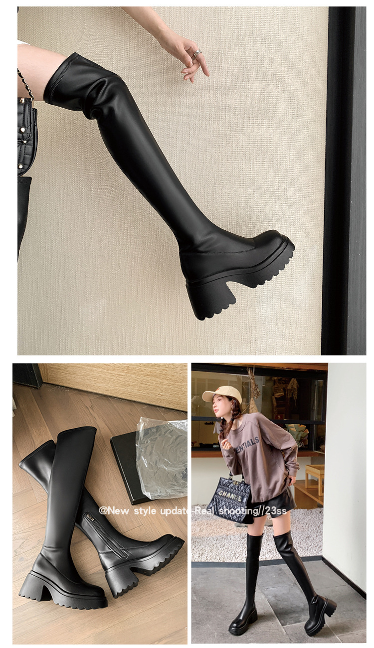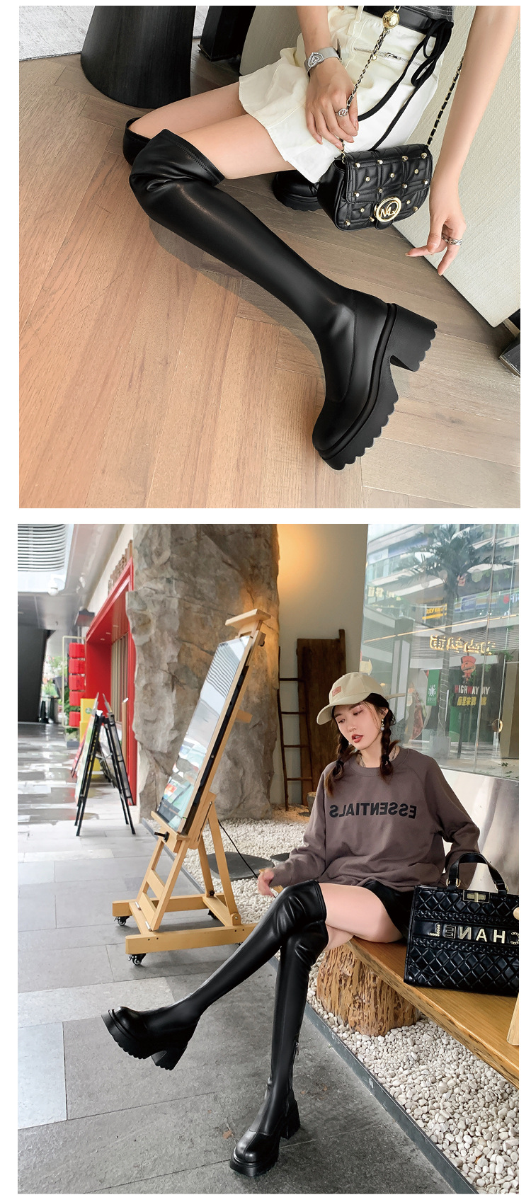 통통녀 두꺼운 다리 슬리밍 슈가 오버 더 니 부츠 여성용 라운드 토 두꺼운 밑창 머핀 나이트 스트레치 부츠 두꺼운 하이힐 하이 부츠스토어 가기