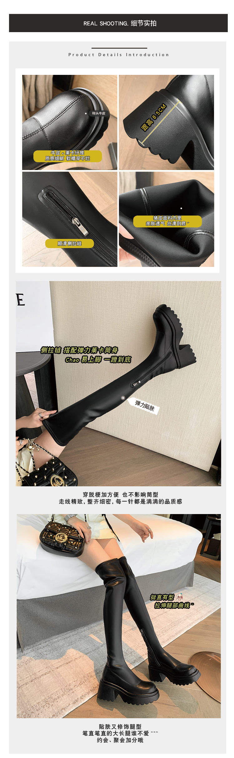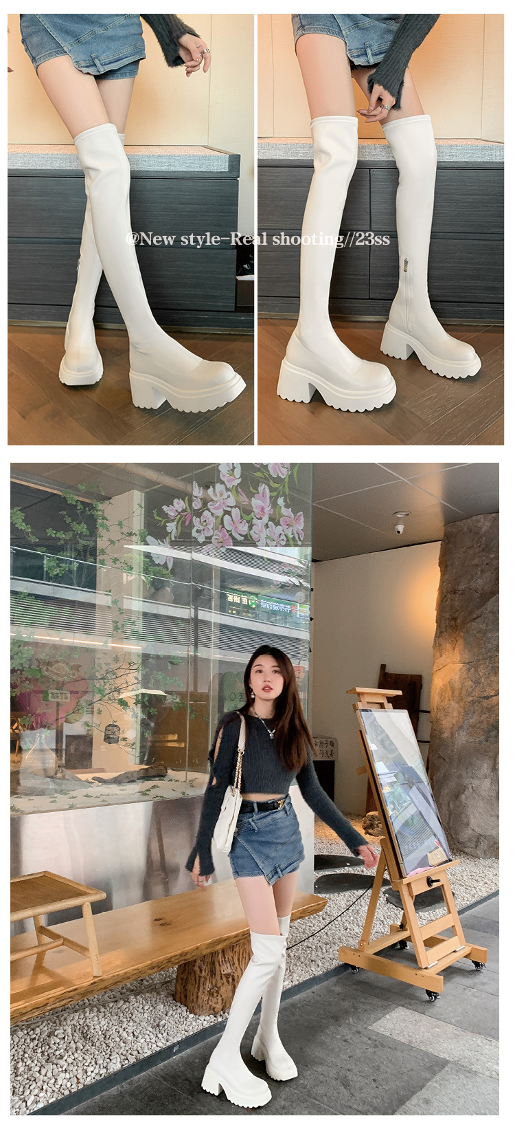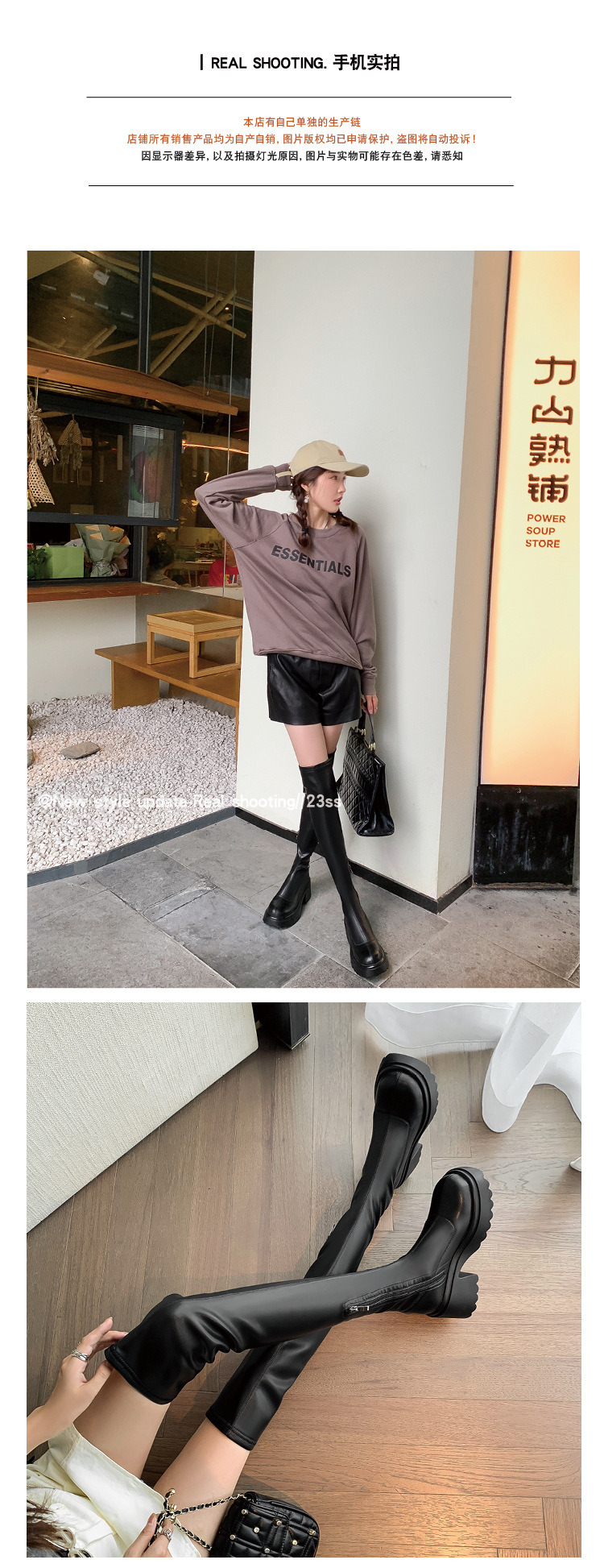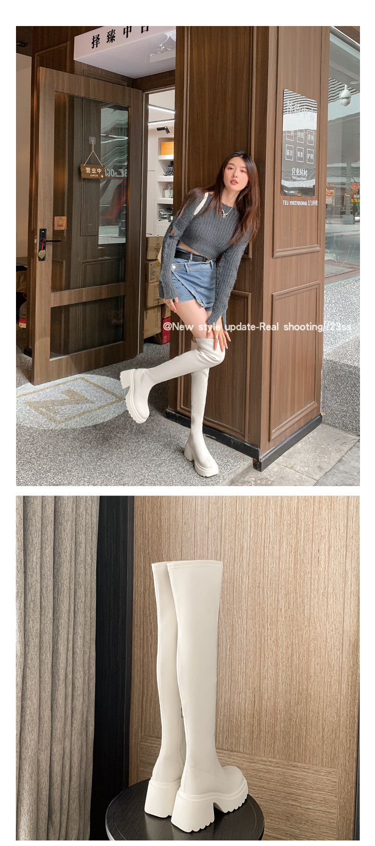 통통녀 두꺼운 다리 슬리밍 슈가 오버 더 니 부츠 여성용 라운드 토 두꺼운 밑창 머핀 나이트 스트레치 부츠 두꺼운 하이힐 하이 부츠스토어 가기