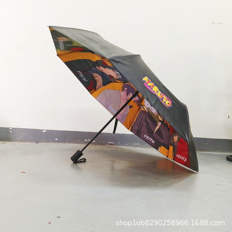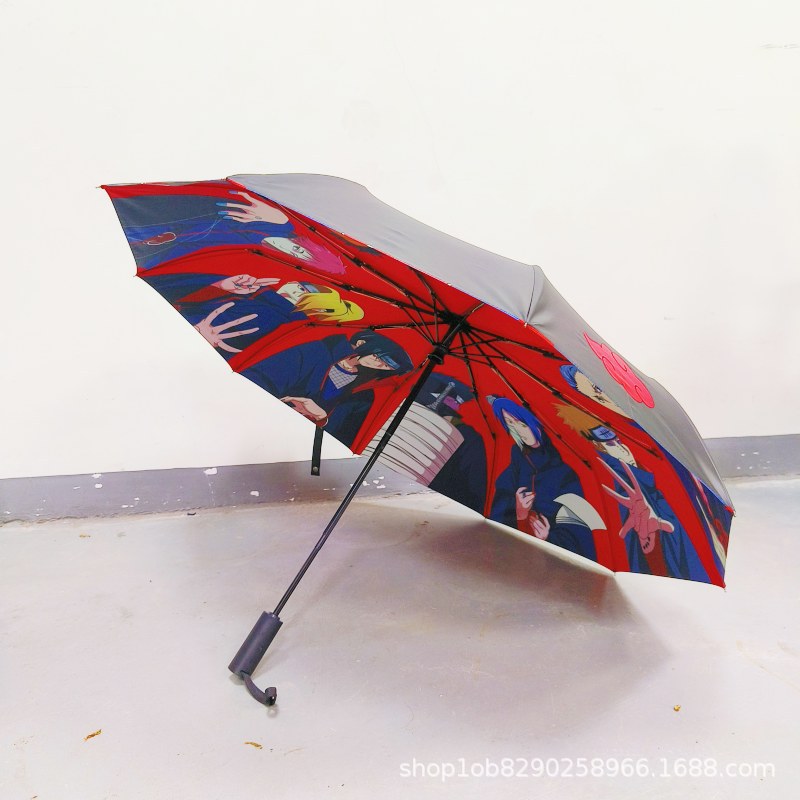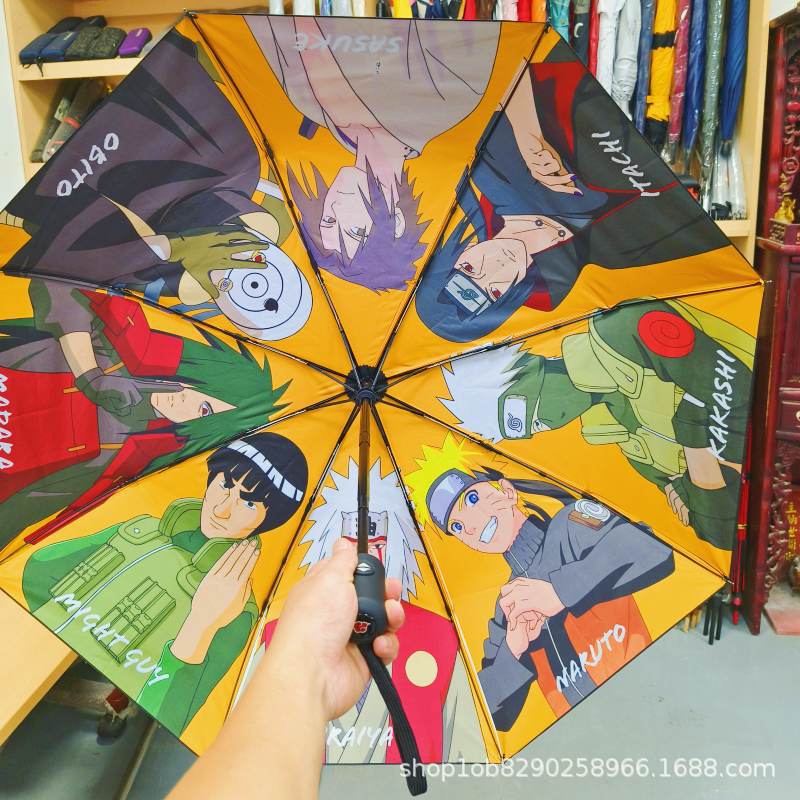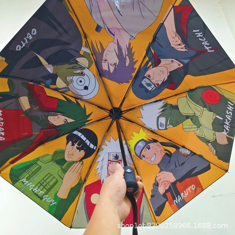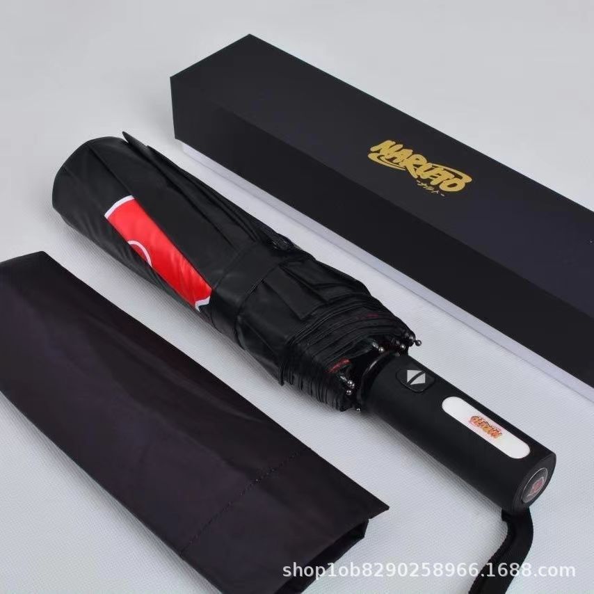 나루토 우산 애니메이션 주변 보조 검은 접착제 자동 써니 우산 샤오 조직 머리카락을위한 접는 자외선 차단제 우산스토어 가기