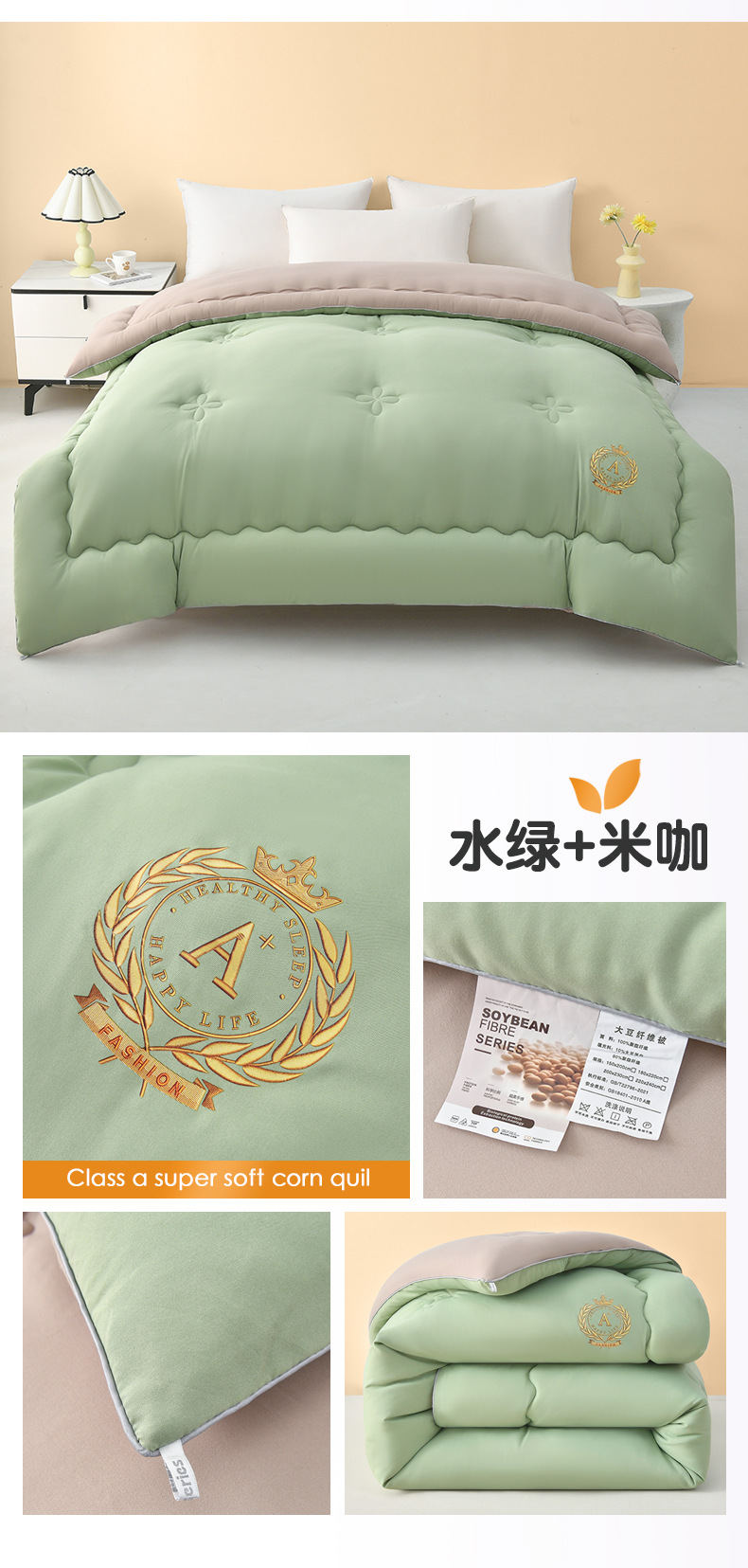 2024 새로운 클래스 모성 및 유아 등급 생면 콩 섬유 이불 봄 및 가을 이불 두꺼운 선물 겨울 이불 기숙사 이불 코어