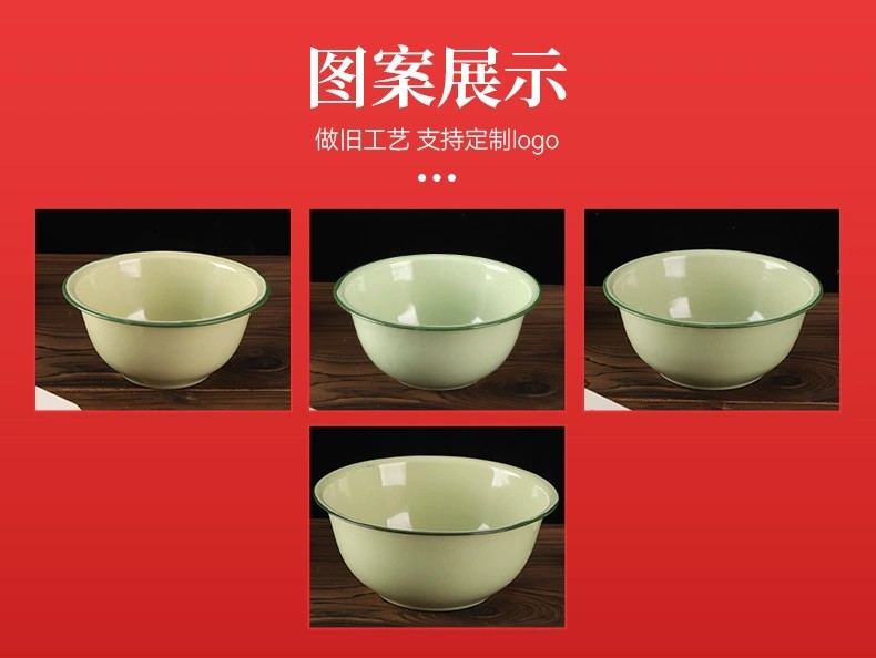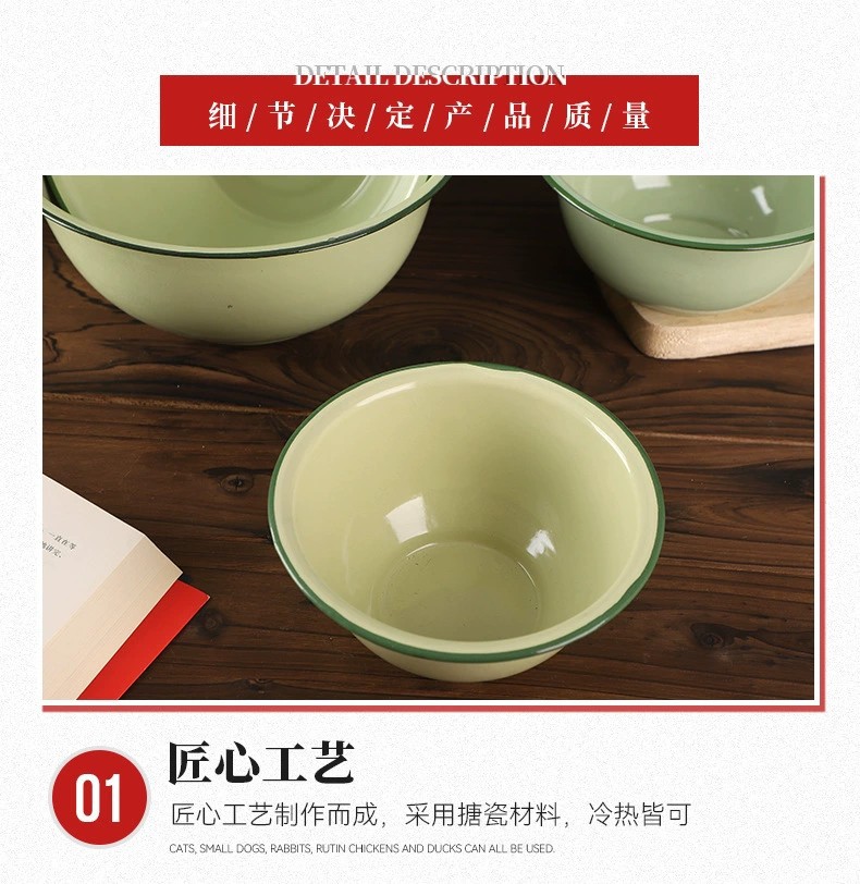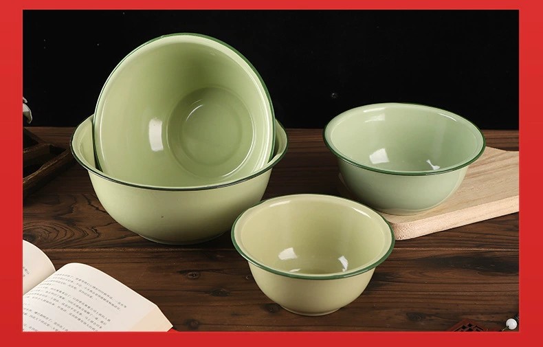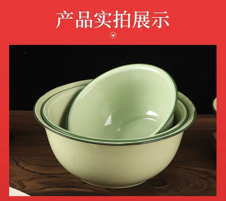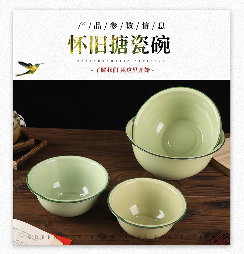 구식 에나멜 수프 냄비 깊어지는 그릇 그리운 쌀 냄비 에나멜 냄비 두꺼운 수프 냄비 녹색 신선한 유지 믹싱 수프 그릇
