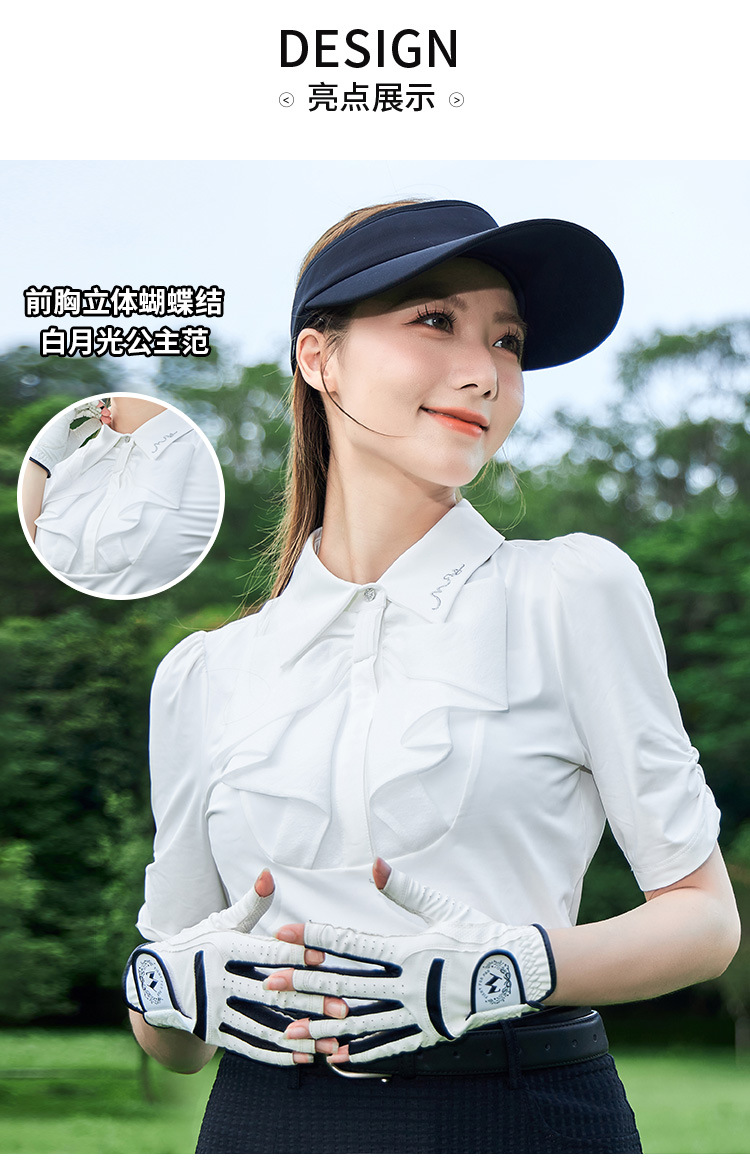 MY 골프 여성용 뉴 프렌치 세트 화이트 반팔 자외선 차단제 탑 자외선 차단 모든 매치 블랙 오버스커트