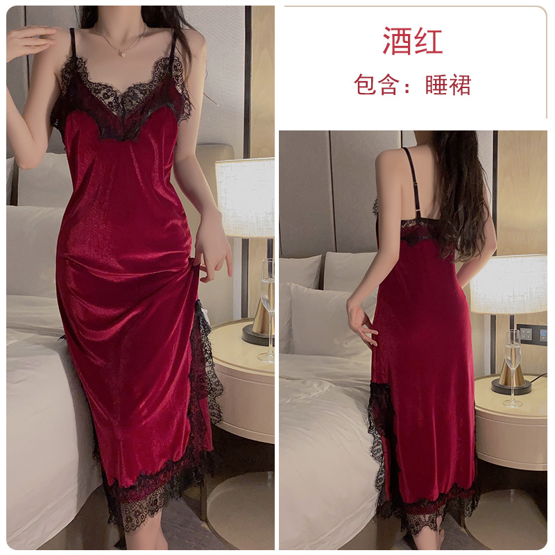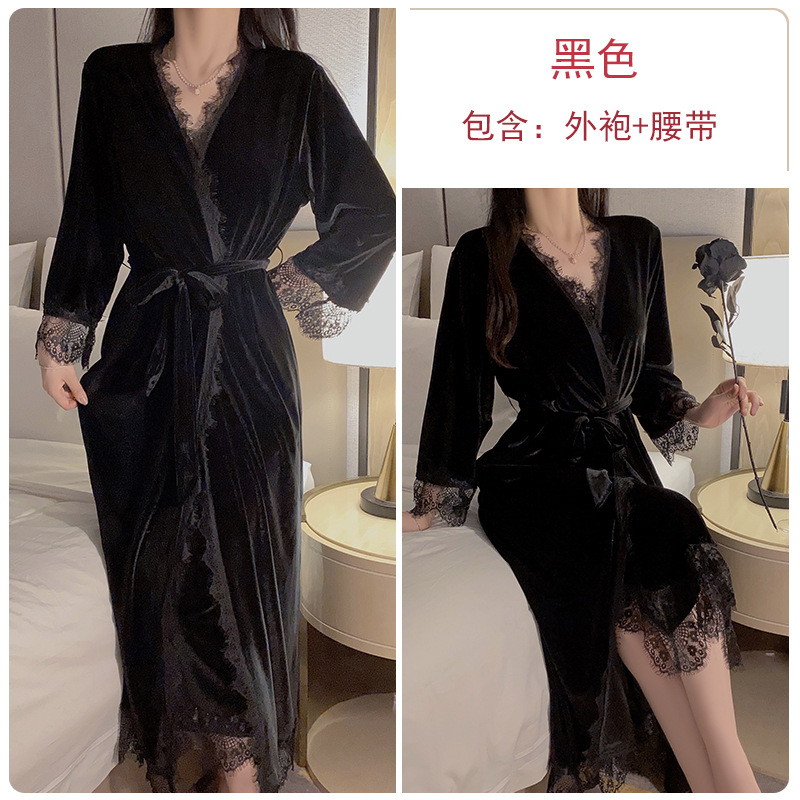 베라 버튼 신부 잠옷 벨벳 드레싱 가운 심플 슬릿 슬립 드레스 아우터 여성 홈웨어 세트 232