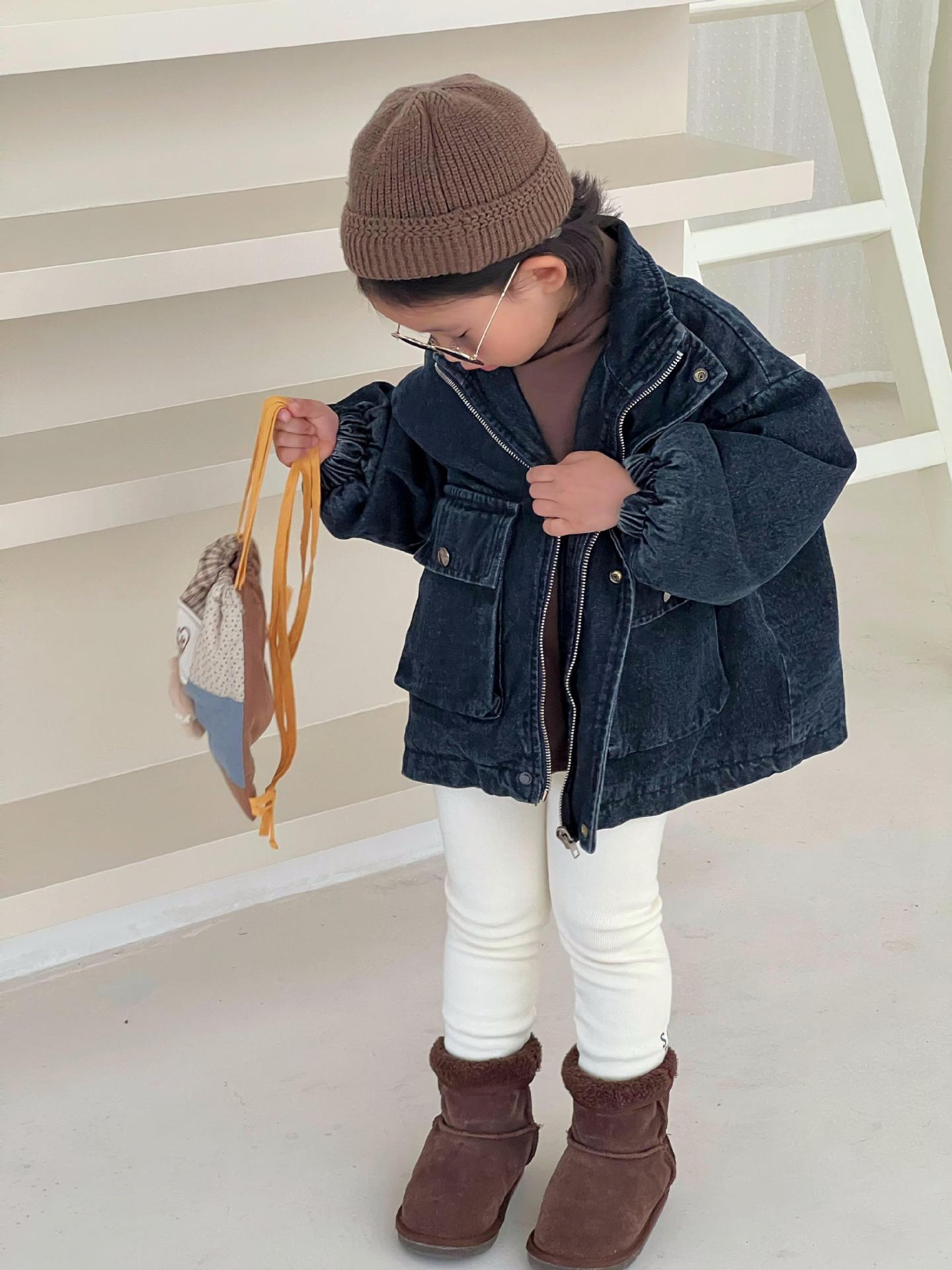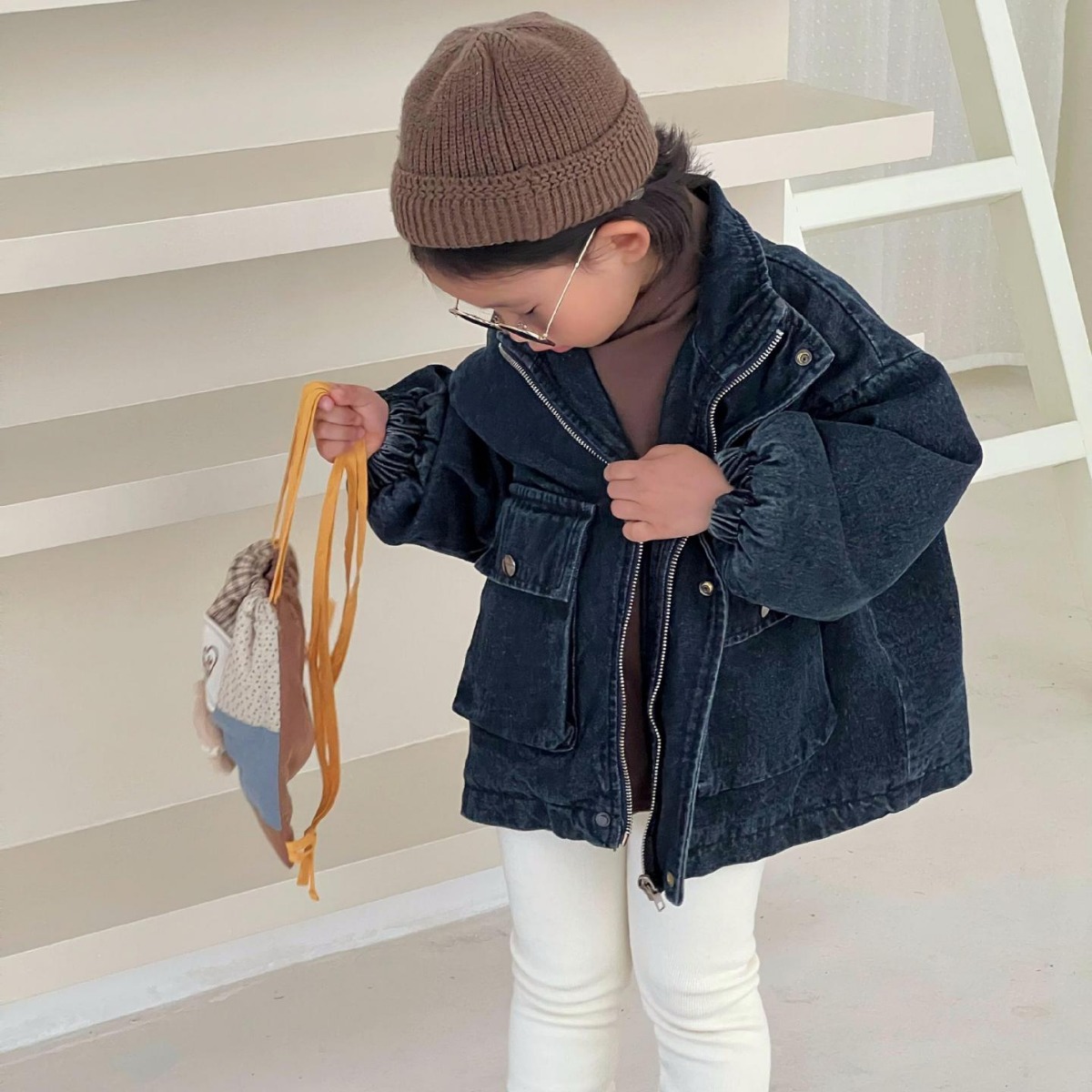 탑 에그 한국 아동복 2023 겨울 새로운 소년 소녀 아동 코트 두꺼운 퀼트 캐주얼 데님 면 패딩 재킷
