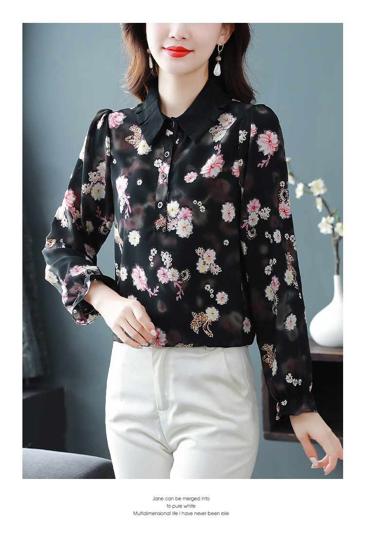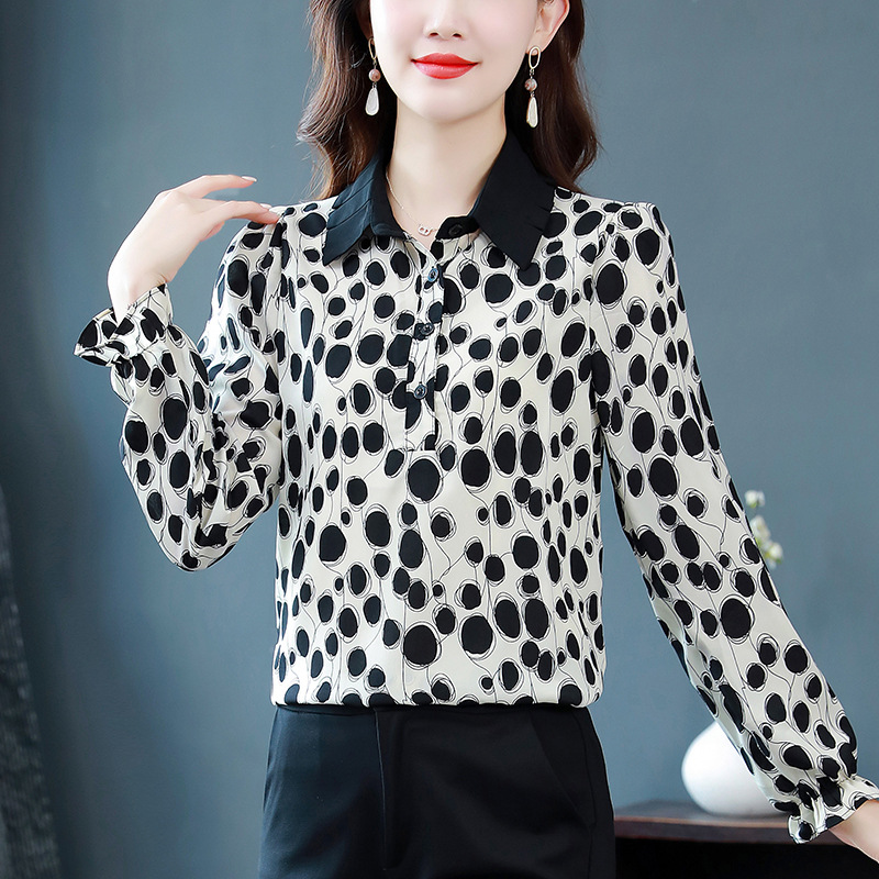 진짜 샷 재고 긴 소매 쉬폰 셔츠 여자의 2023 봄과 가을 새로운 느슨한 슬리밍 웨스턴 스타일 모든 경기 우아한 탑스토어 가기