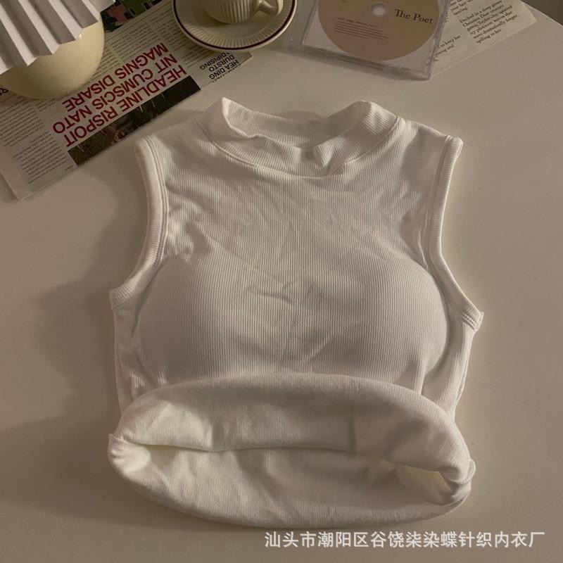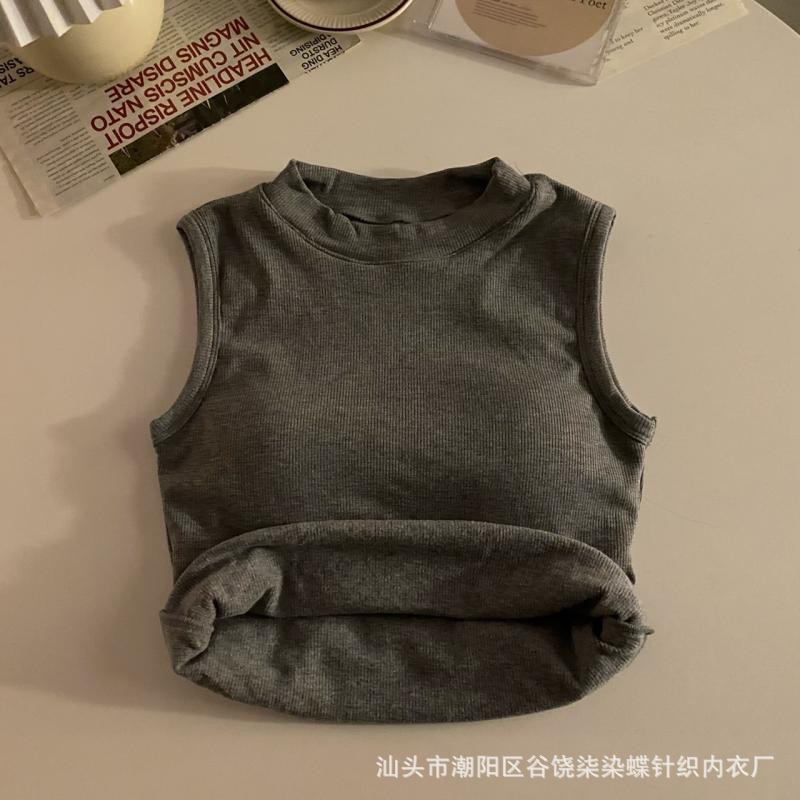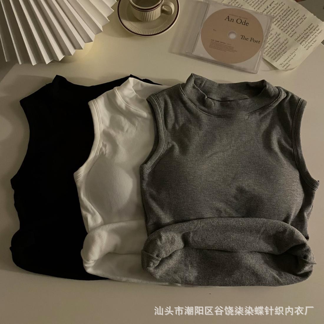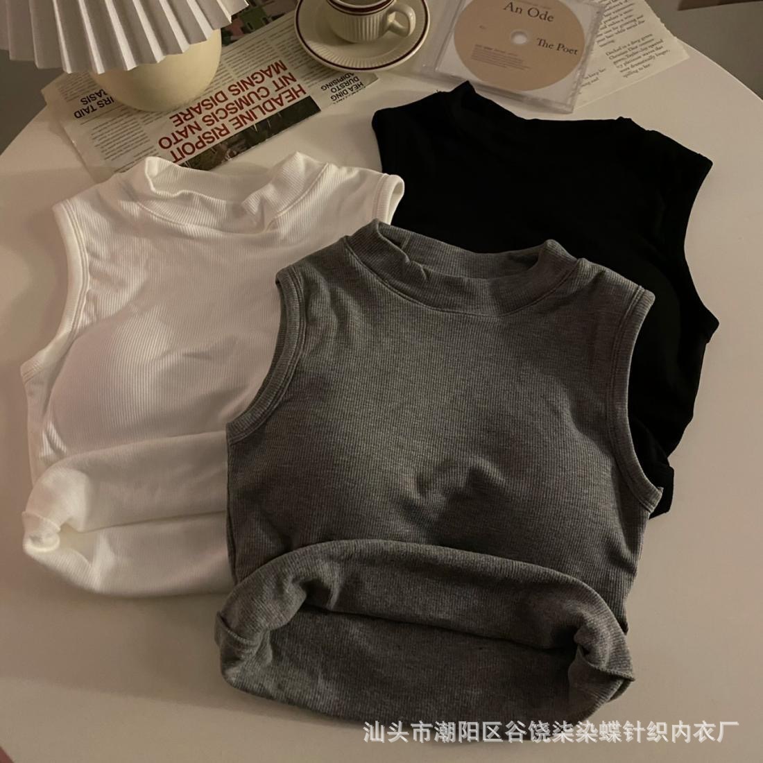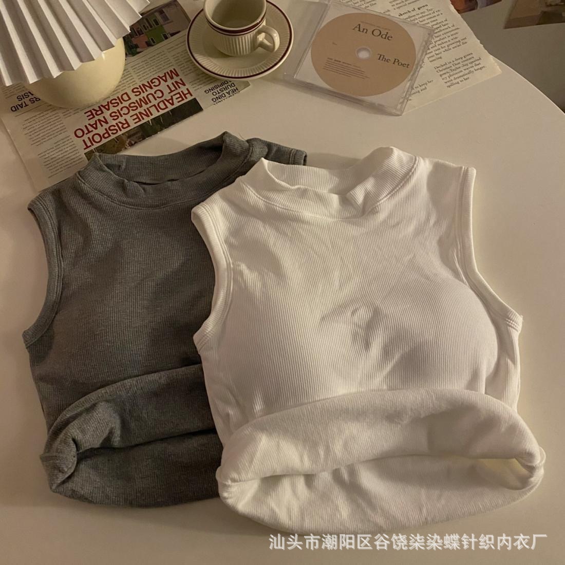 가슴 패드가있는 하프 하이 칼라 조끼 원피스 스크럽 겨울 슬링 아우터 착용 소녀 테리 바텀 개더링 빛 방지