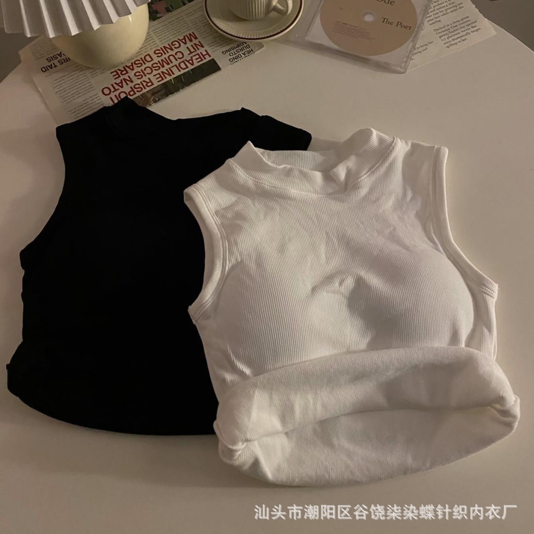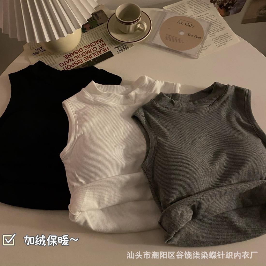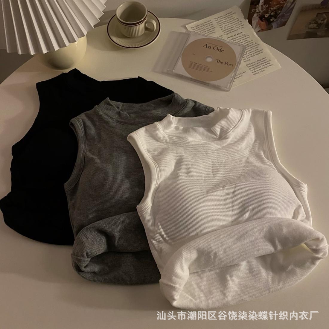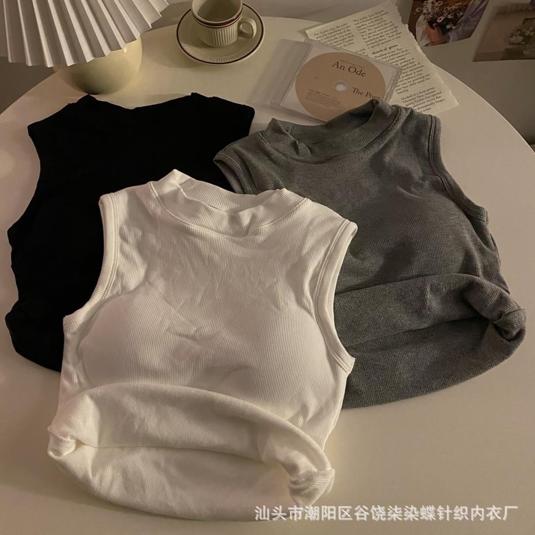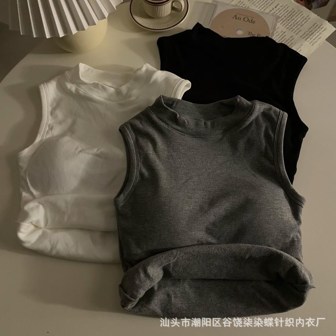 가슴 패드가있는 하프 하이 칼라 조끼 원피스 스크럽 겨울 슬링 아우터 착용 소녀 테리 바텀 개더링 빛 방지