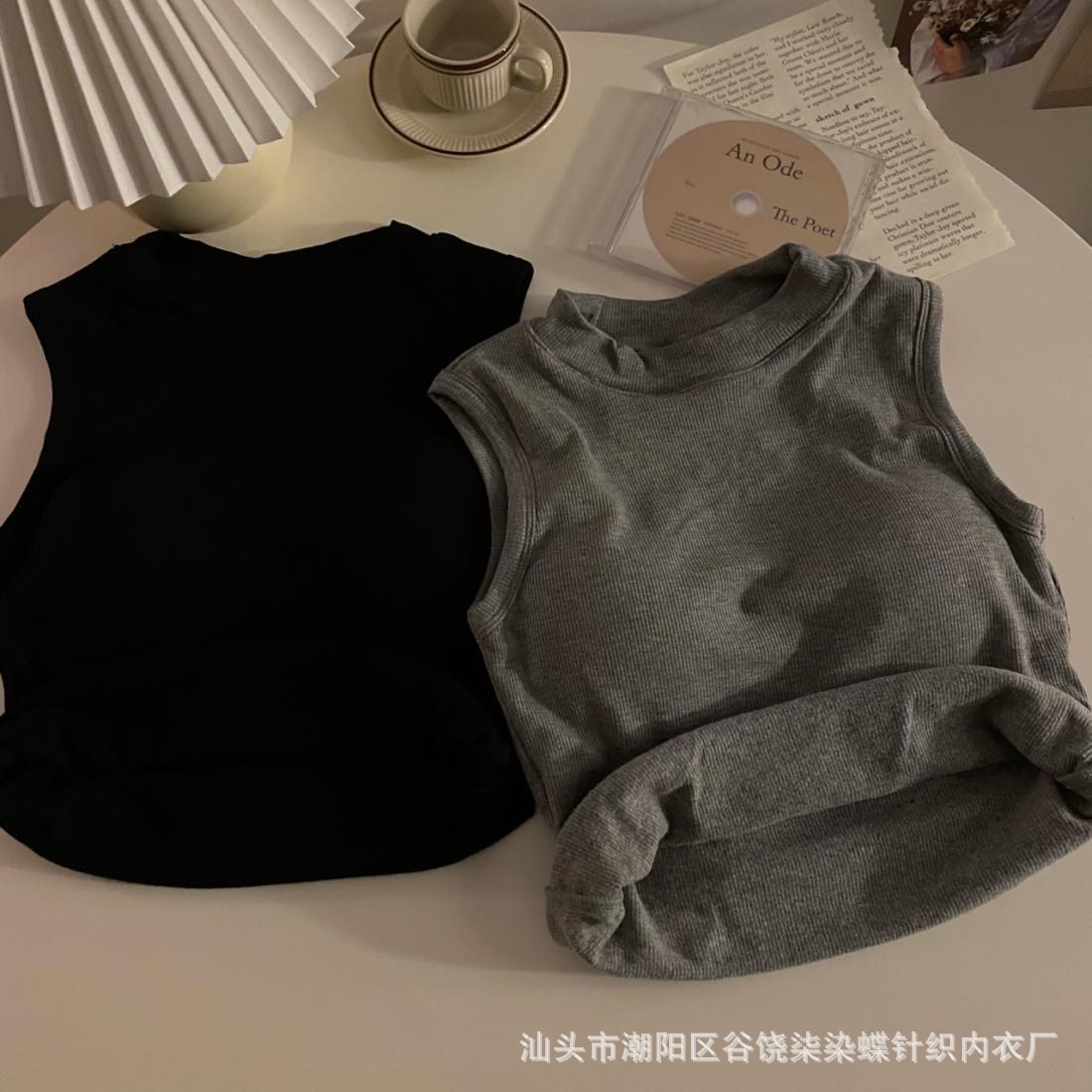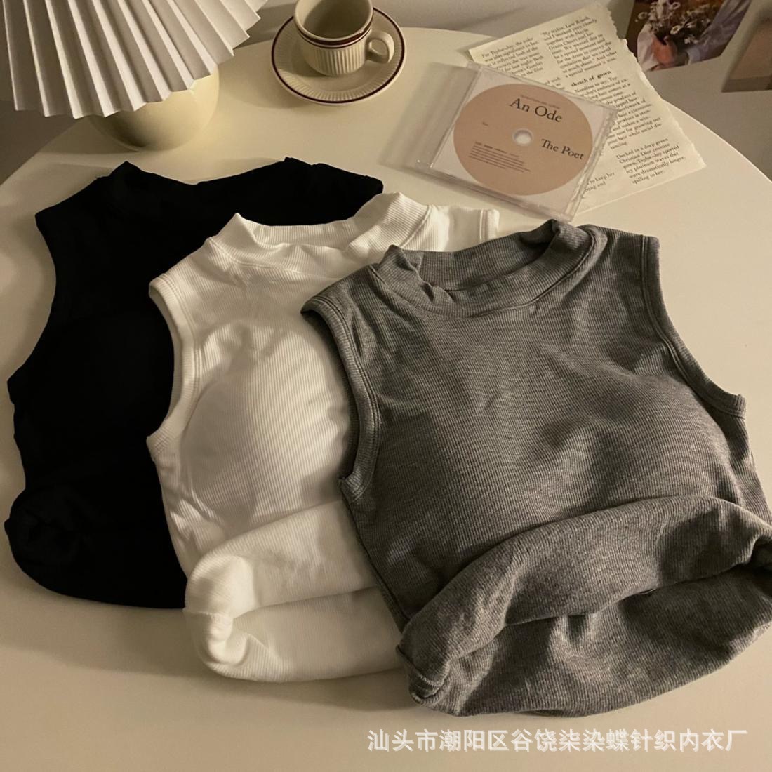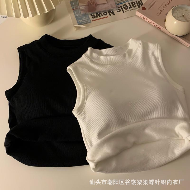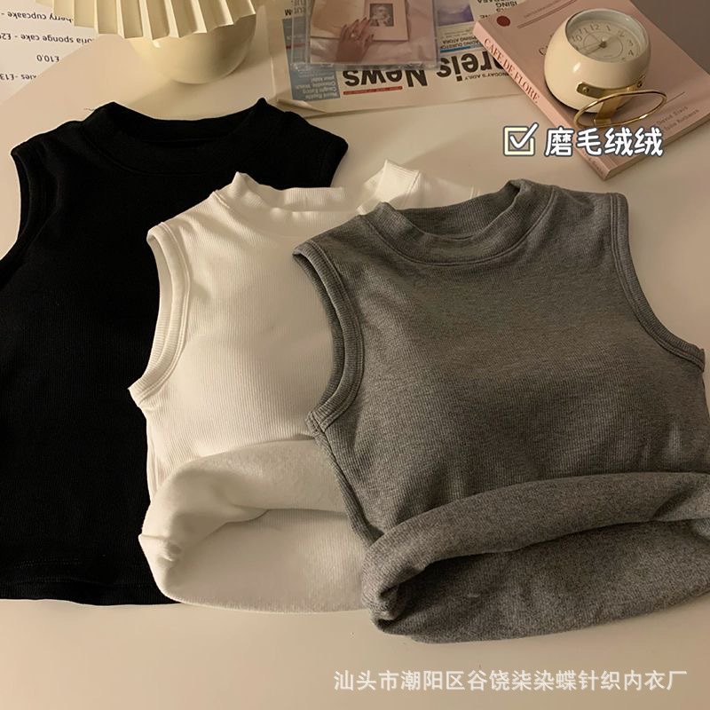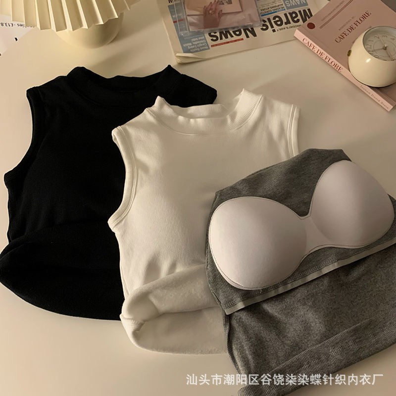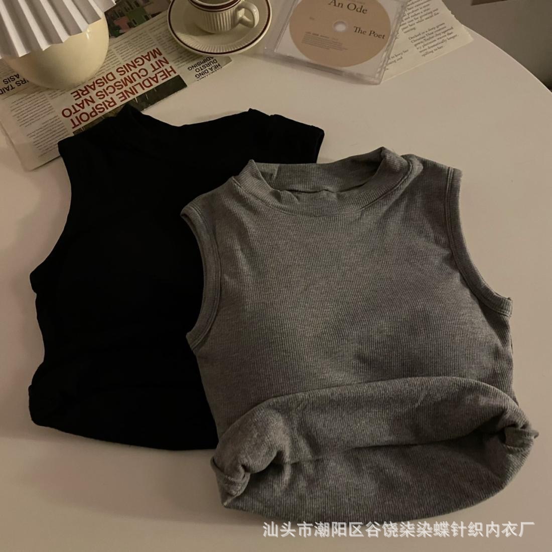 가슴 패드가있는 하프 하이 칼라 조끼 원피스 스크럽 겨울 슬링 아우터 착용 소녀 테리 바텀 개더링 빛 방지