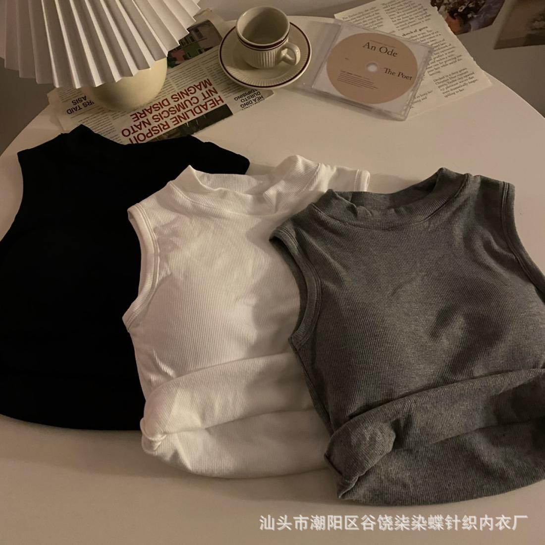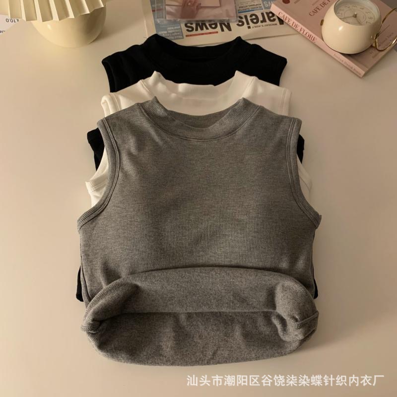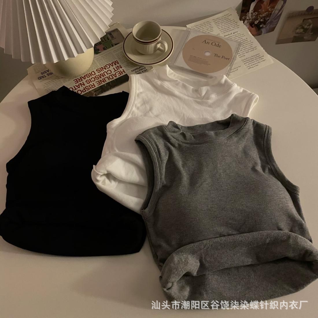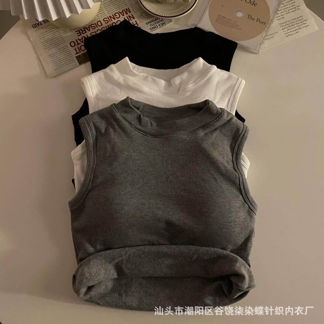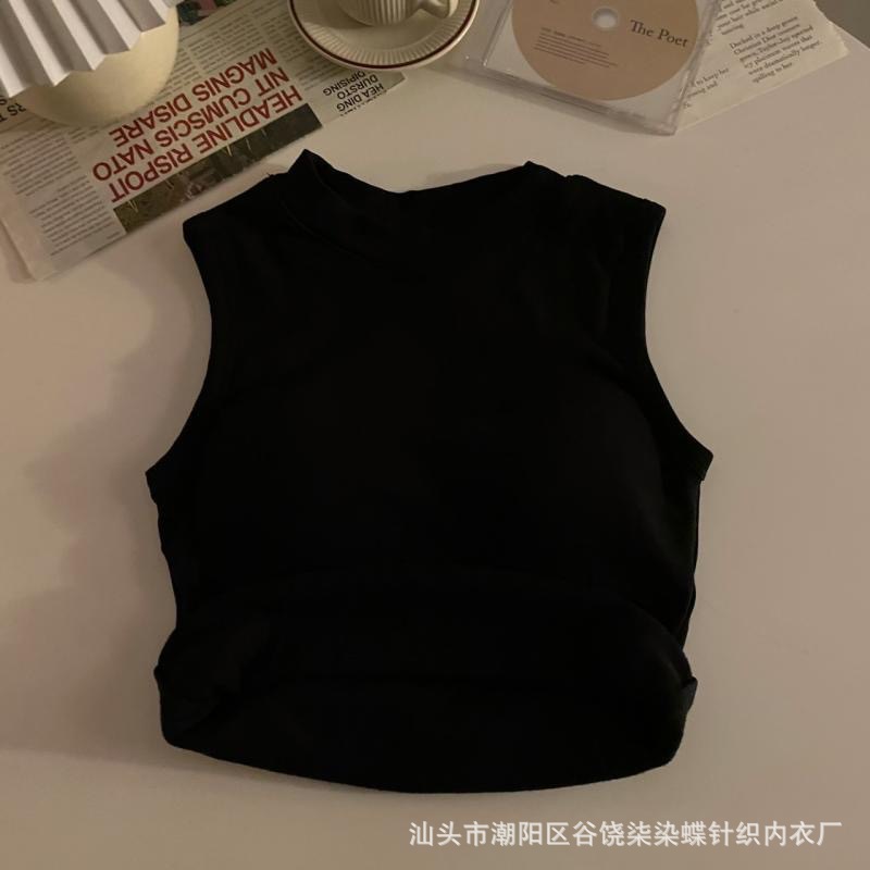 가슴 패드가있는 하프 하이 칼라 조끼 원피스 스크럽 겨울 슬링 아우터 착용 소녀 테리 바텀 개더링 빛 방지