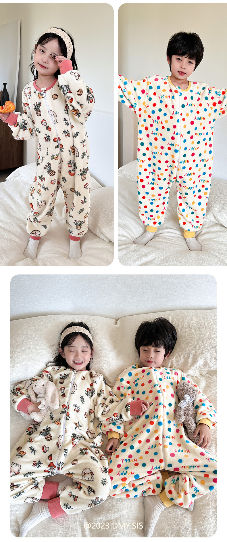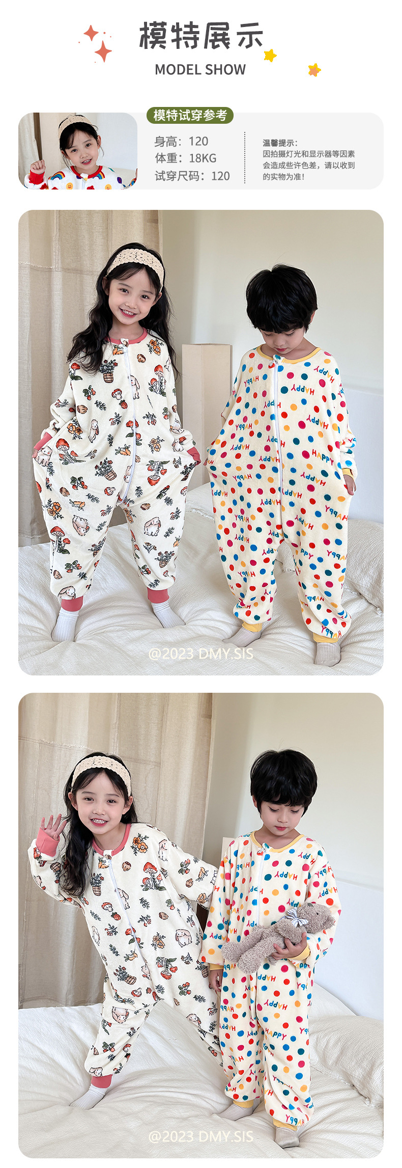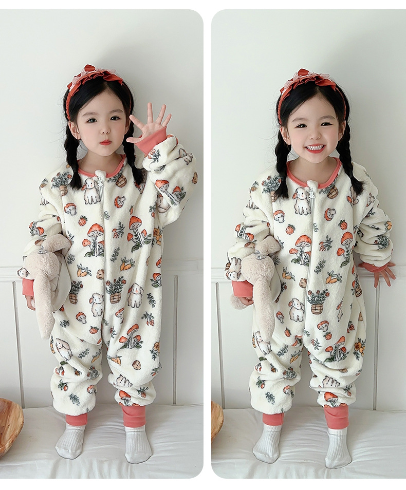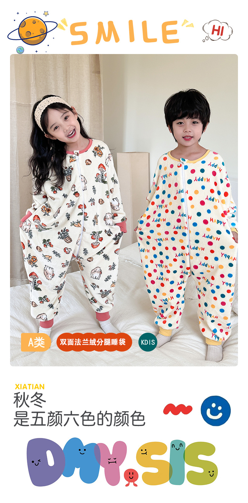 25 겨울용 한국 아동용 플란넬 두꺼운 분리형 다리 수면조끼 아기 보온 잠옷 일체형 방한 이불 홈웨어