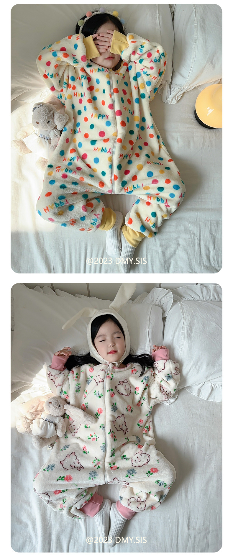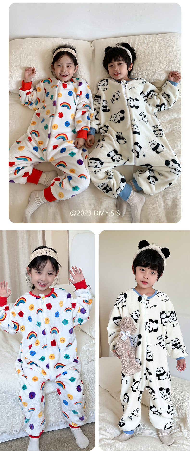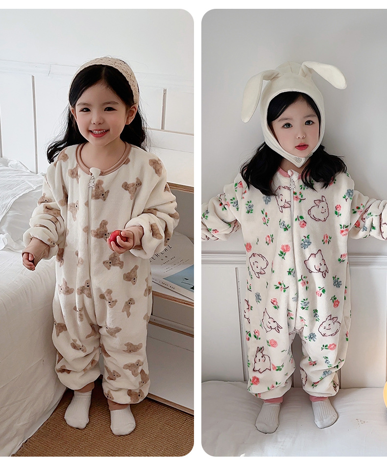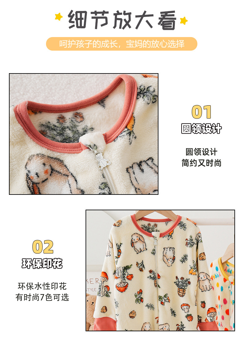 25 겨울용 한국 아동용 플란넬 두꺼운 분리형 다리 수면조끼 아기 보온 잠옷 일체형 방한 이불 홈웨어