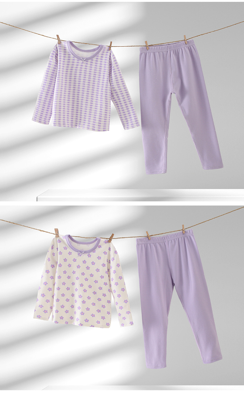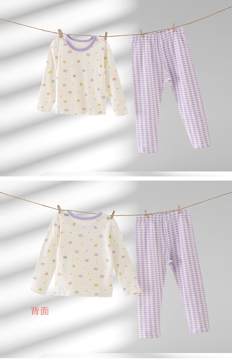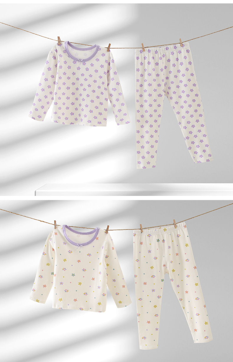 여아 가을 옷과 바지 면 클래스 어린이 뼈없는 가정 옷 긴 소매 라운드 넥 잠옷 코튼 클래스 A 솔질 바지스토어 가기