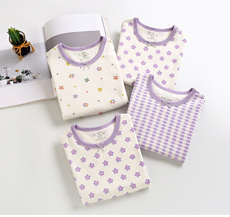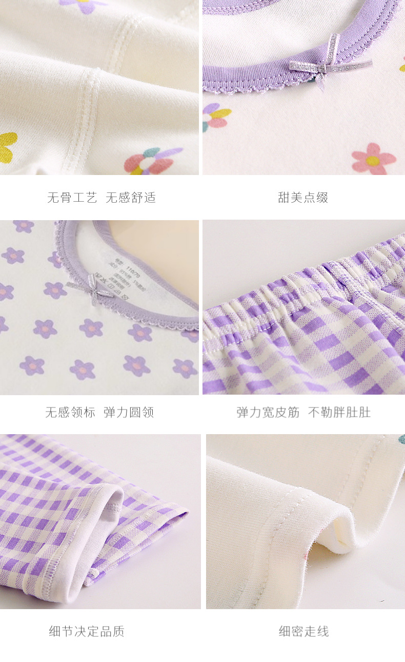 여아 가을 옷과 바지 면 클래스 어린이 뼈없는 가정 옷 긴 소매 라운드 넥 잠옷 코튼 클래스 A 솔질 바지