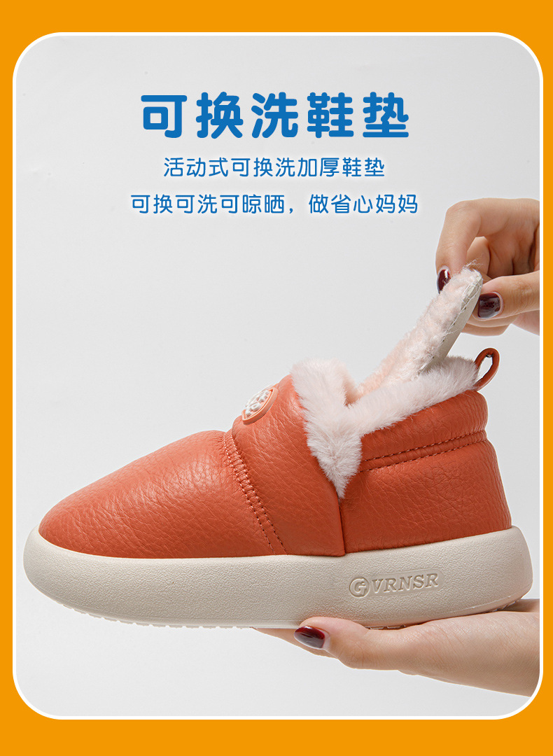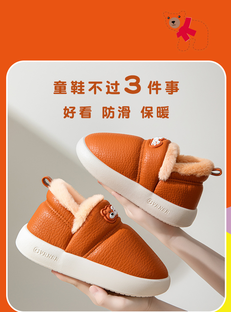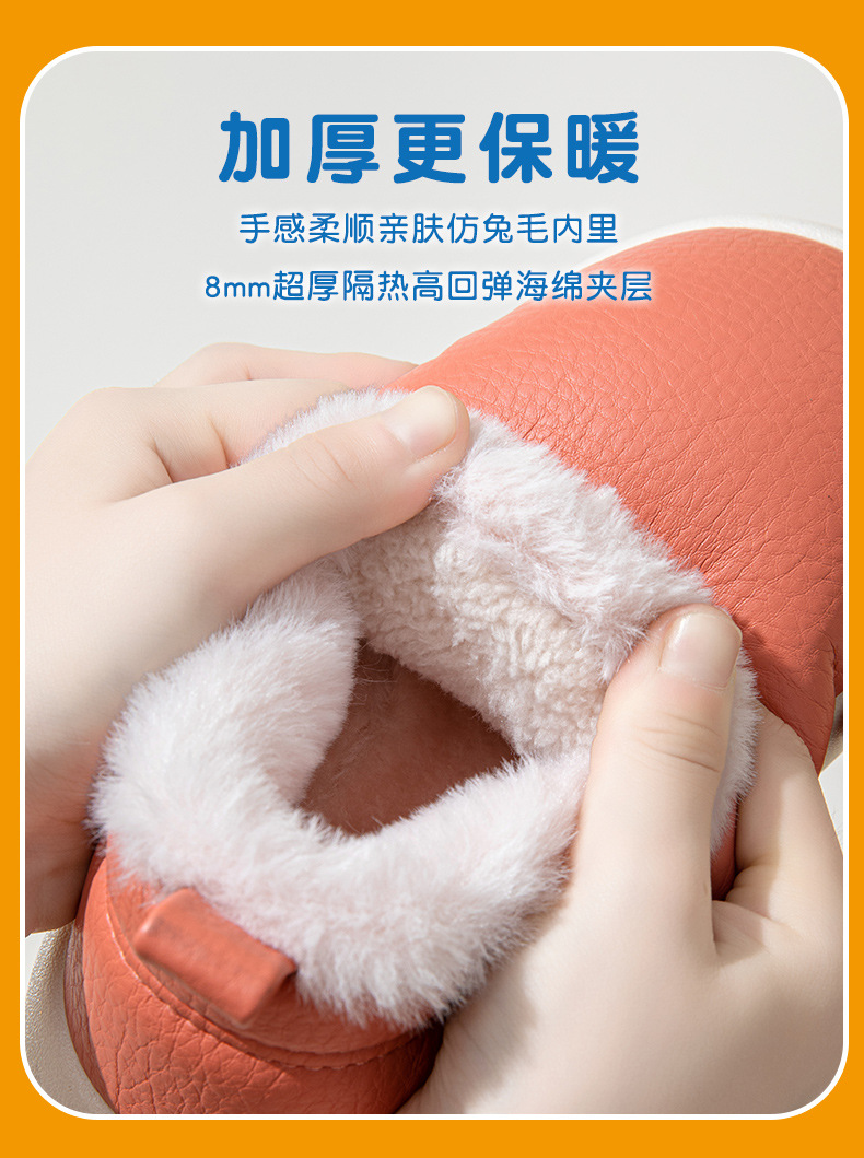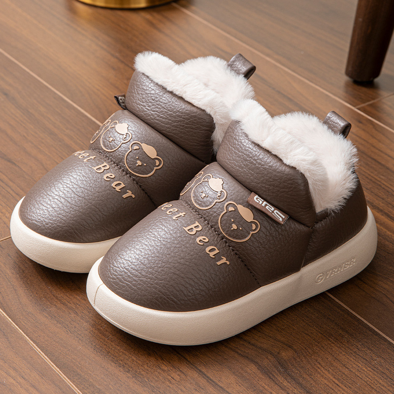 고귀한 상어 가을과 겨울 새로운 소년 소녀 신발 가방 발 뒤꿈치 두꺼운 미끄럼 방지 PU 가죽 면화 슬리퍼 미끄럼 방지 면화 신발스토어 가기