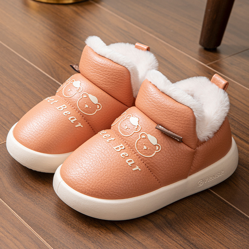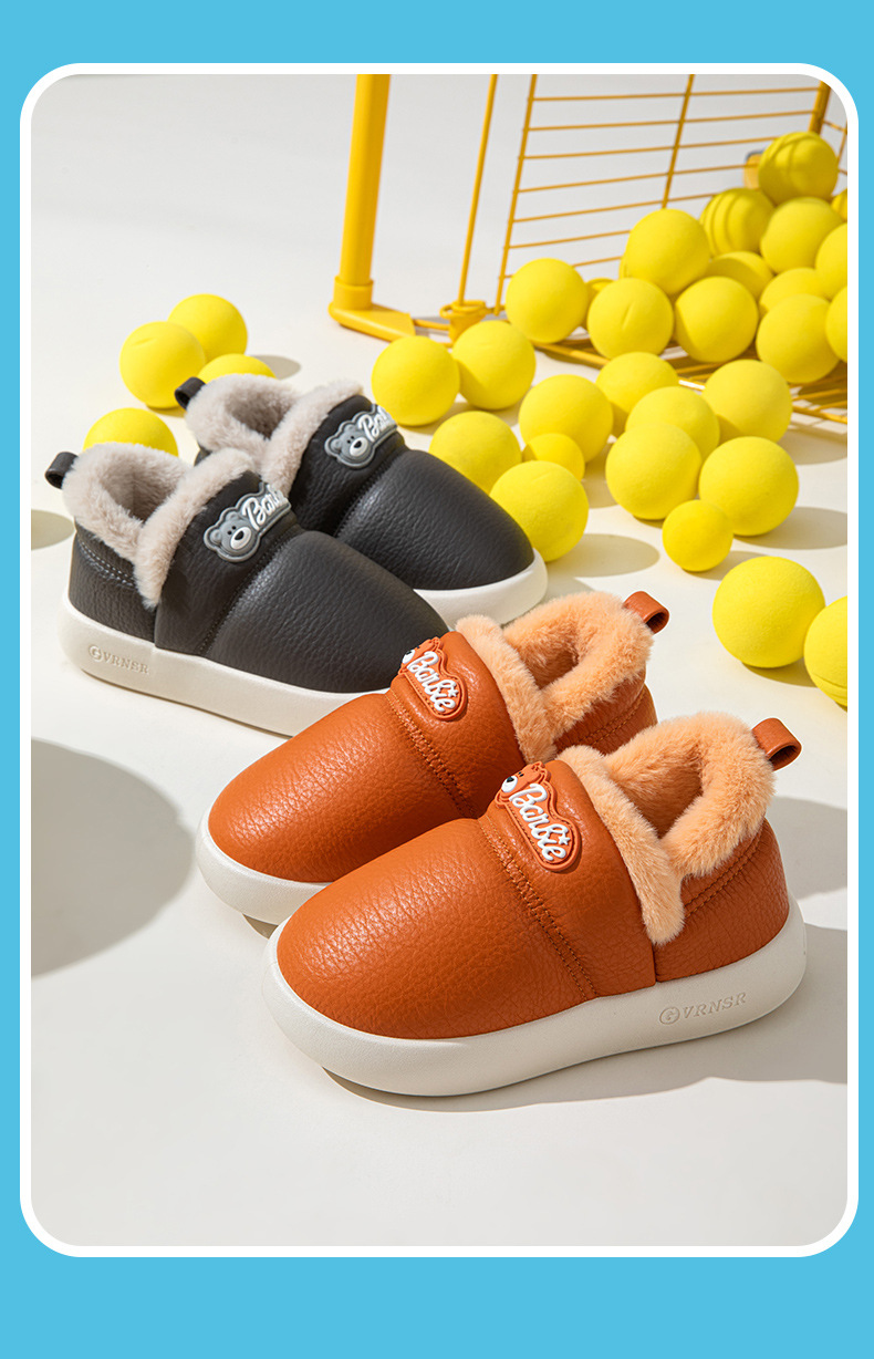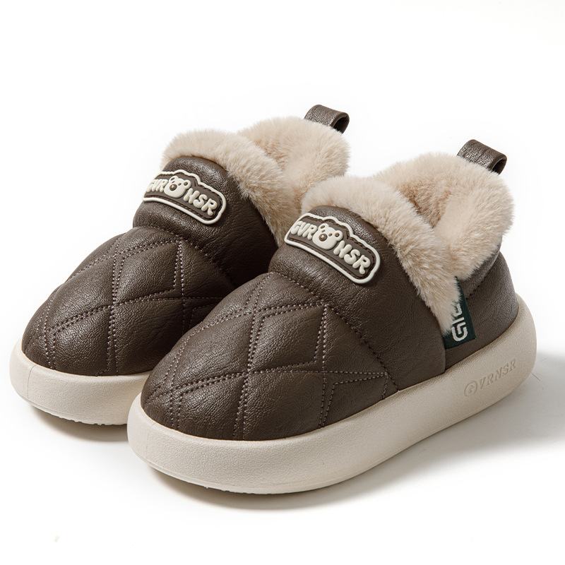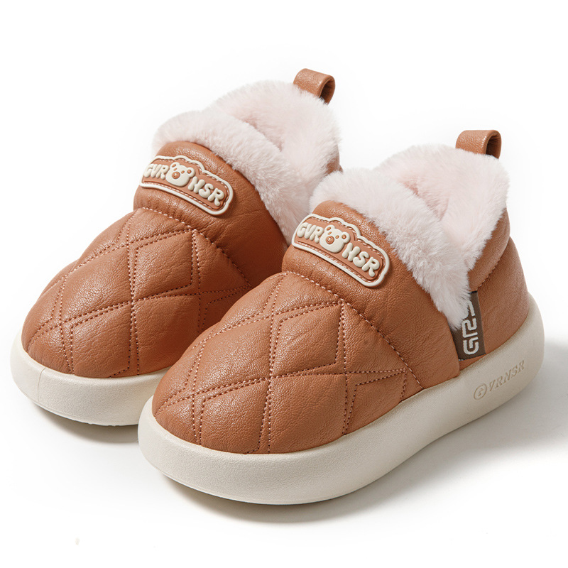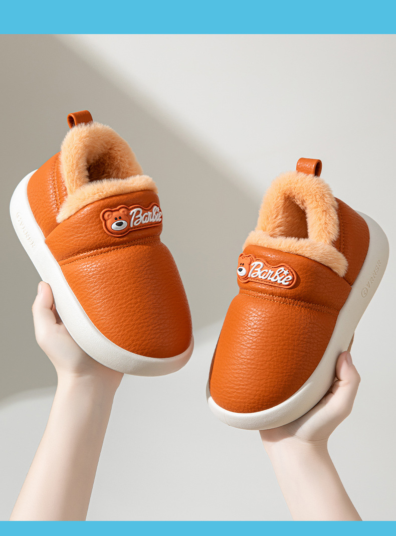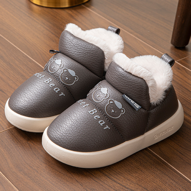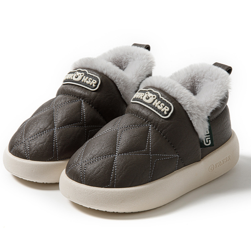 고귀한 상어 가을과 겨울 새로운 소년 소녀 신발 가방 발 뒤꿈치 두꺼운 미끄럼 방지 PU 가죽 면화 슬리퍼 미끄럼 방지 면화 신발