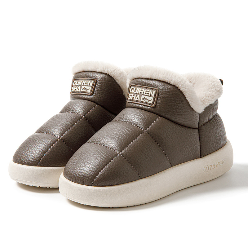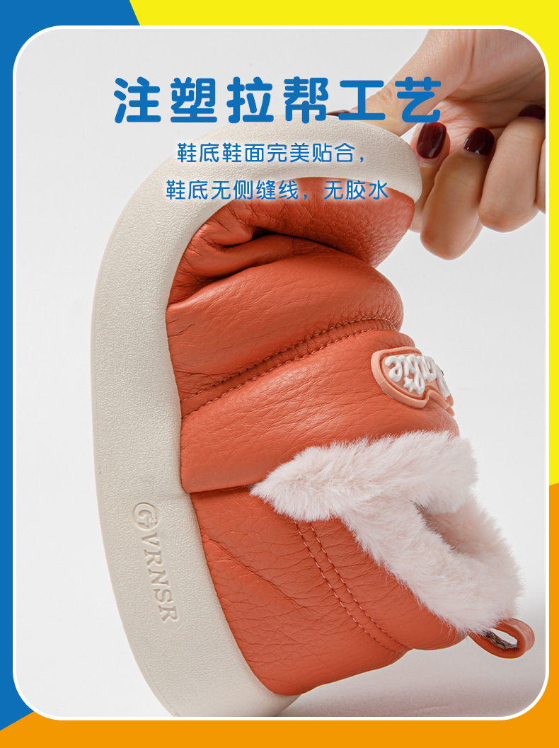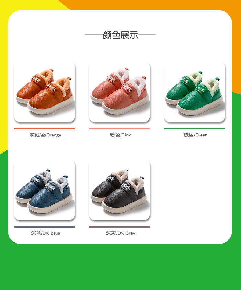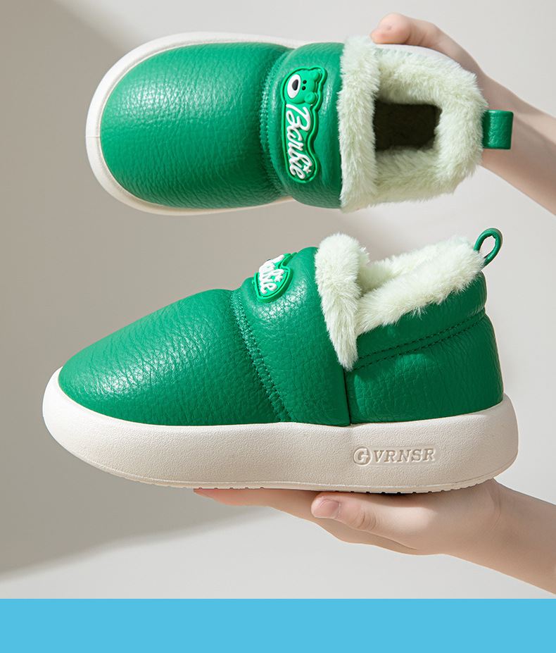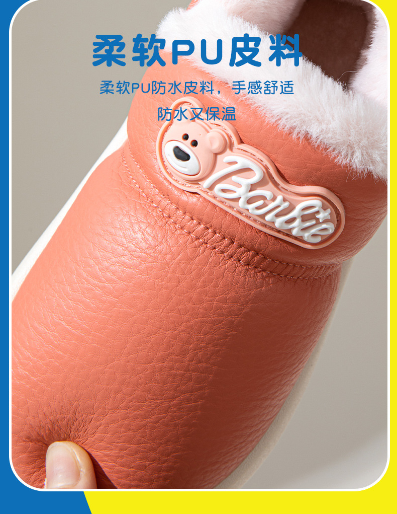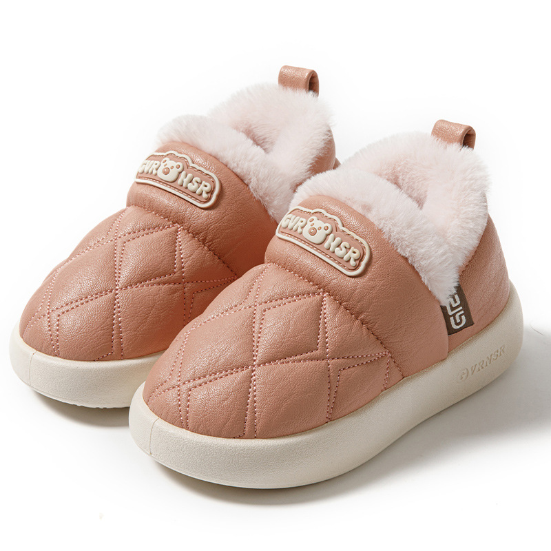 고귀한 상어 가을과 겨울 새로운 소년 소녀 신발 가방 발 뒤꿈치 두꺼운 미끄럼 방지 PU 가죽 면화 슬리퍼 미끄럼 방지 면화 신발