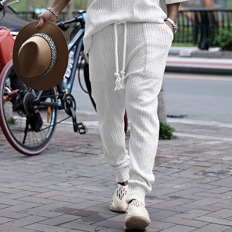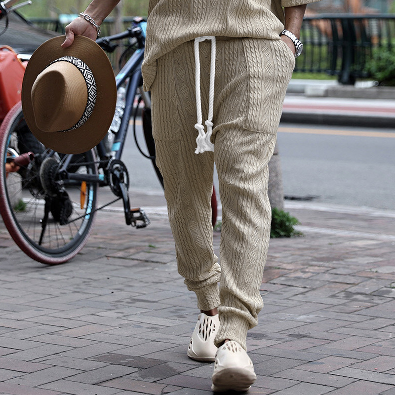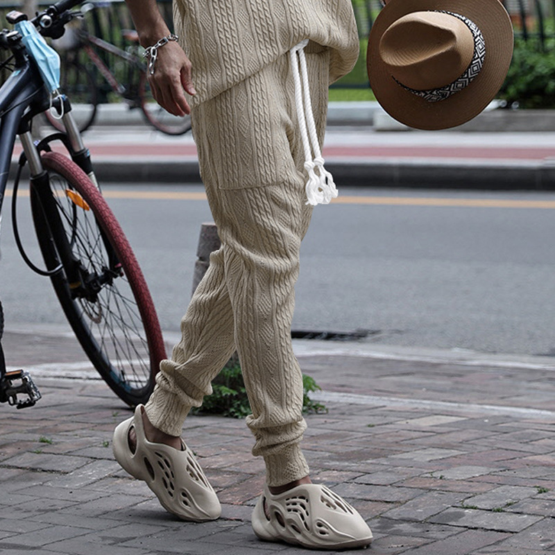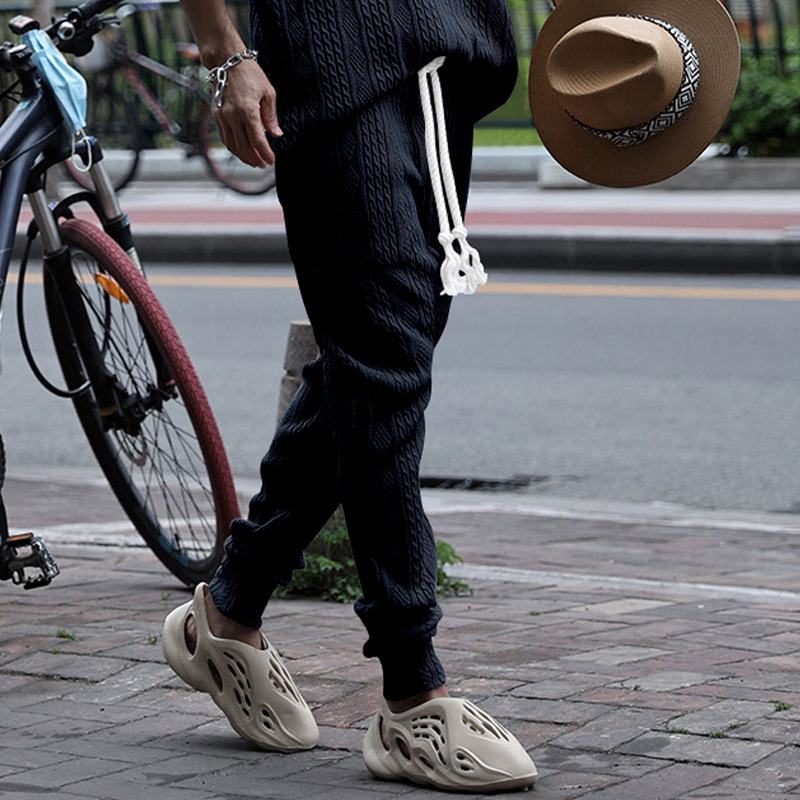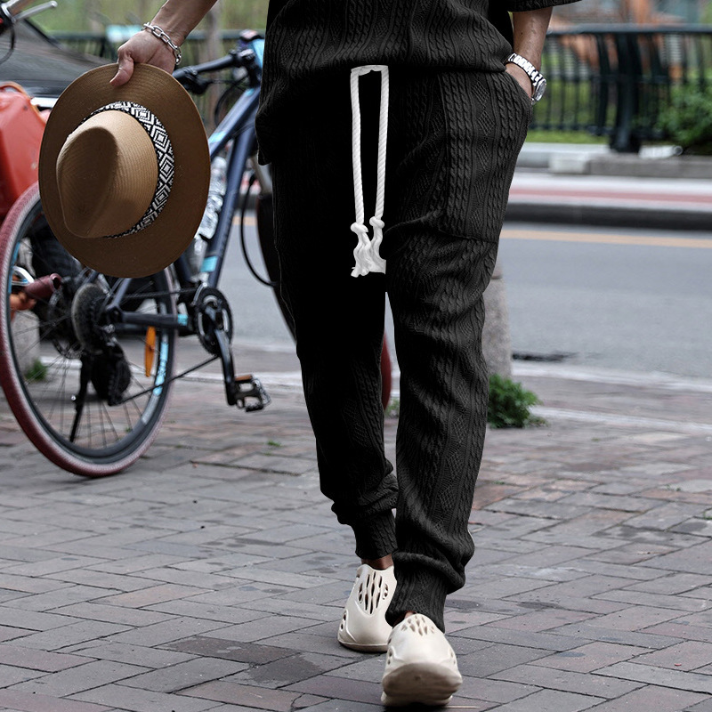 아마존 2023 가을과 겨울 새로운 자카드 바지 크로스 보더 개인 힙합 플러스 사이즈 드로스트링 남성 캐주얼 바지