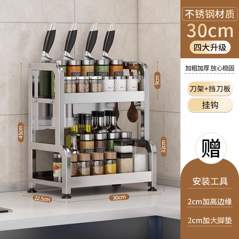 • [스테인레스 스틸 더블 레이어 30cm] 나이프 홀더 + 스틱 플레이트 홀더 + 후크 * 6