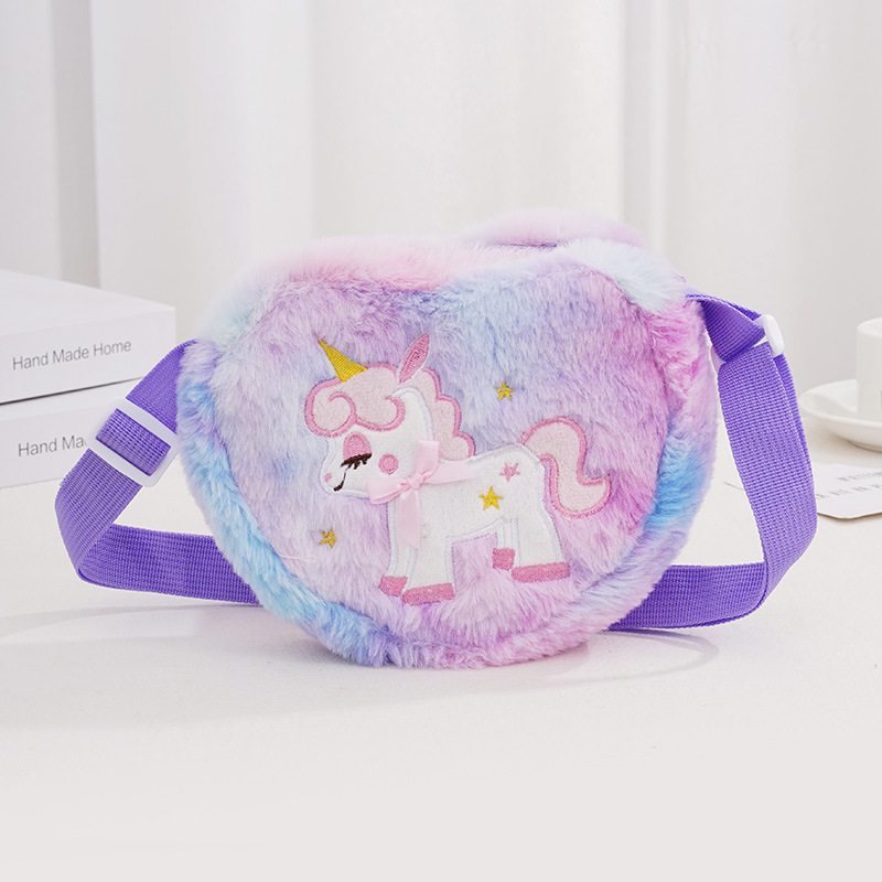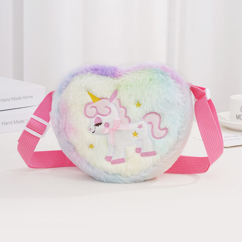 크로스 보더 플러시 숄더백 어린이 귀여운 사랑 크로스 바디 만화 유니콘 메이크업 가방 여성의 창조적 인 휴대 전화 보관 가방스토어 가기