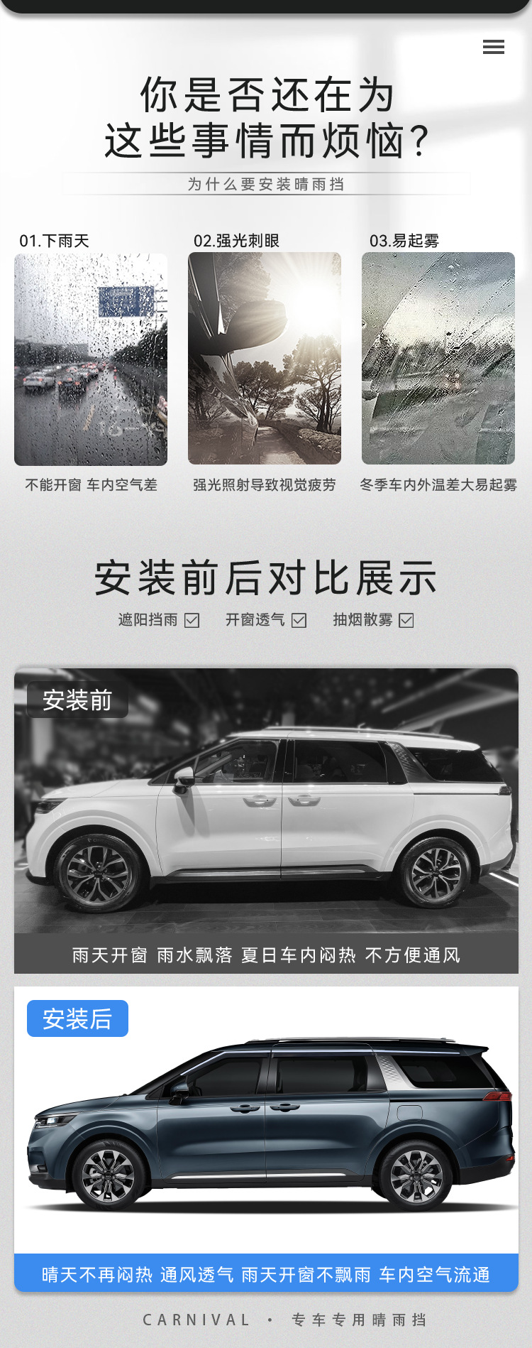 Texinrui는 기아 Jiahua 카니발 레인 쉴드 자동차 창 비 눈썹 레인 쉴드 자동차 외장 액세서리에 적합합니다스토어 가기