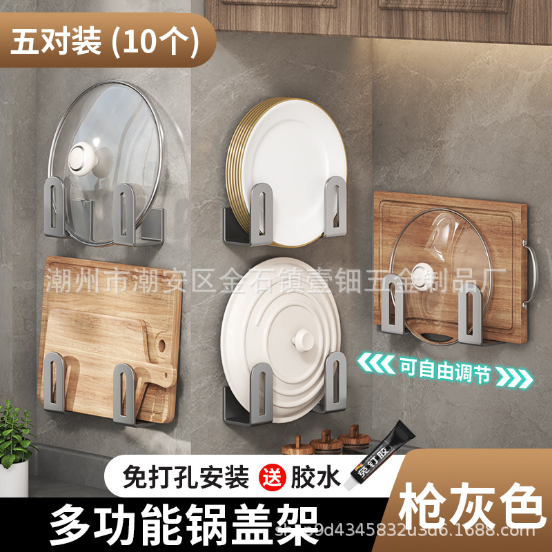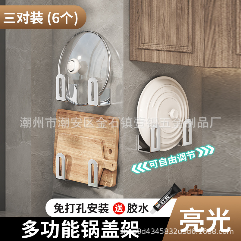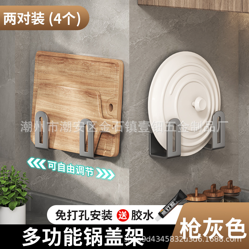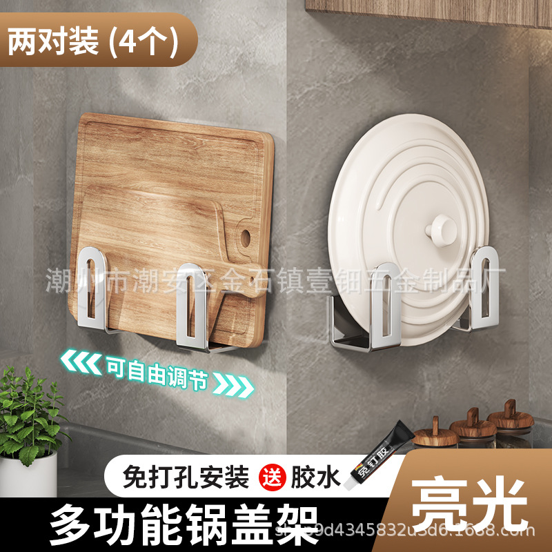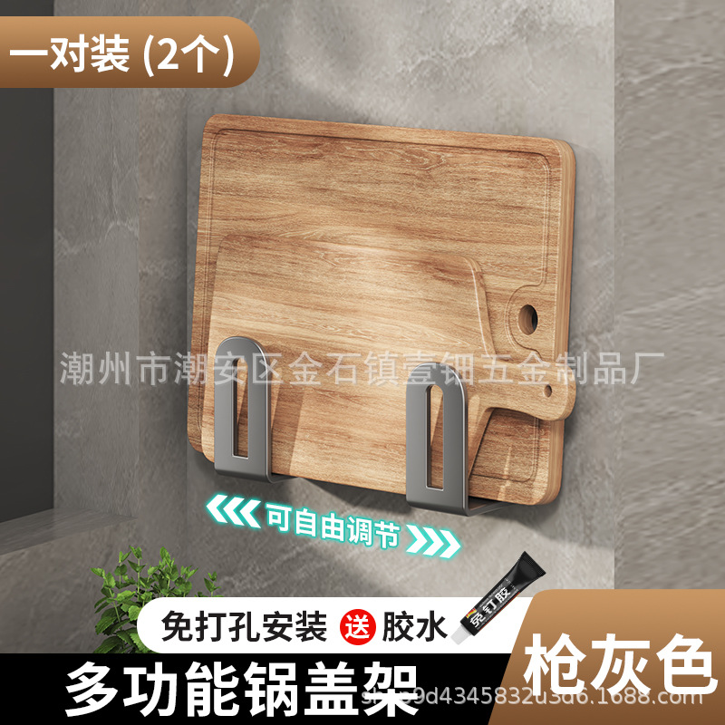 펀치없는 냄비 뚜껑 랙 주방 벽걸이 냄비 뚜껑 보관 랙 스테인레스 스틸 냄비 뚜껑 도마 도마 후크 랙