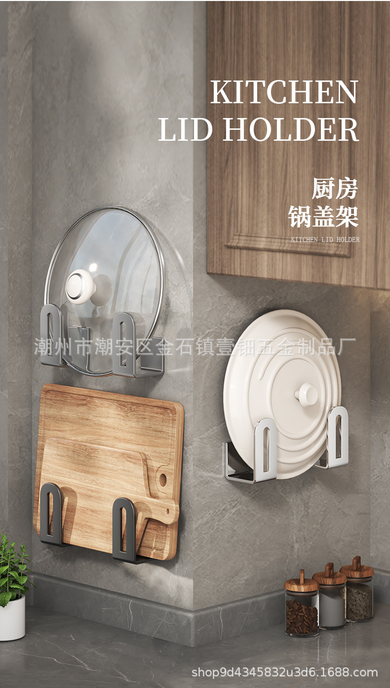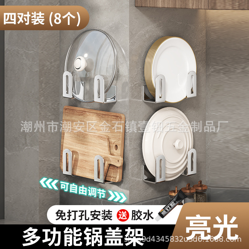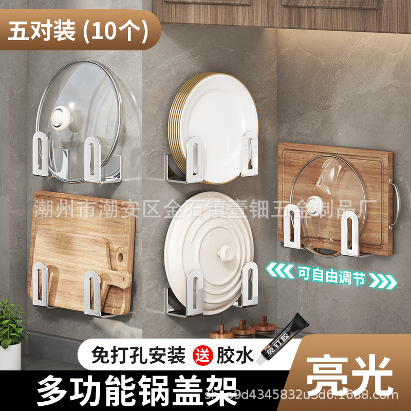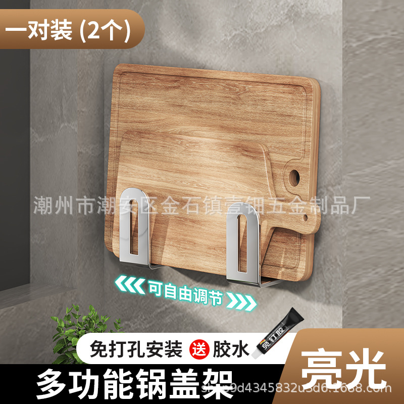 펀치없는 냄비 뚜껑 랙 주방 벽걸이 냄비 뚜껑 보관 랙 스테인레스 스틸 냄비 뚜껑 도마 도마 후크 랙스토어 가기
