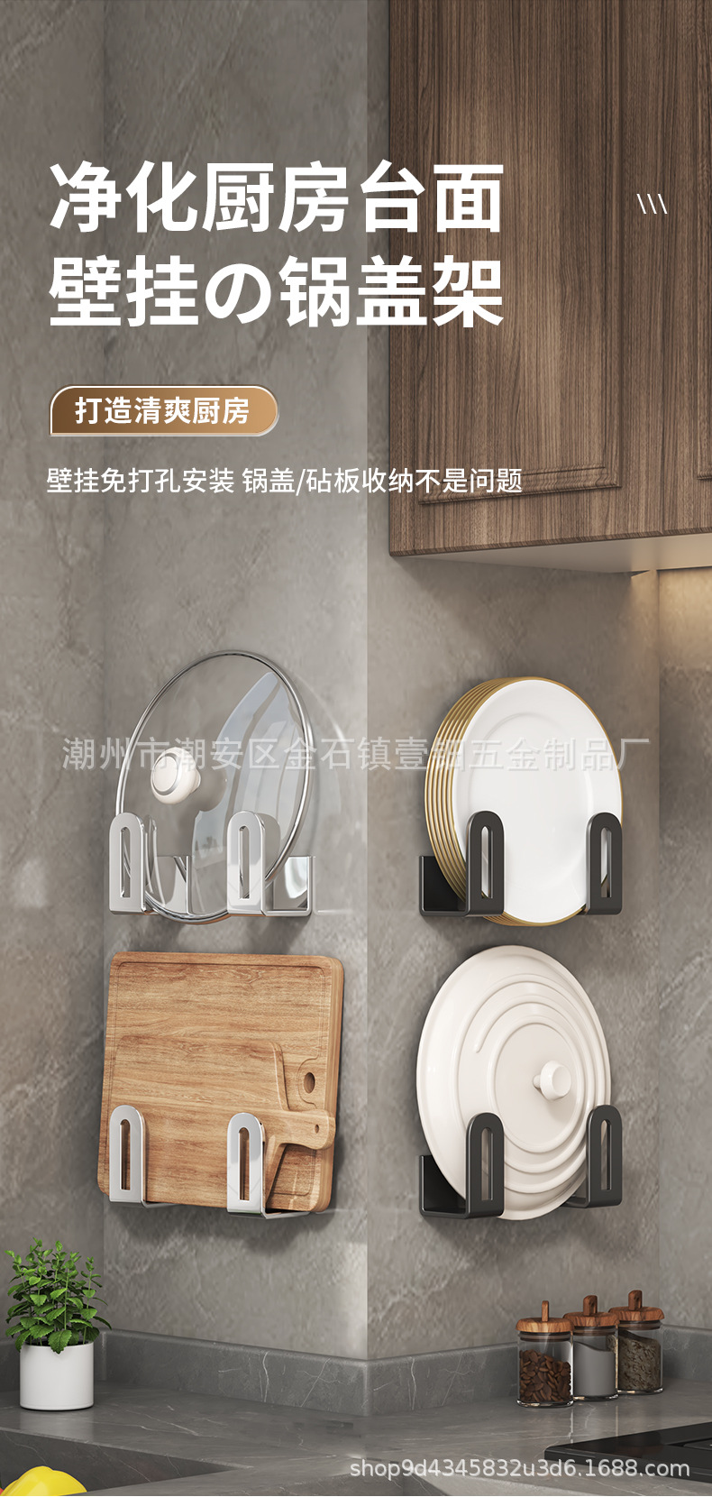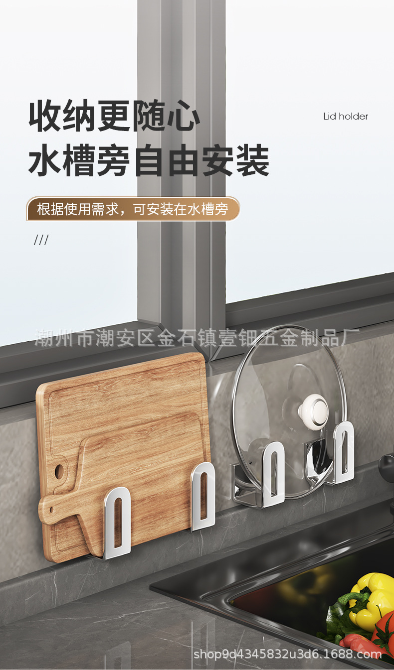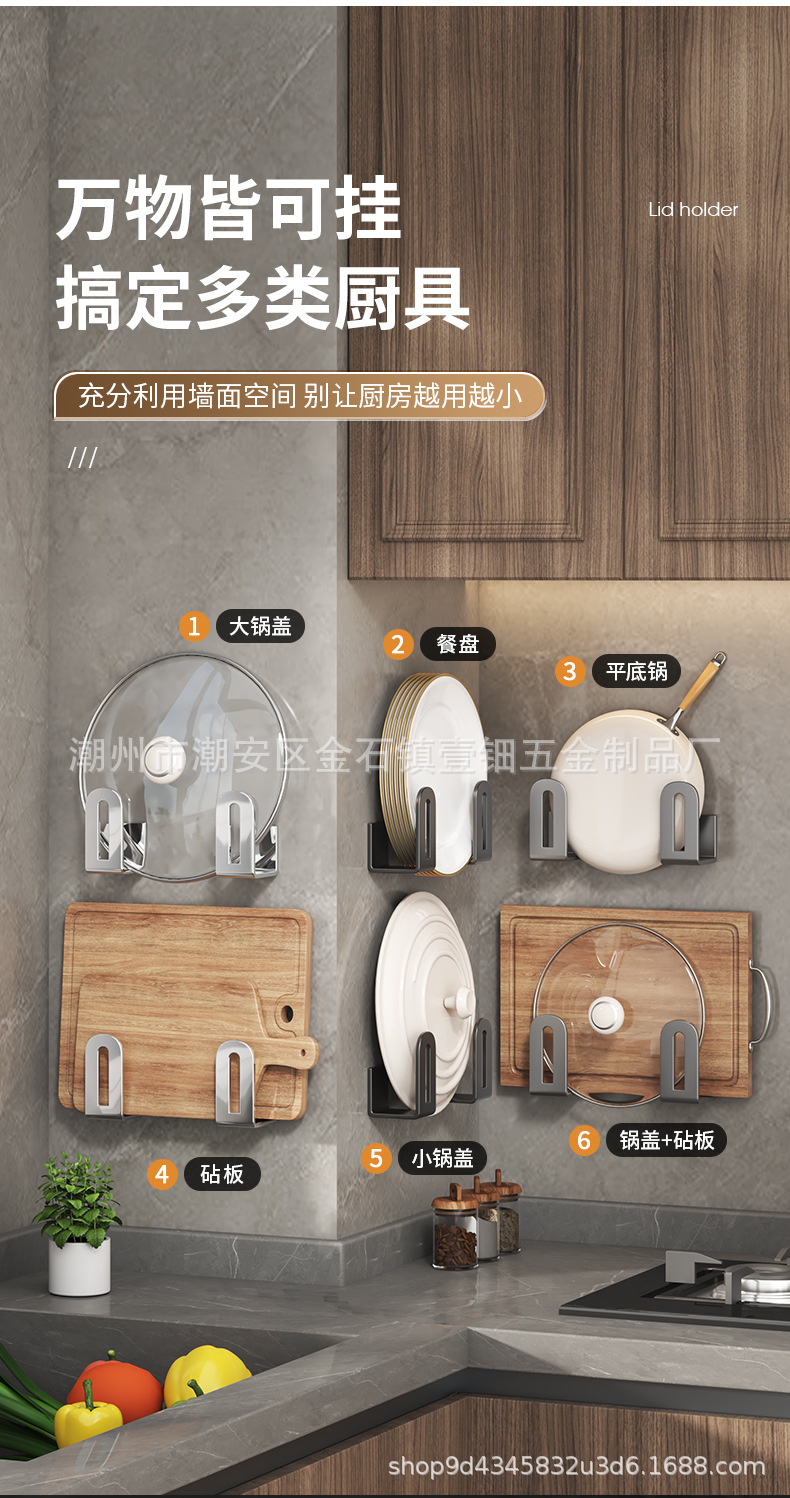 펀치없는 냄비 뚜껑 랙 주방 벽걸이 냄비 뚜껑 보관 랙 스테인레스 스틸 냄비 뚜껑 도마 도마 후크 랙스토어 가기