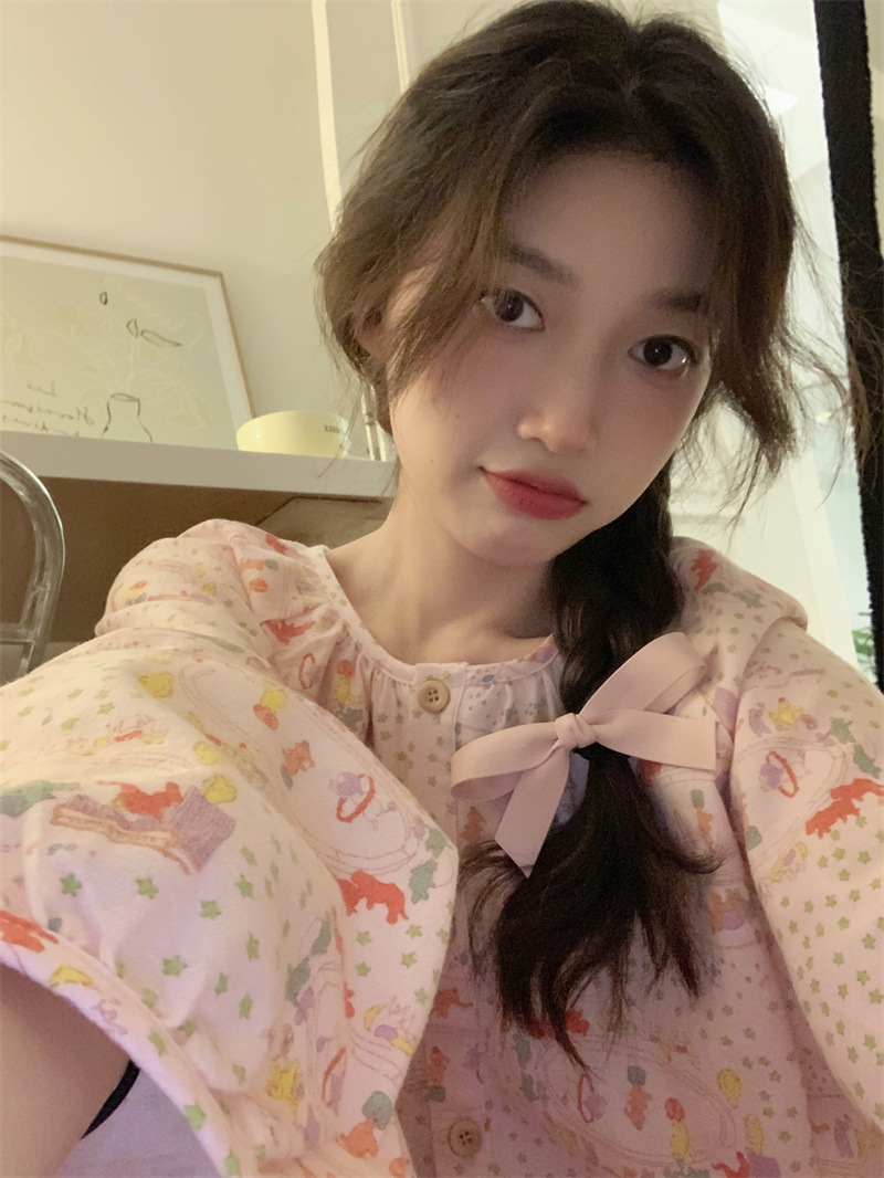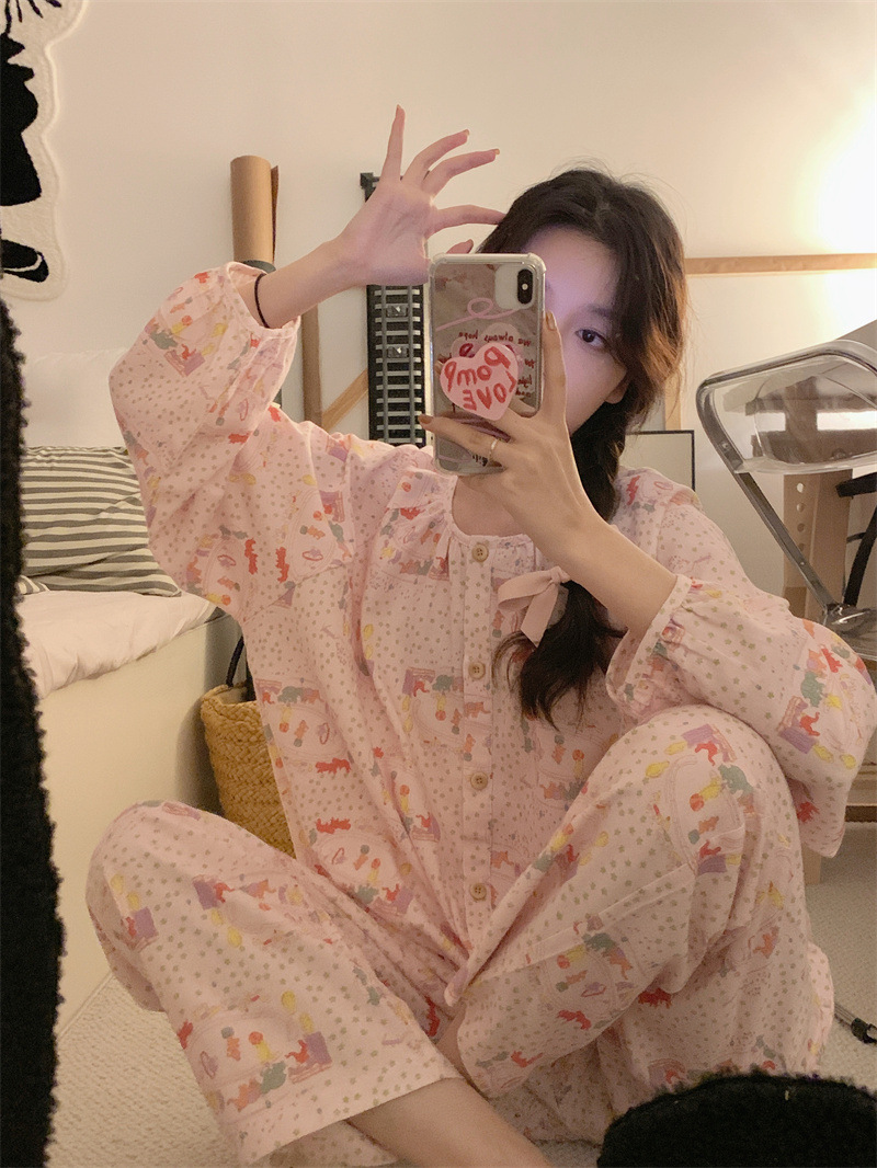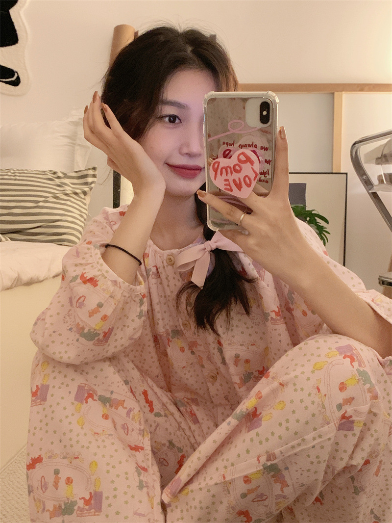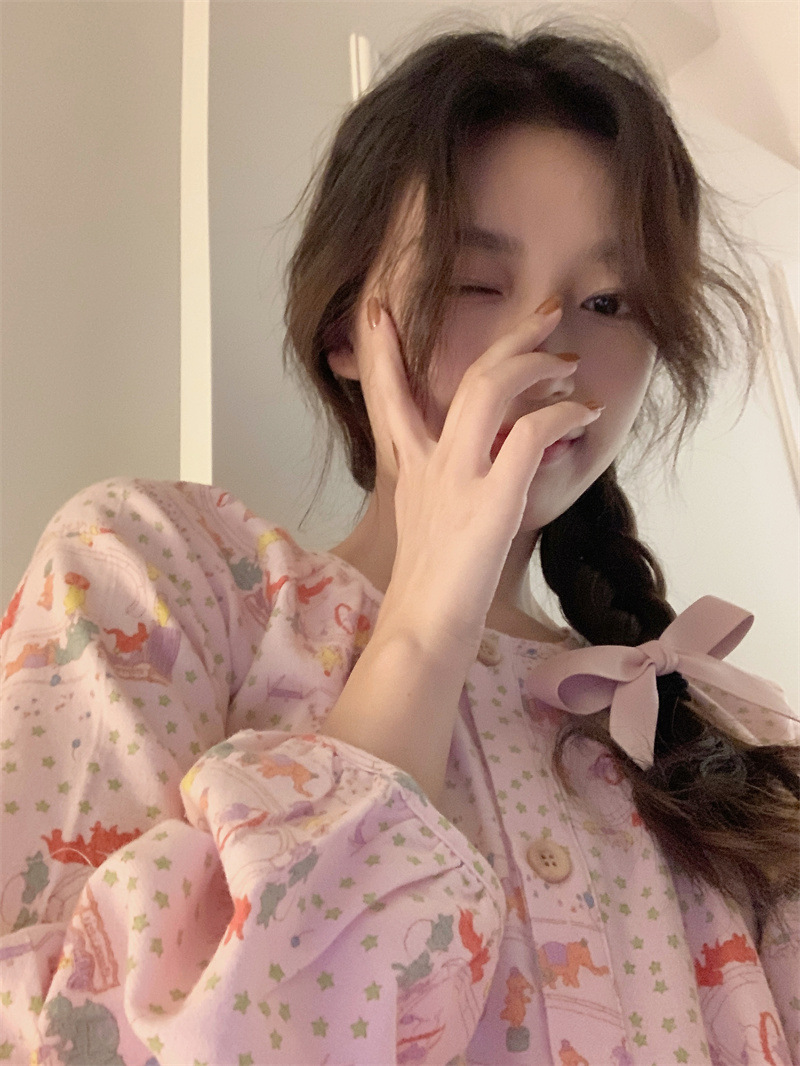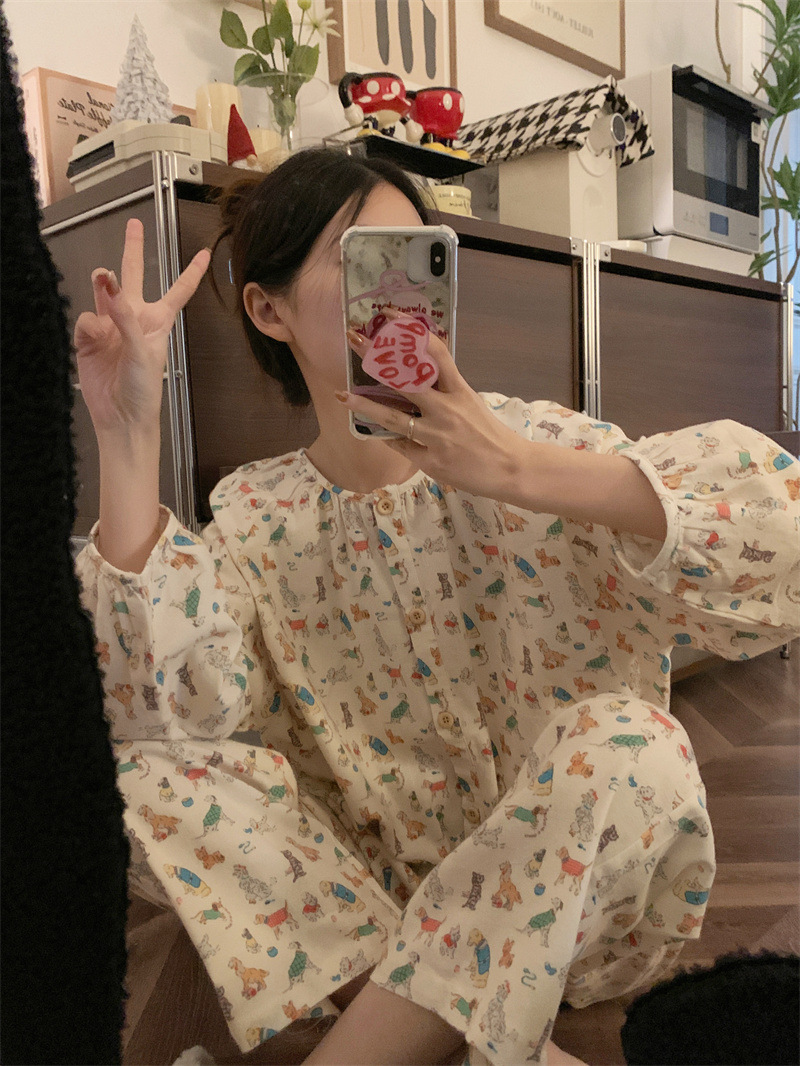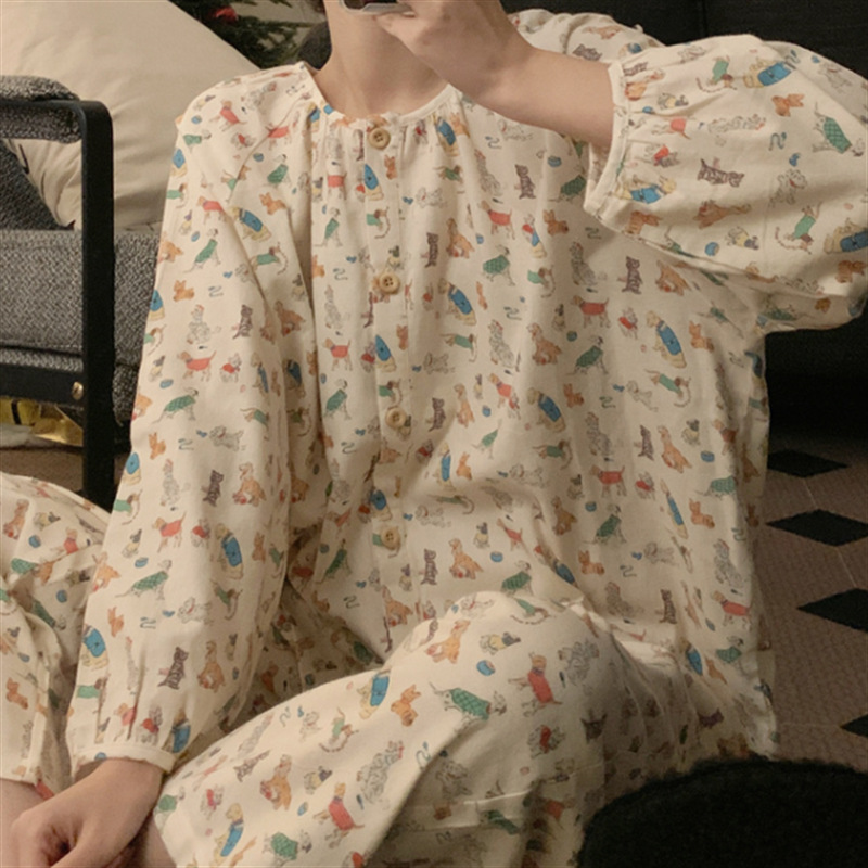 2023 가을 만화 동물 공원 귀여운 컬러 스크럽 가정 옷 잠옷 세트 잠옷 여자