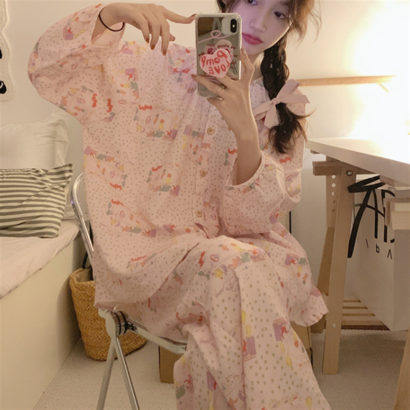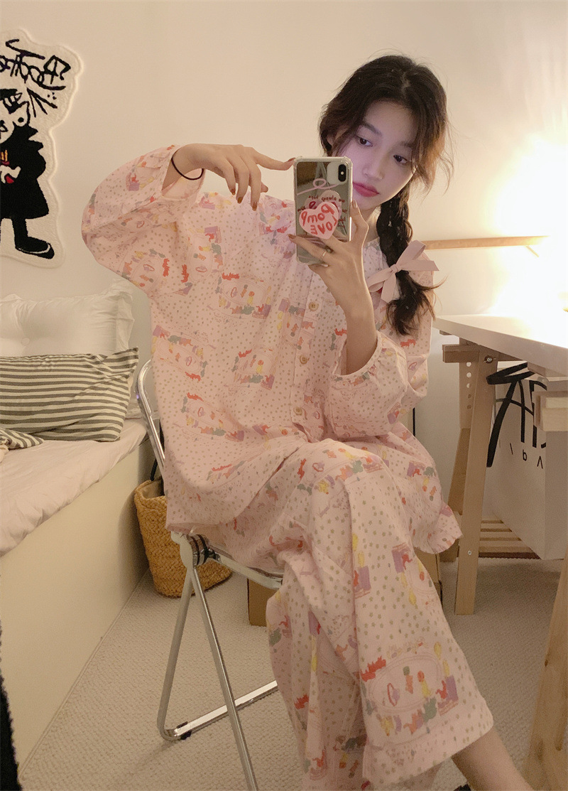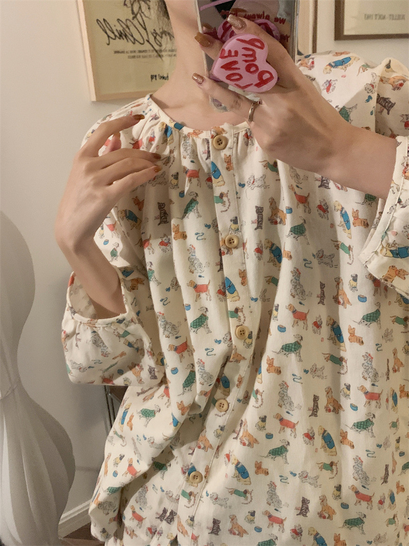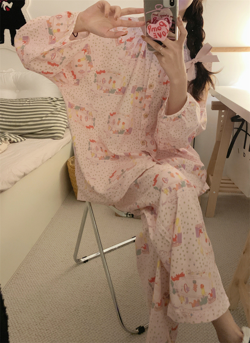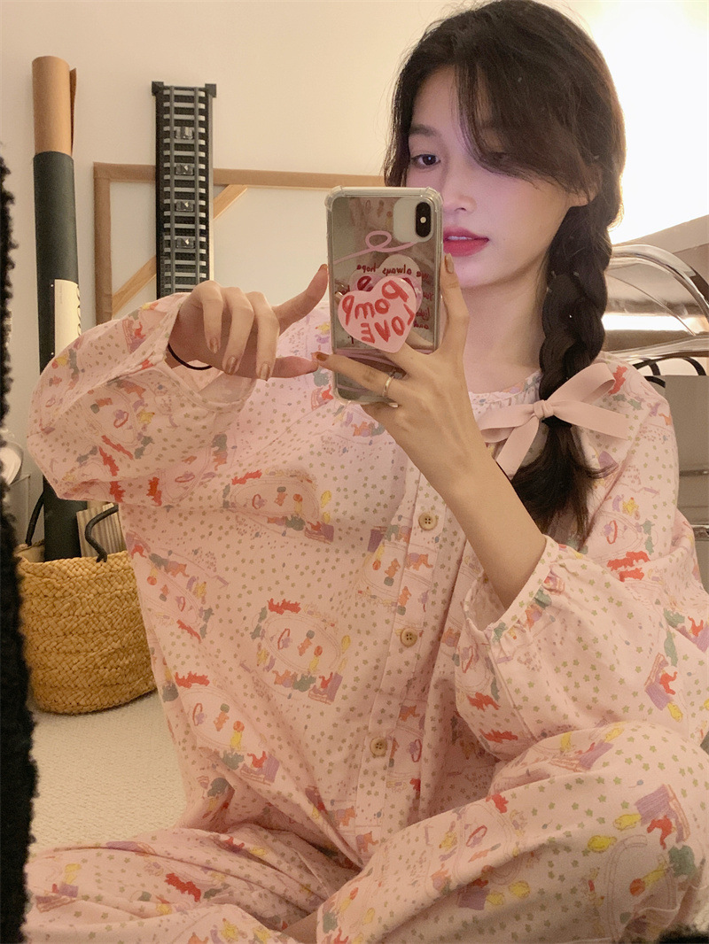 2023 가을 만화 동물 공원 귀여운 컬러 스크럽 가정 옷 잠옷 세트 잠옷 여자스토어 가기