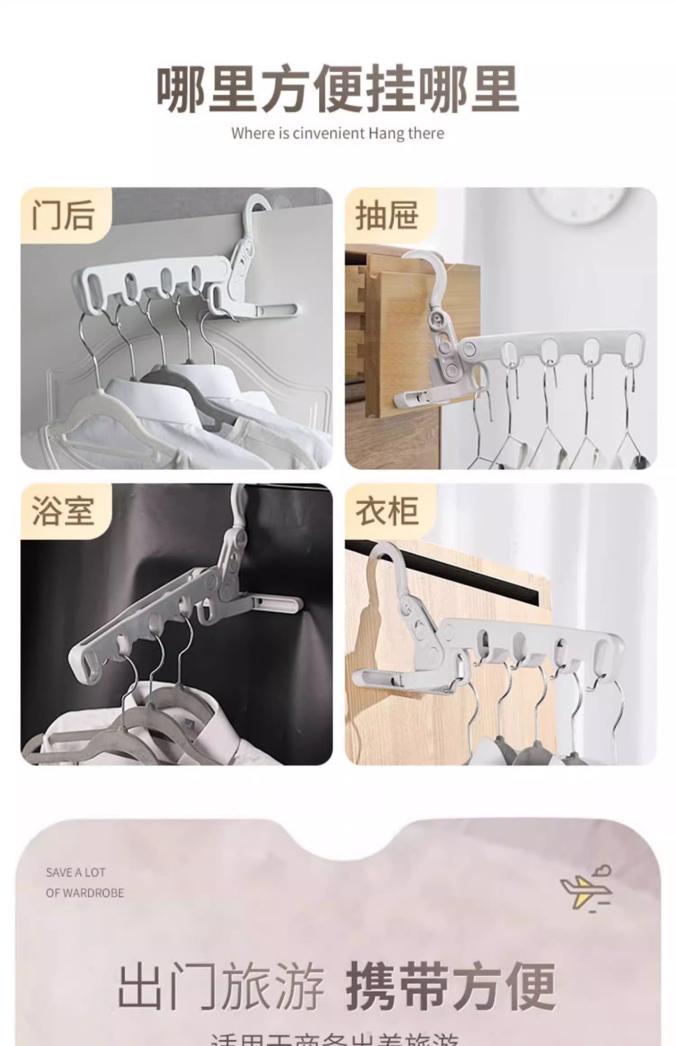 국경 간 라벨링 접이식 옷 건조대 휴대용 여행 호텔 건조대 출장 유물 다기능 5홀 옷걸이