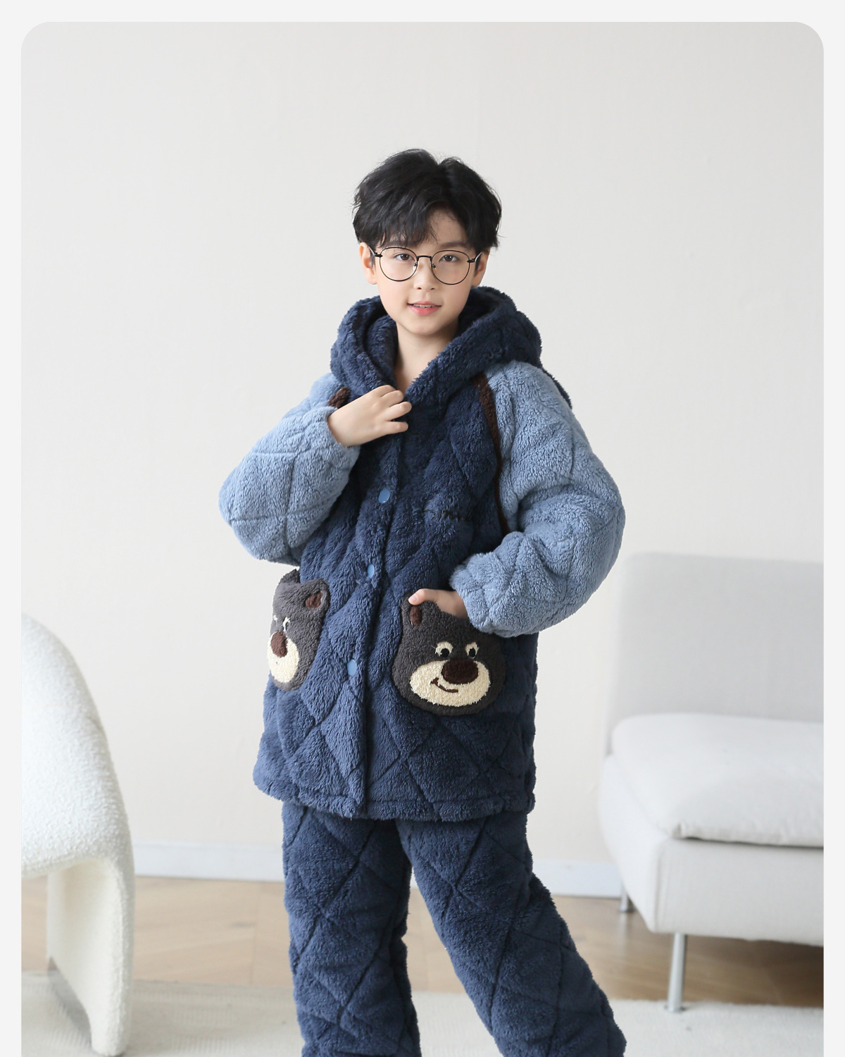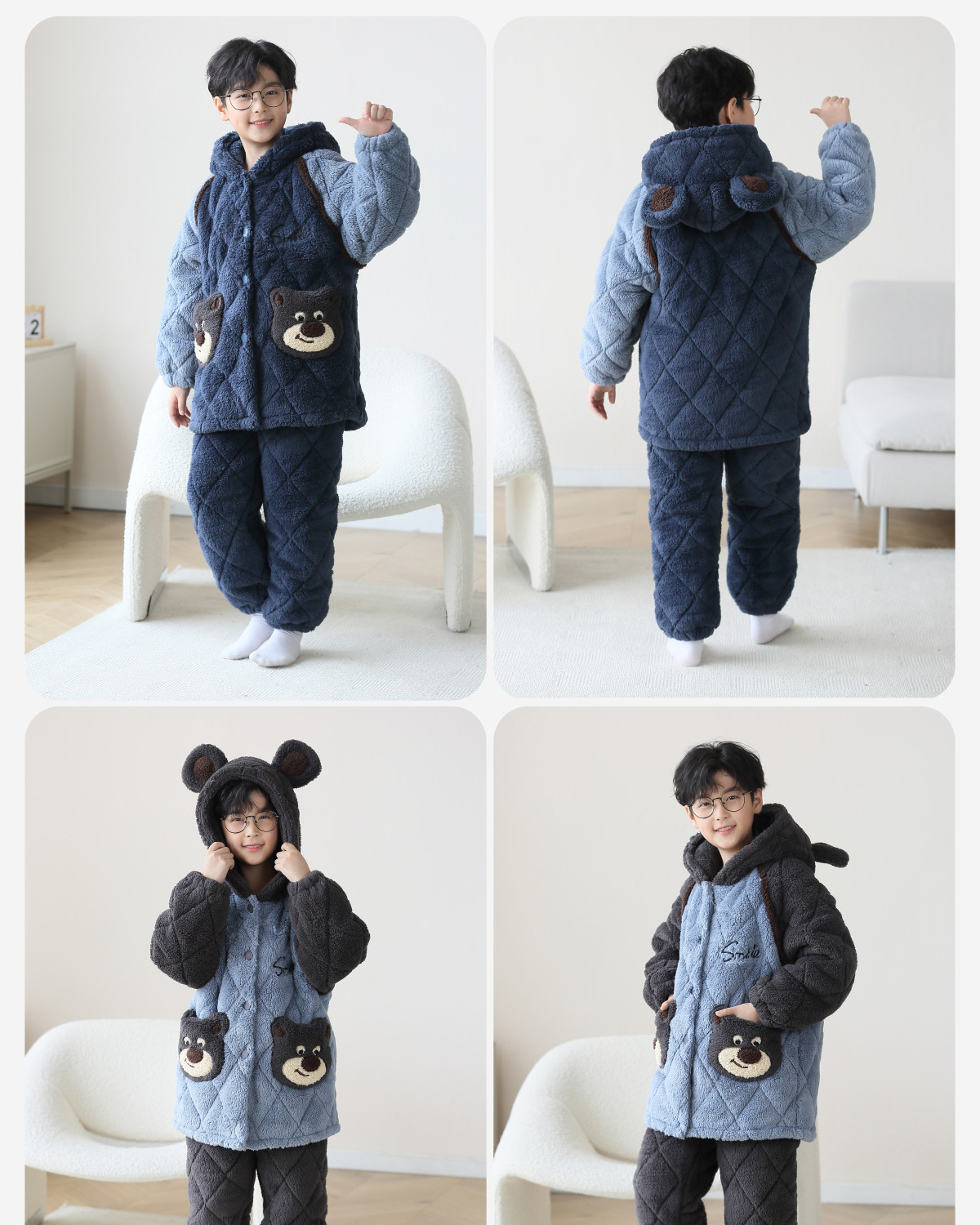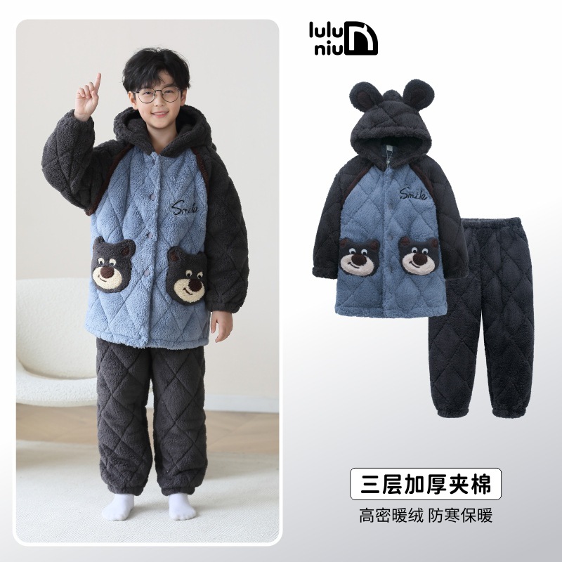 겨울 어린이 잠옷 남아 플란넬 패딩 코튼 중순 가을과 겨울 산호 벨벳 두꺼운 길이 소년 가정복