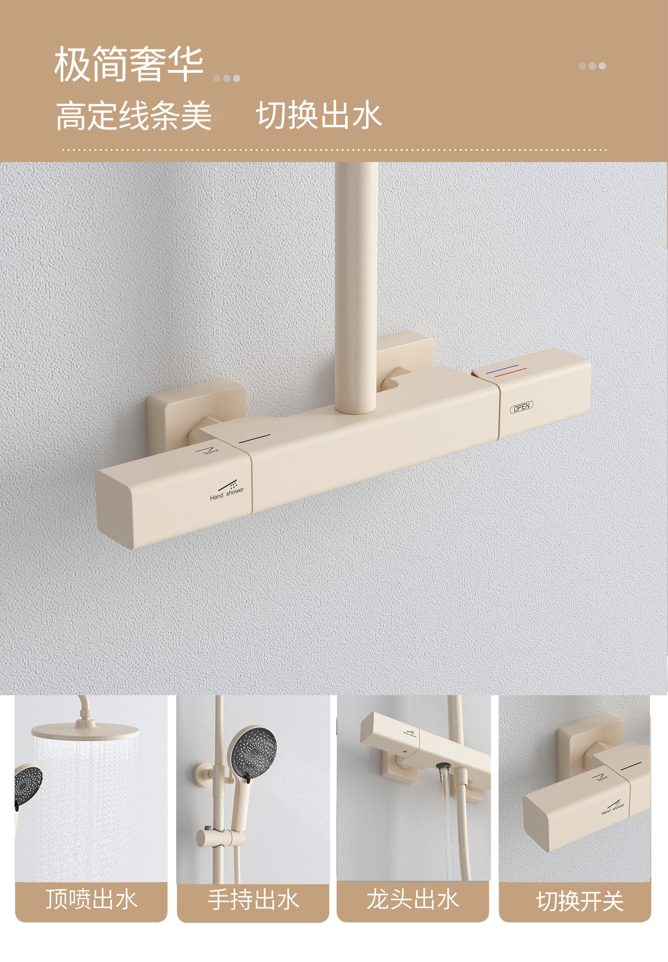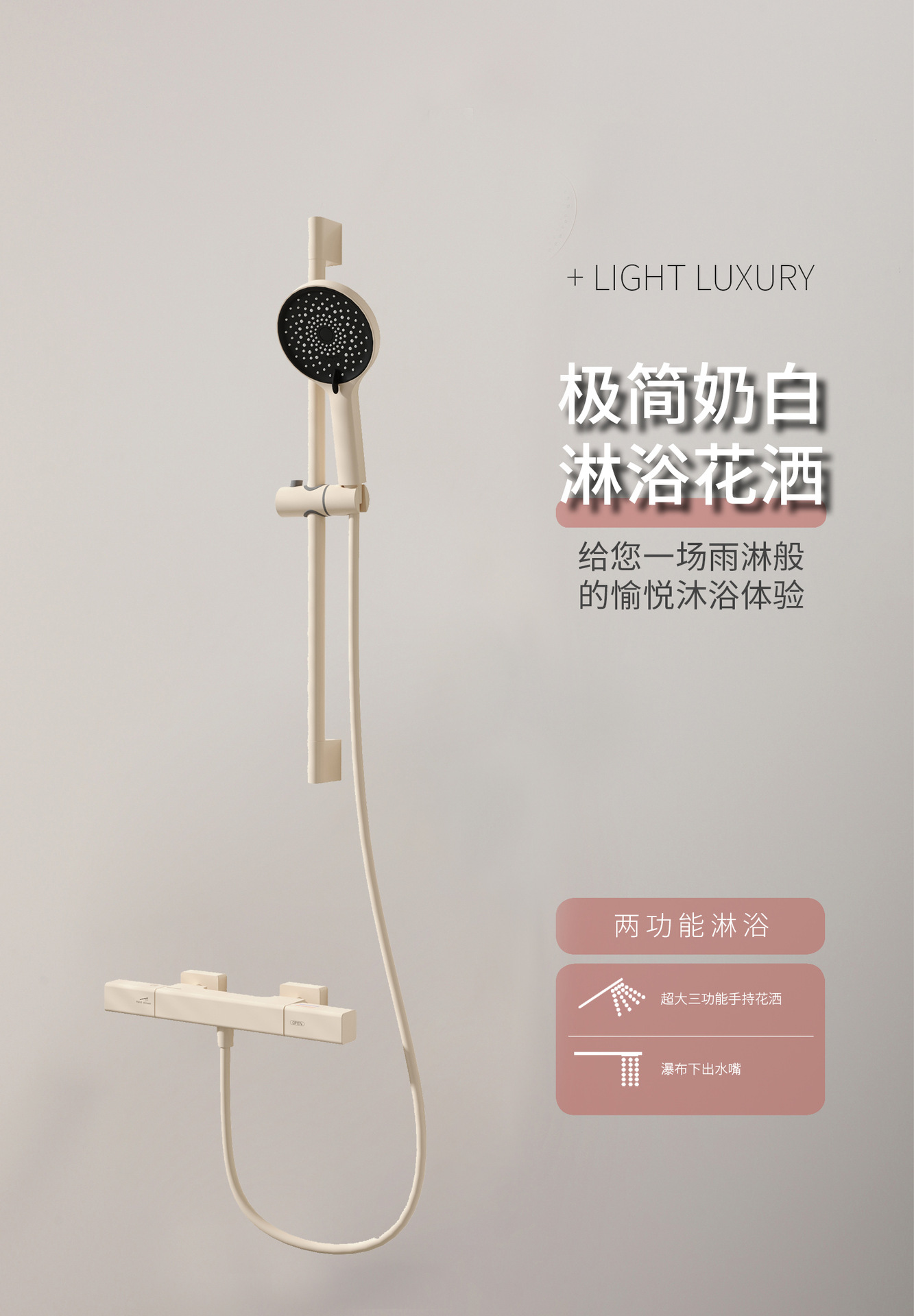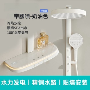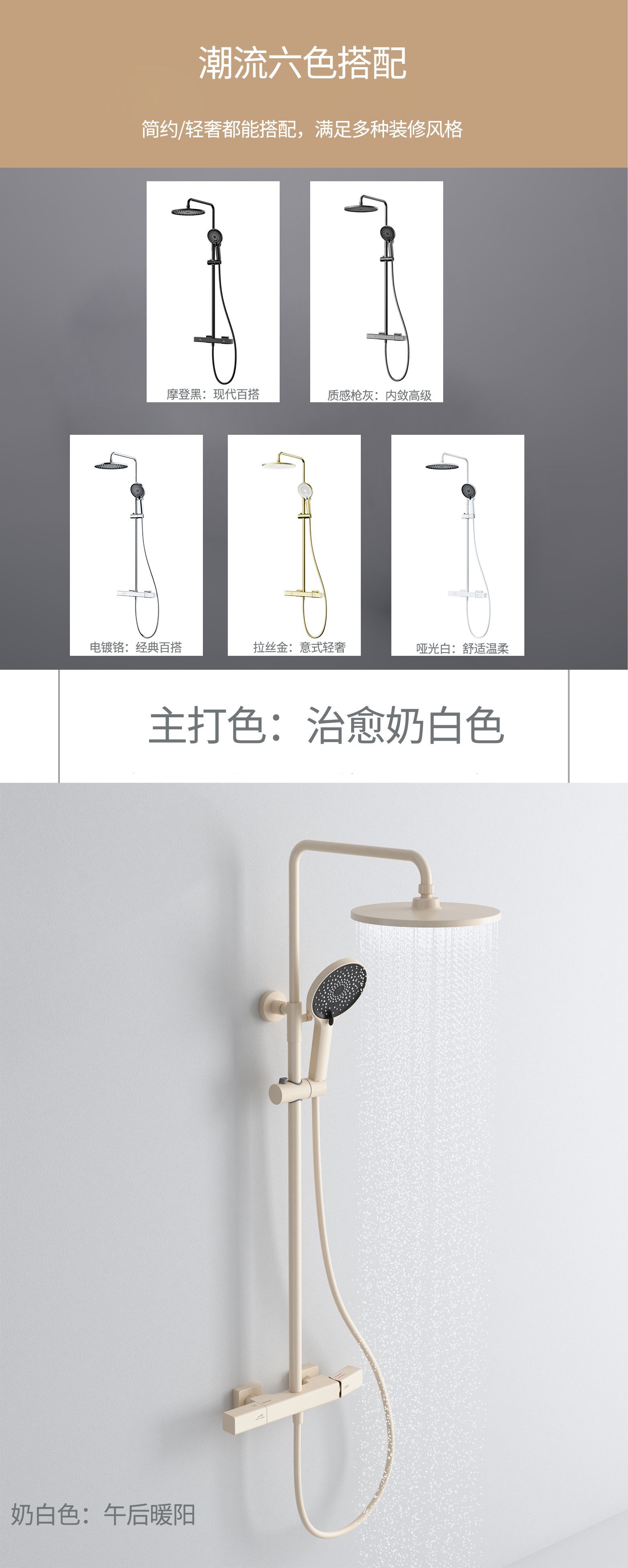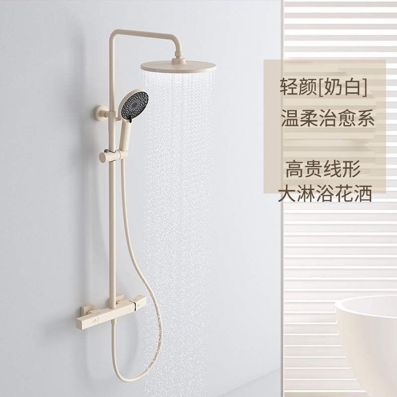 家用奶白色淋浴花洒套装恒温数显增压钢琴键卫浴沐浴花洒腰喷背喷