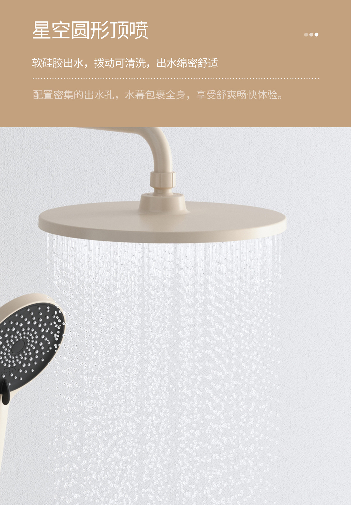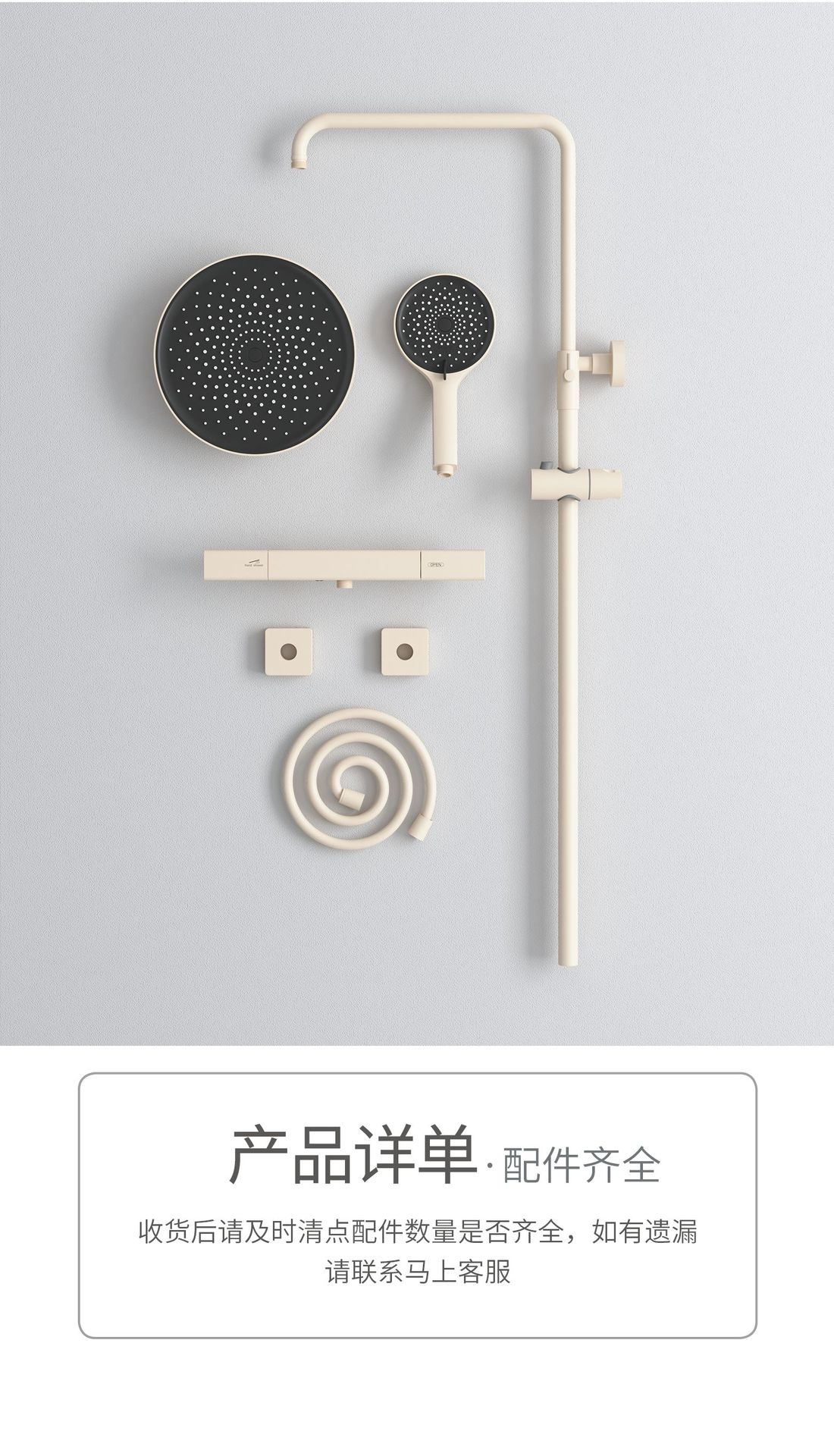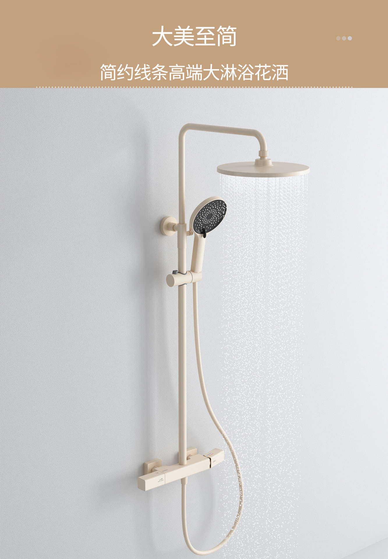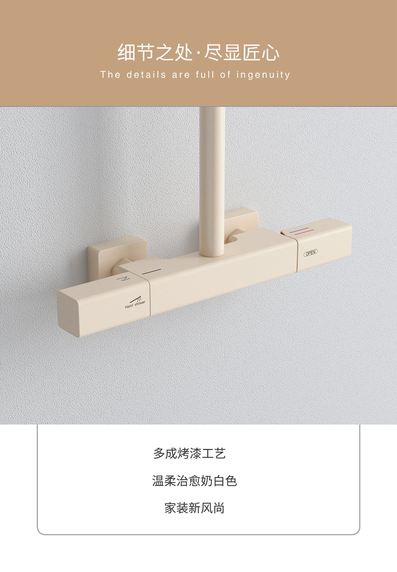 家用奶白色淋浴花洒套装恒温数显增压钢琴键卫浴沐浴花洒腰喷背喷