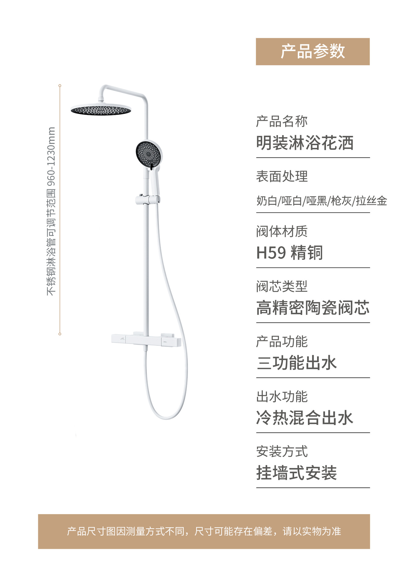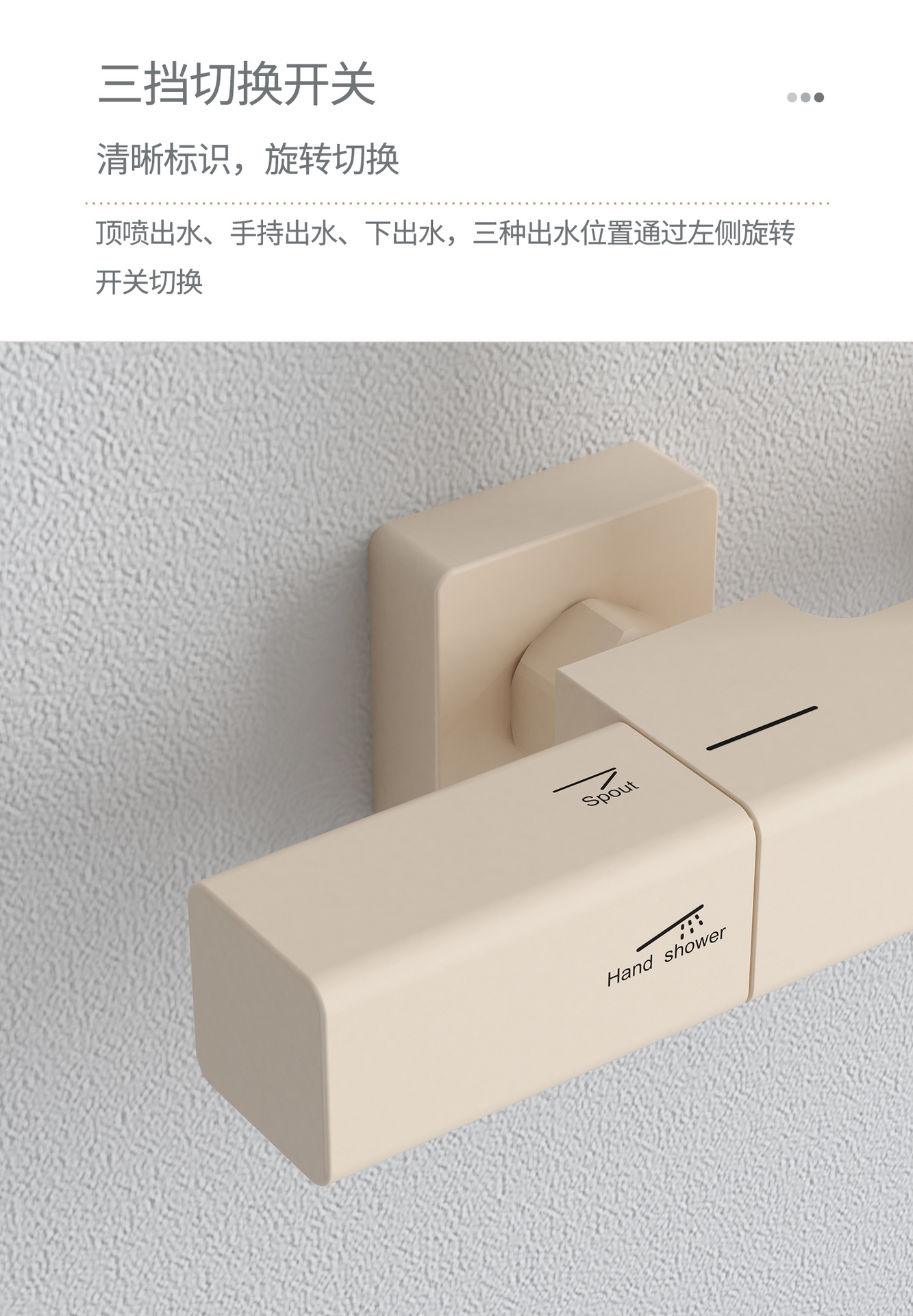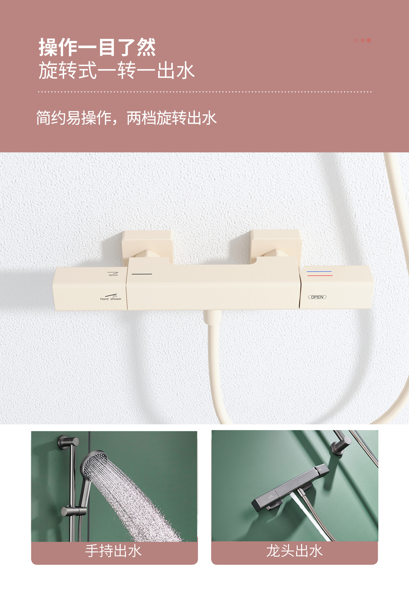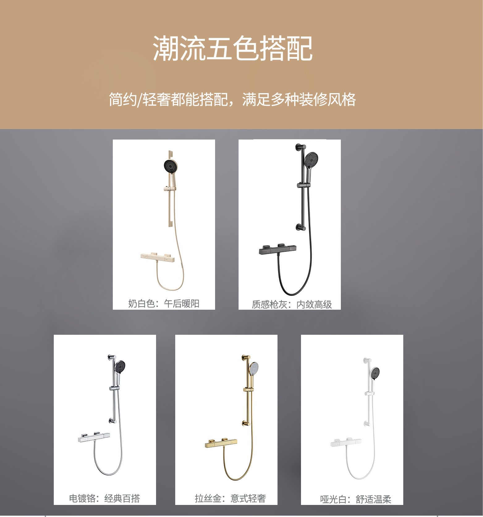 家用奶白色淋浴花洒套装恒温数显增压钢琴键卫浴沐浴花洒腰喷背喷