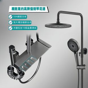 家用浴室淋浴花洒套装全铜套装水镀拉丝钢琴按键增压沐浴顶喷花洒